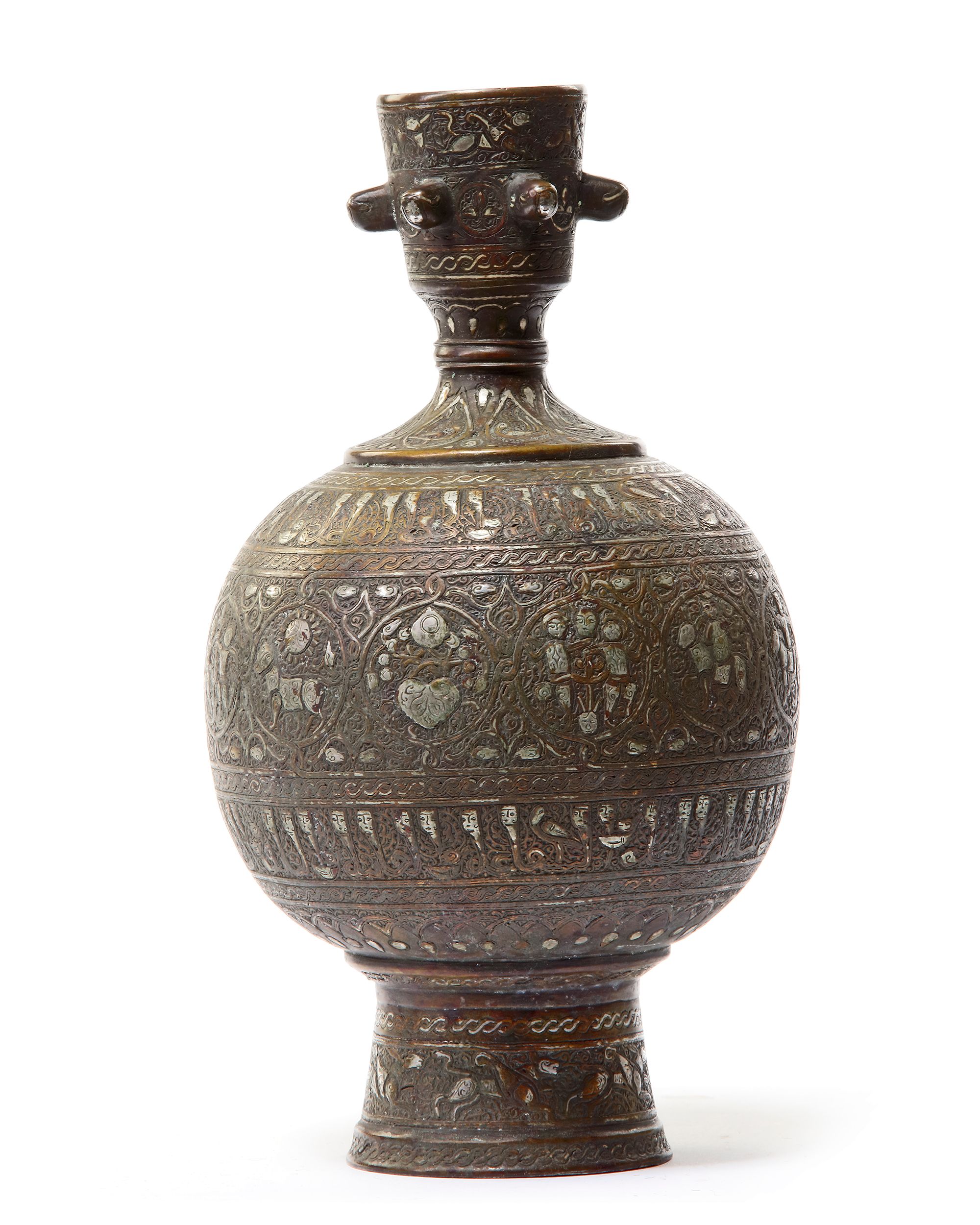 A KHORASSAN STYLE INLAID BRONZE VASE, 19TH CENTURY