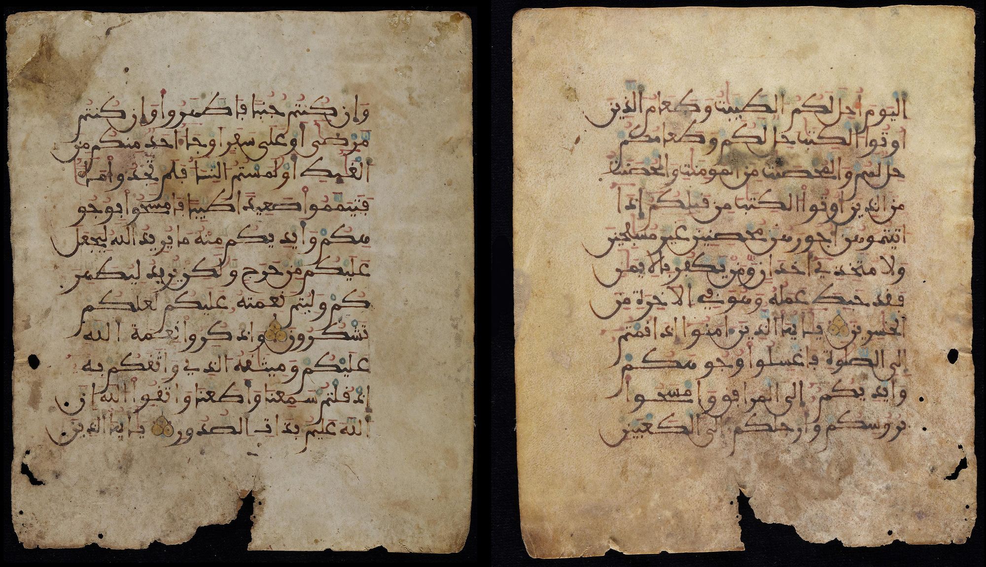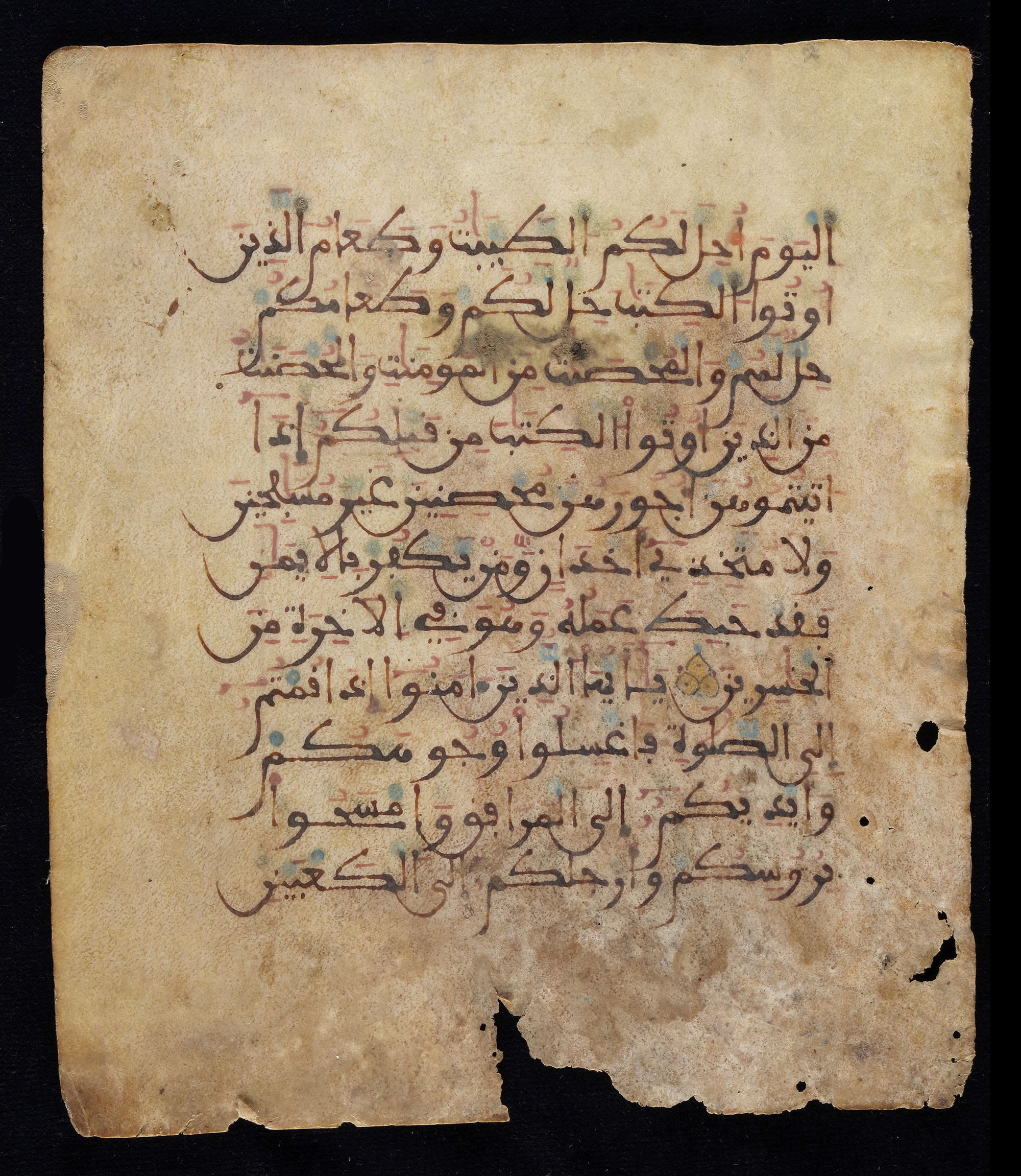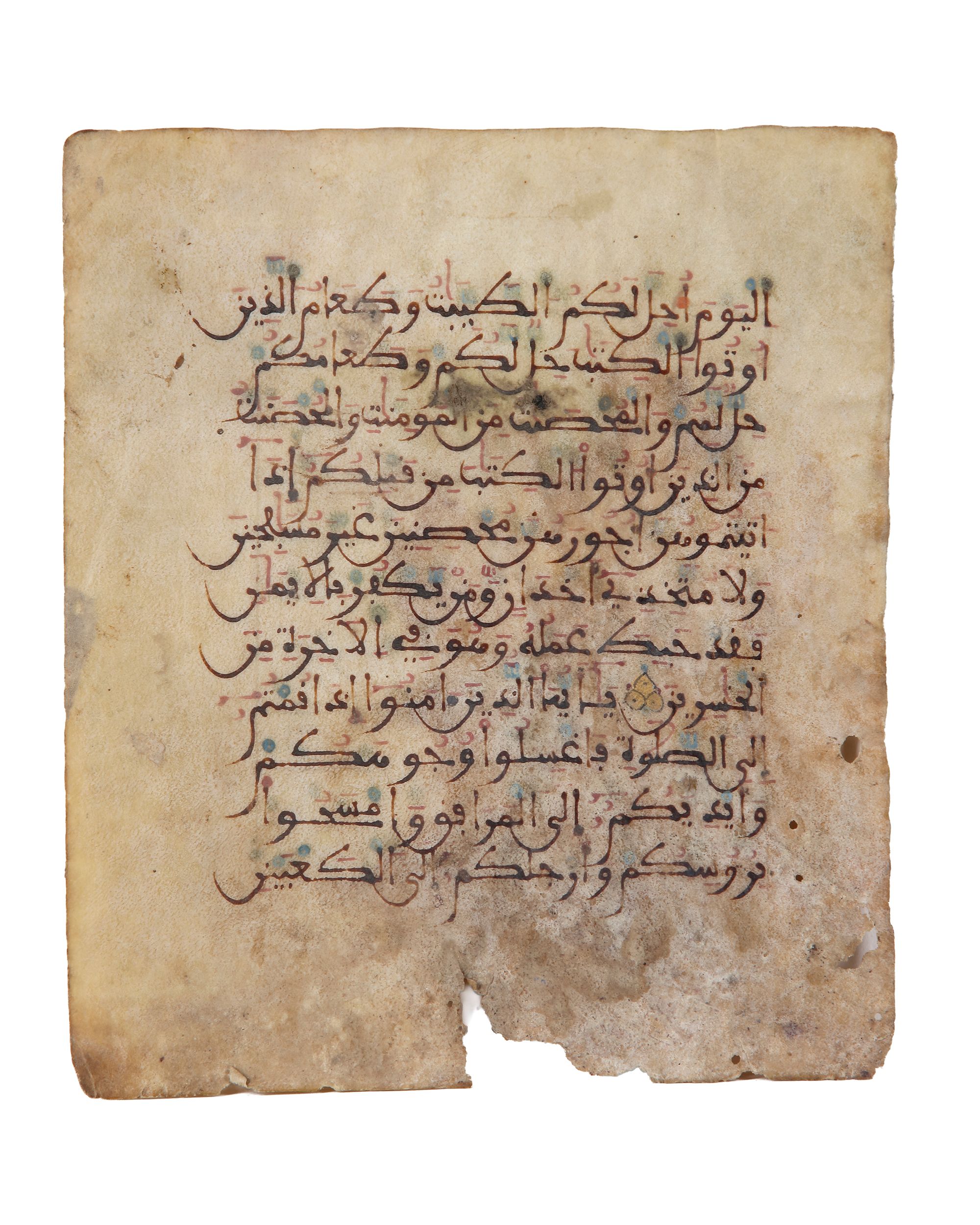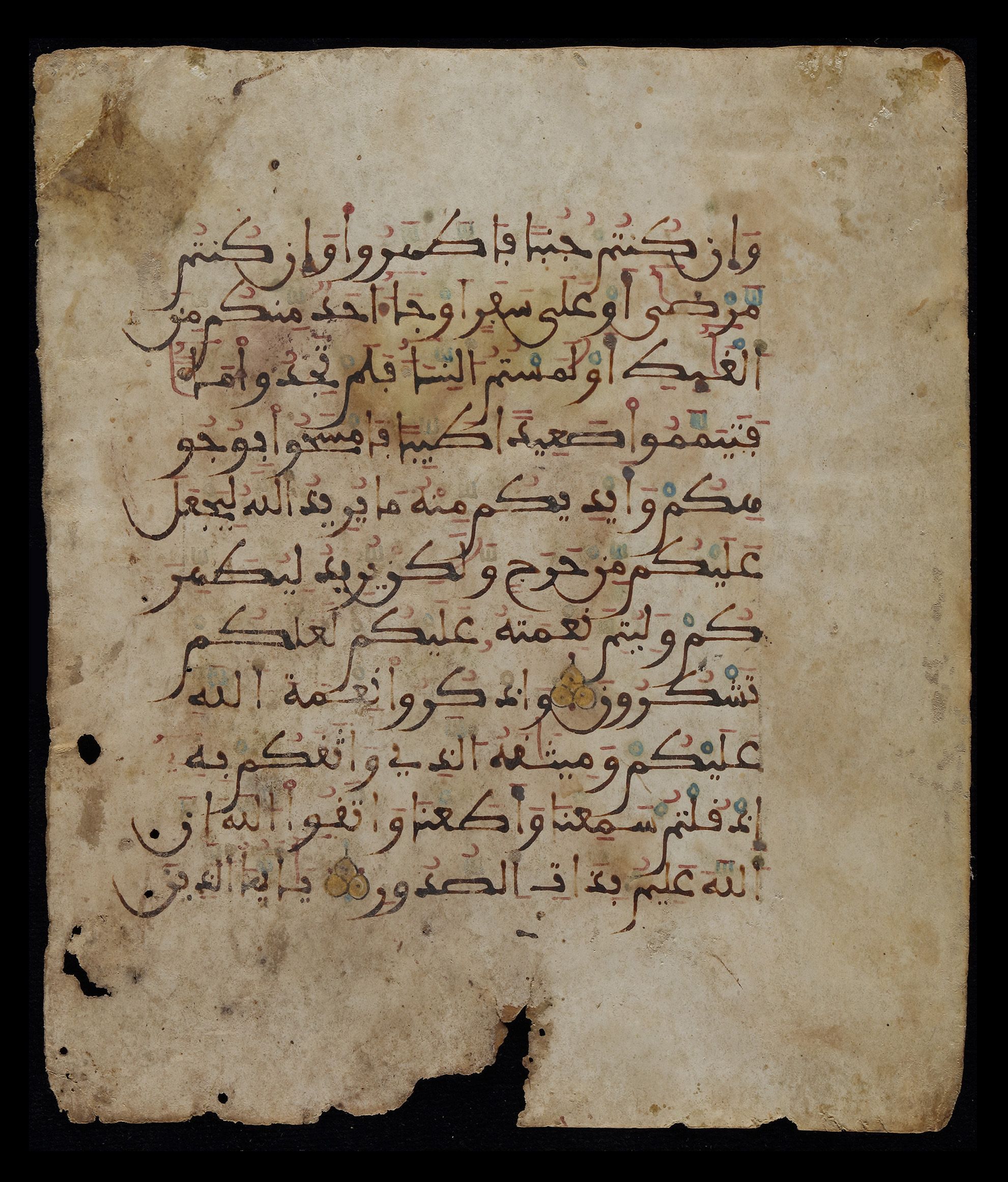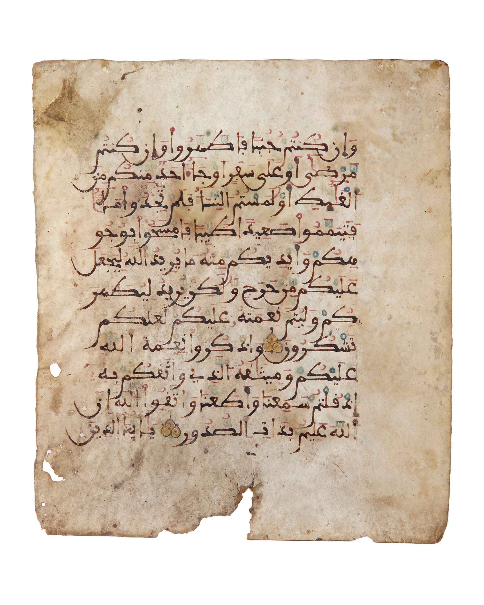 Arabian calligraphy Pen in ink on parchment. (Quran page)