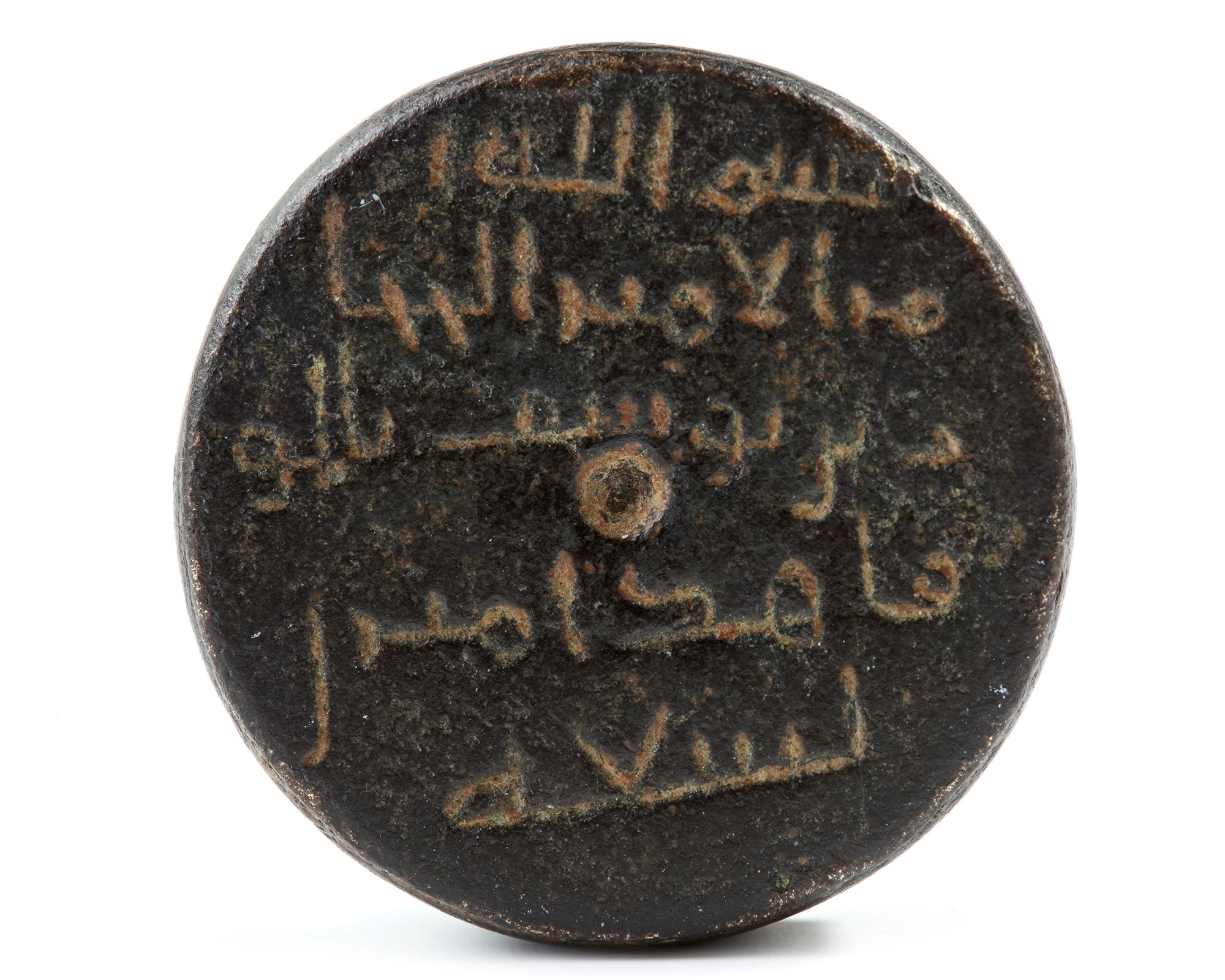 Circular bronze weight, naming al-Hajjaj ben Yusuf.