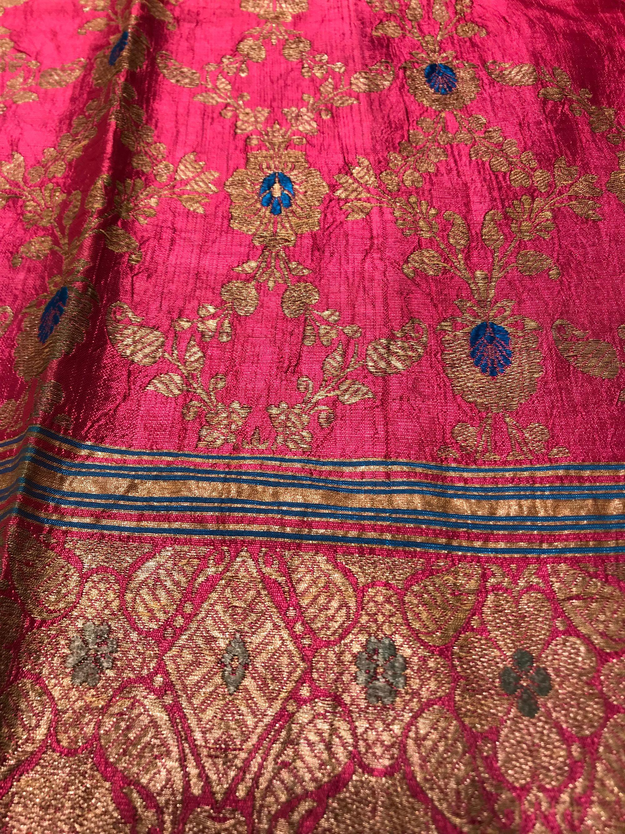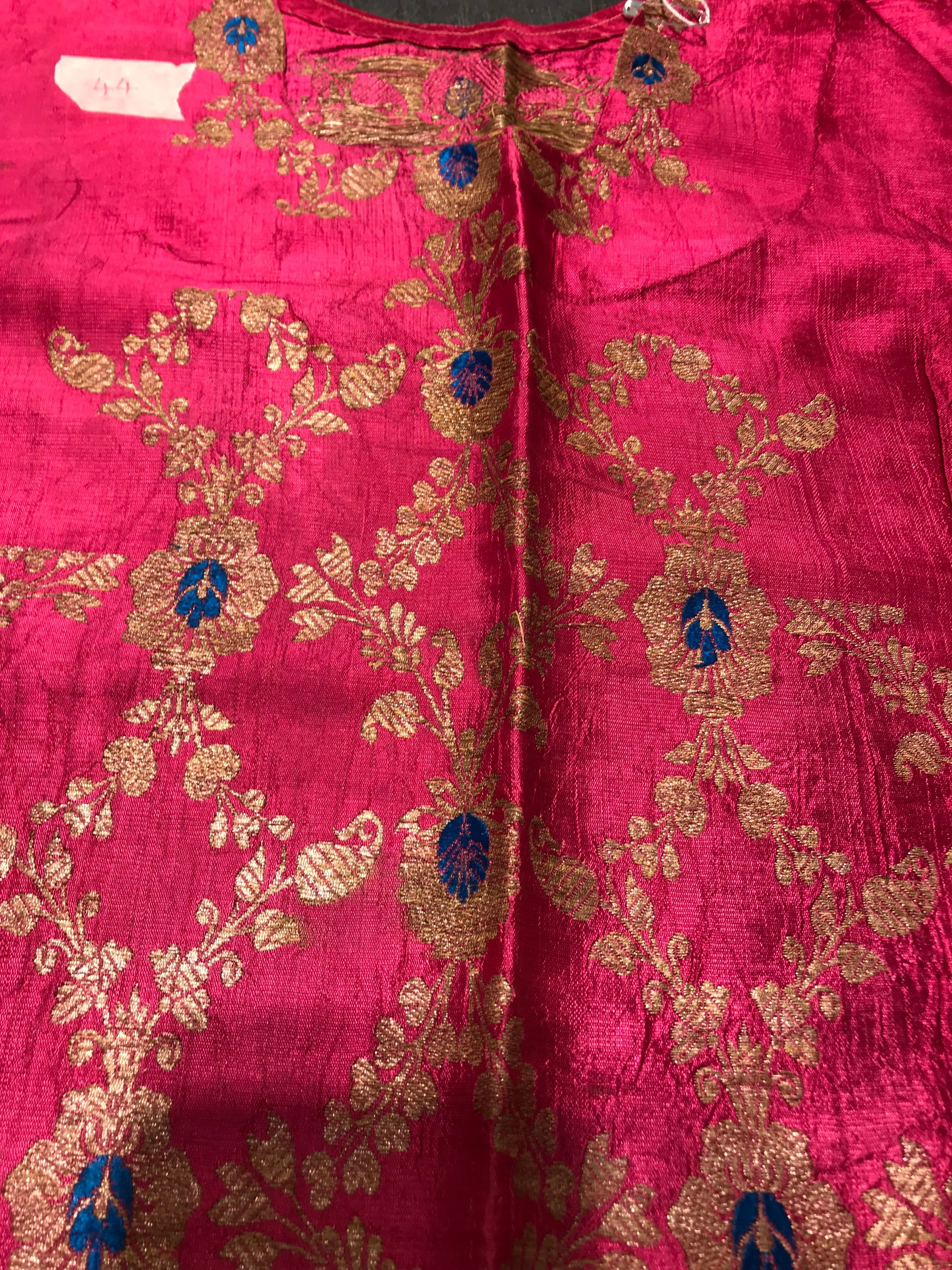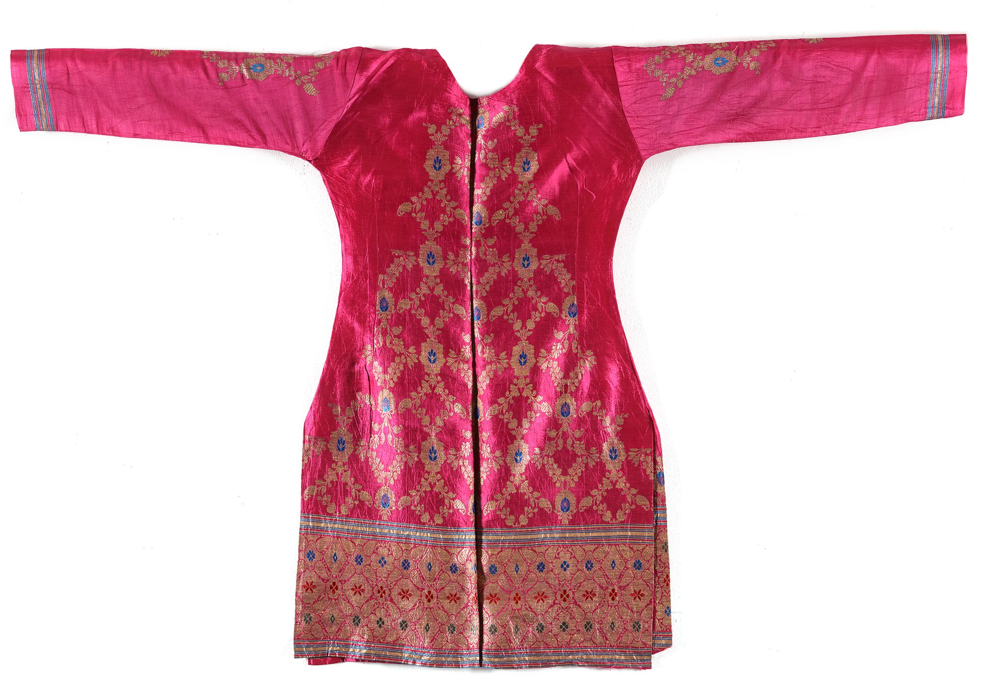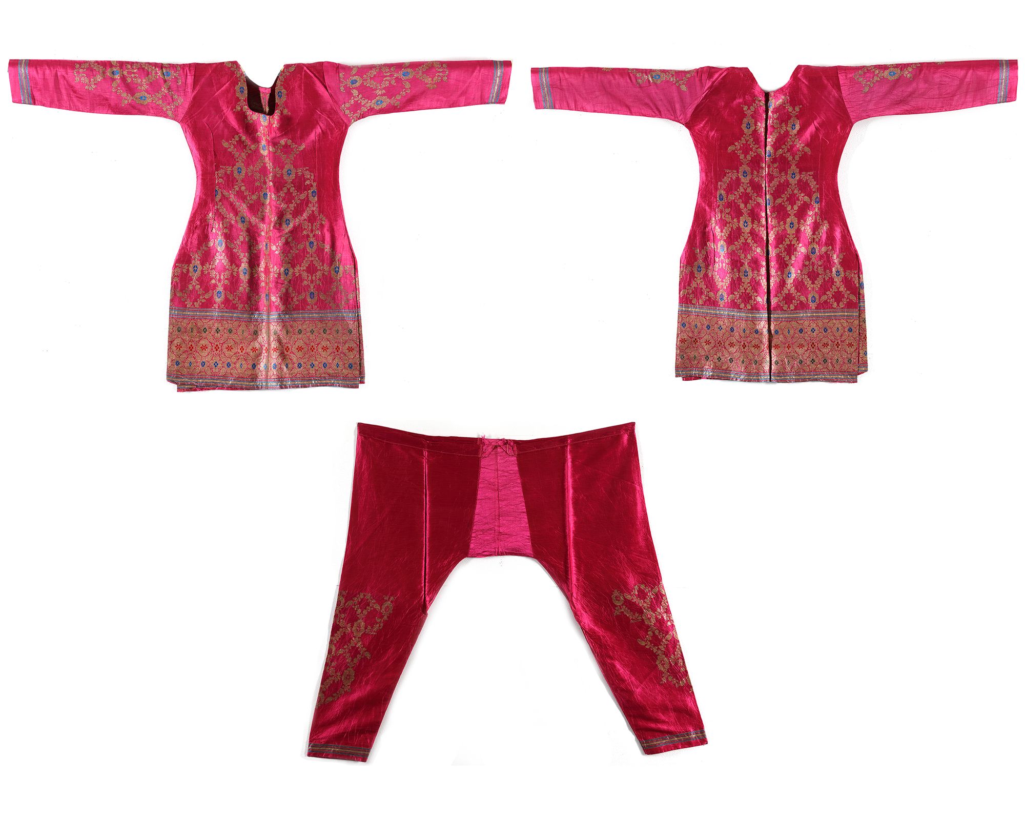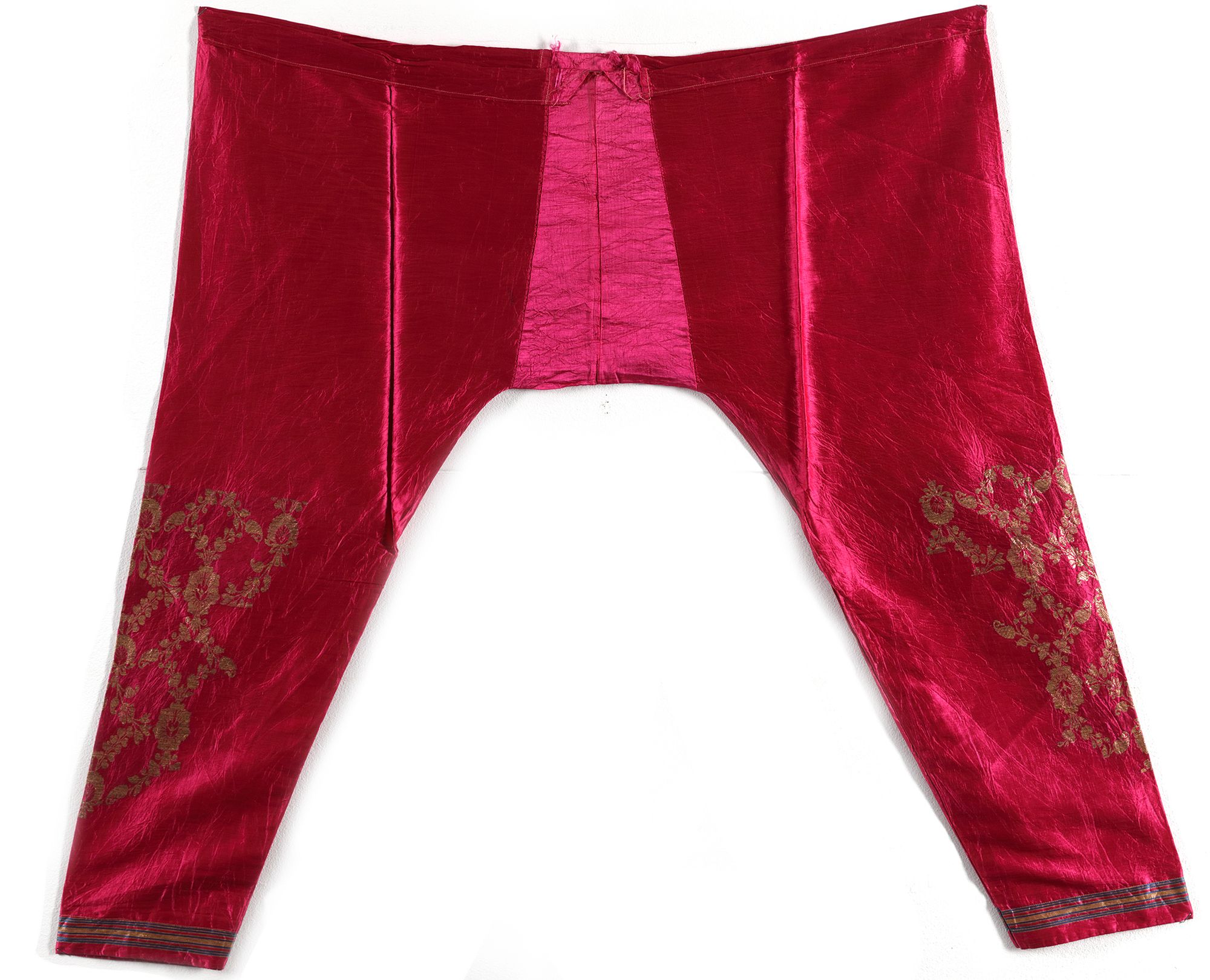 An Ottoman embroidered robe with salwar, both embroidered in gilt threads with flowers and foliage. jacket: 130 by 85 cm. trouser: 92 by 75 cm.