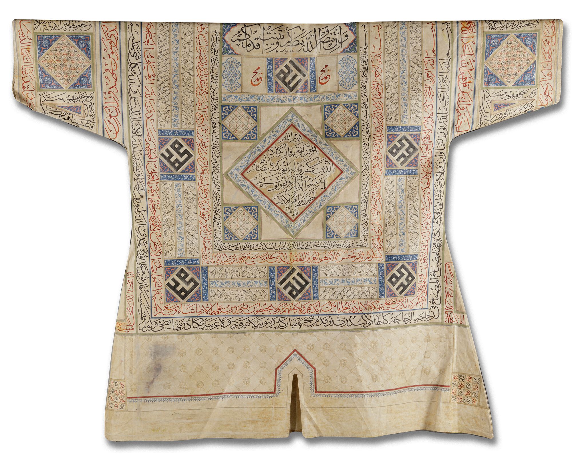 A talisman shirt is an object that has protective powers. Designed and decorated with astrological signs, magic squares, abjad numerals, religious narratives, representations of the prophets in a variety of media, and Qur’anic inscriptions. Provenance : Private Dutch family, Collection of Mr. A.N. Petersen,