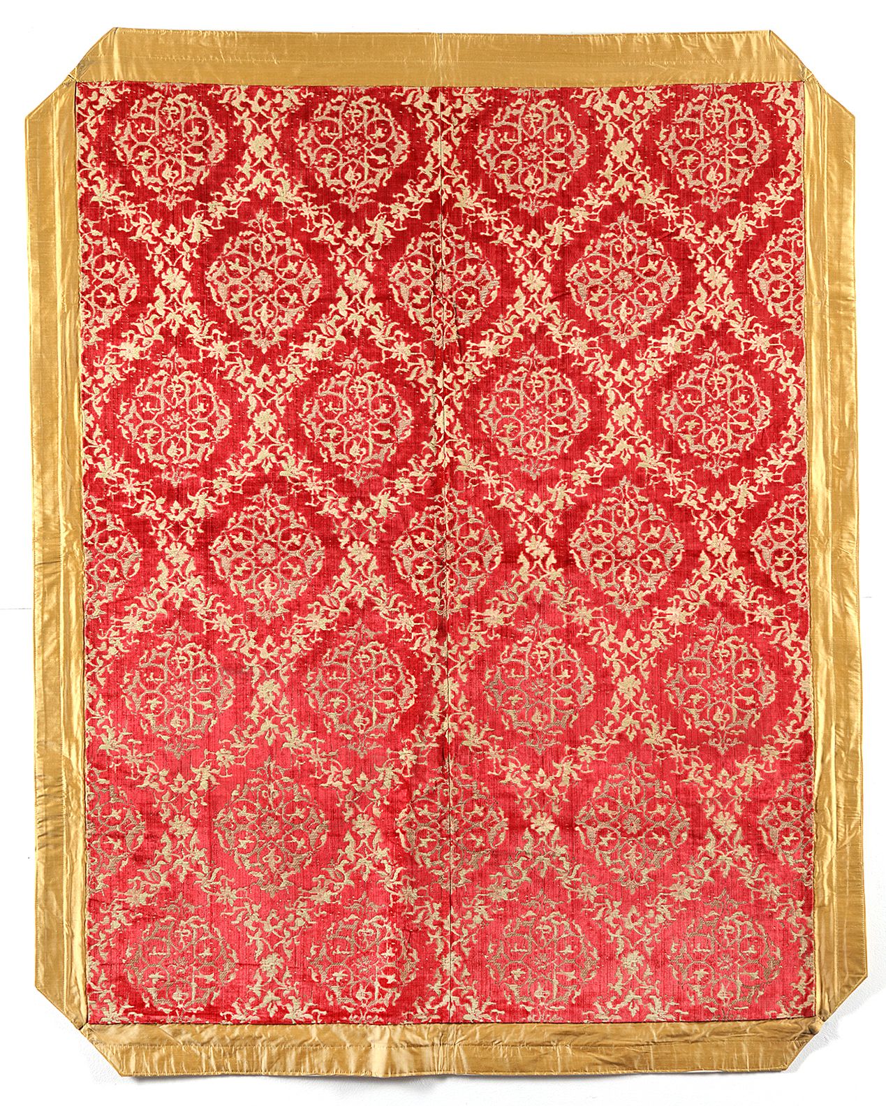 An Ottoman velvet hanging panel decorated with foliage on a red ground. 177 by 141 cm.