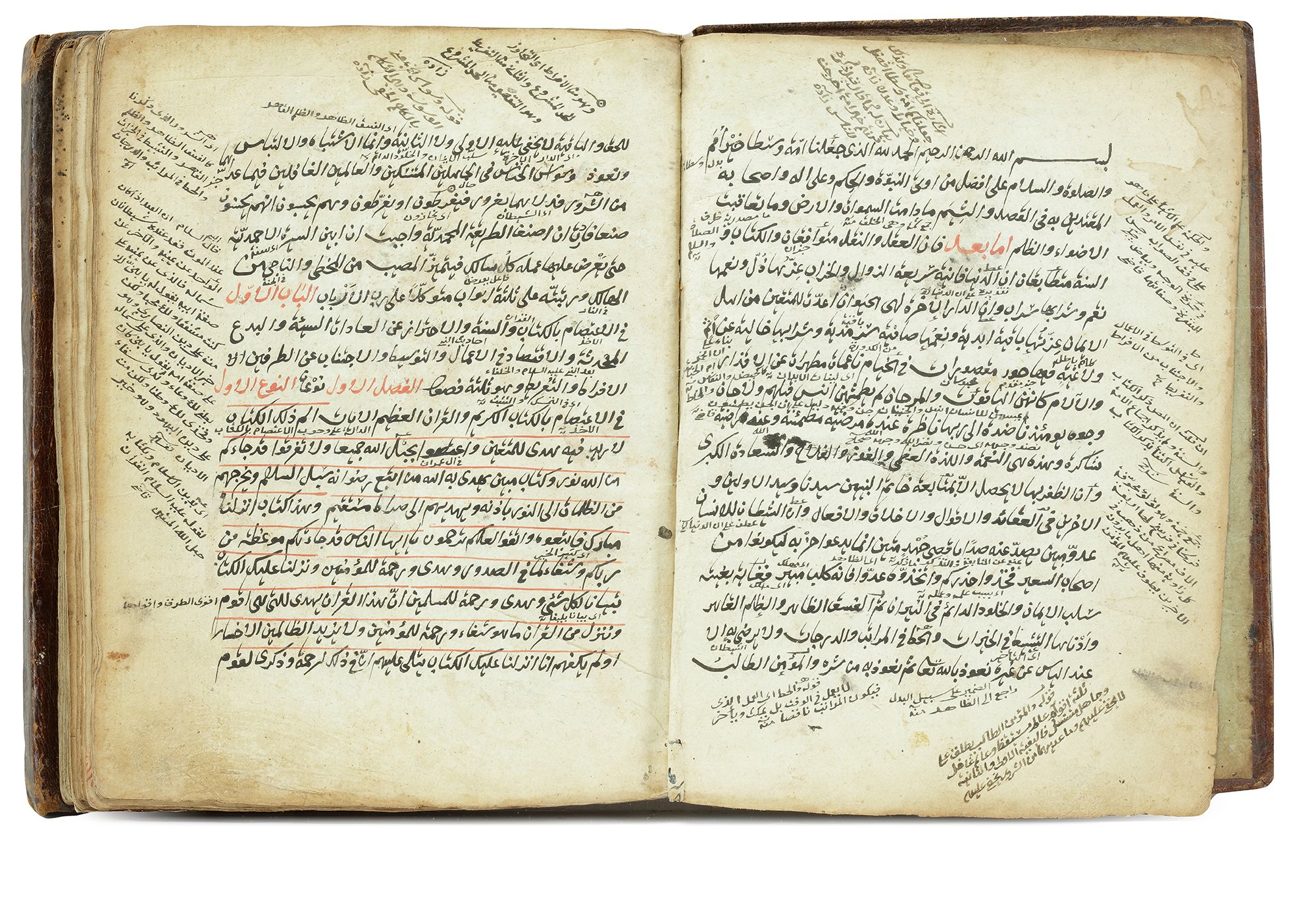 Arabic manuscript on paper, 18 lines to each page, written in black ink, titles and catchwords in red ink. Copied by Timur bin Abdullah in Lan Yuan China in 993 AH/1585 AD With later brown morocco leather binding. 17 by 21.5 cm.