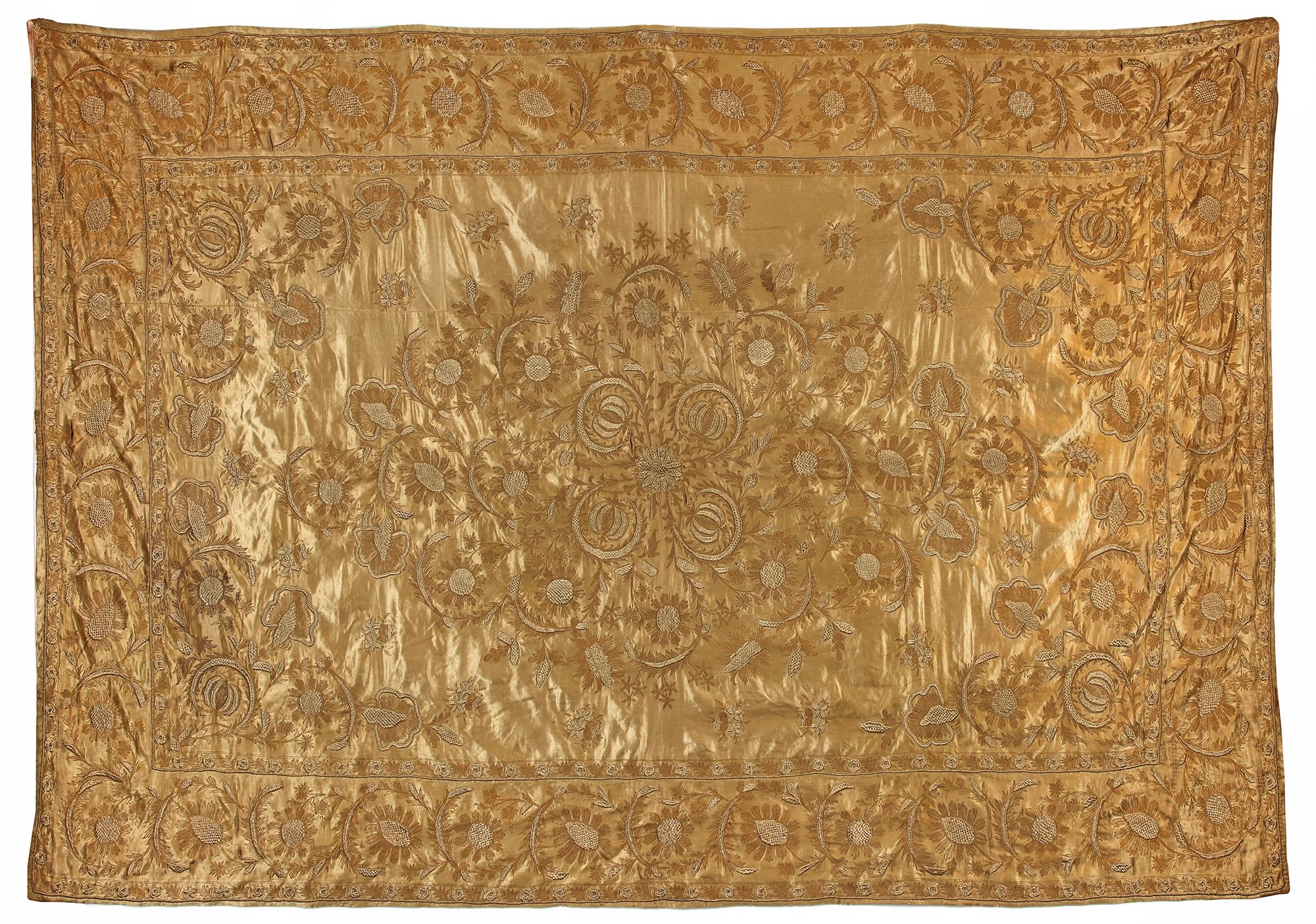 A LARGE OTTOMAN GOLD COLORED WITH GILT WIRE EMBROIDERY, 19TH CENTURY
