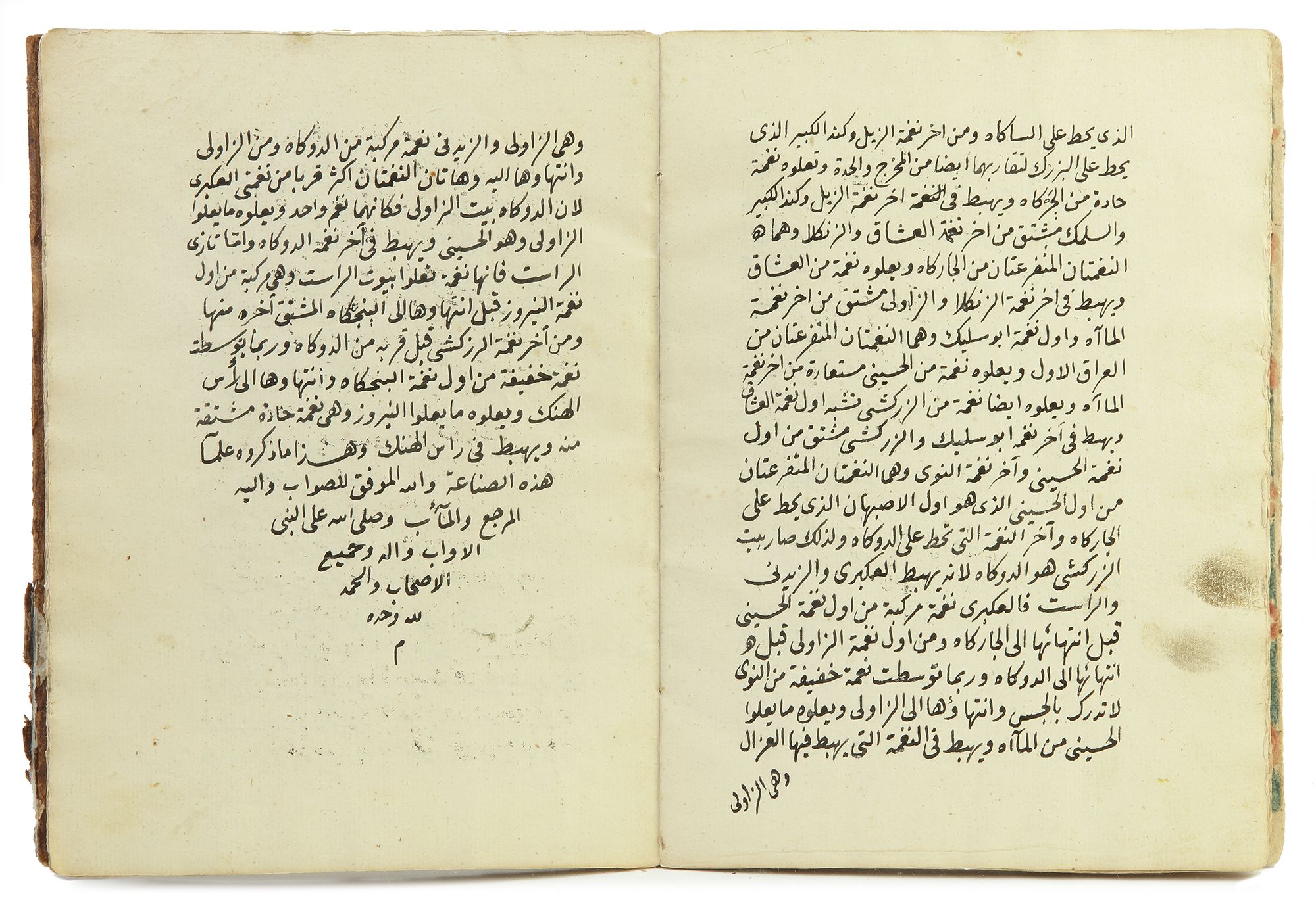 Arabic script consisting of 9 leaves, mainly about the Arabic Maqams which is the system of melodic modes used in traditional Arabic music.