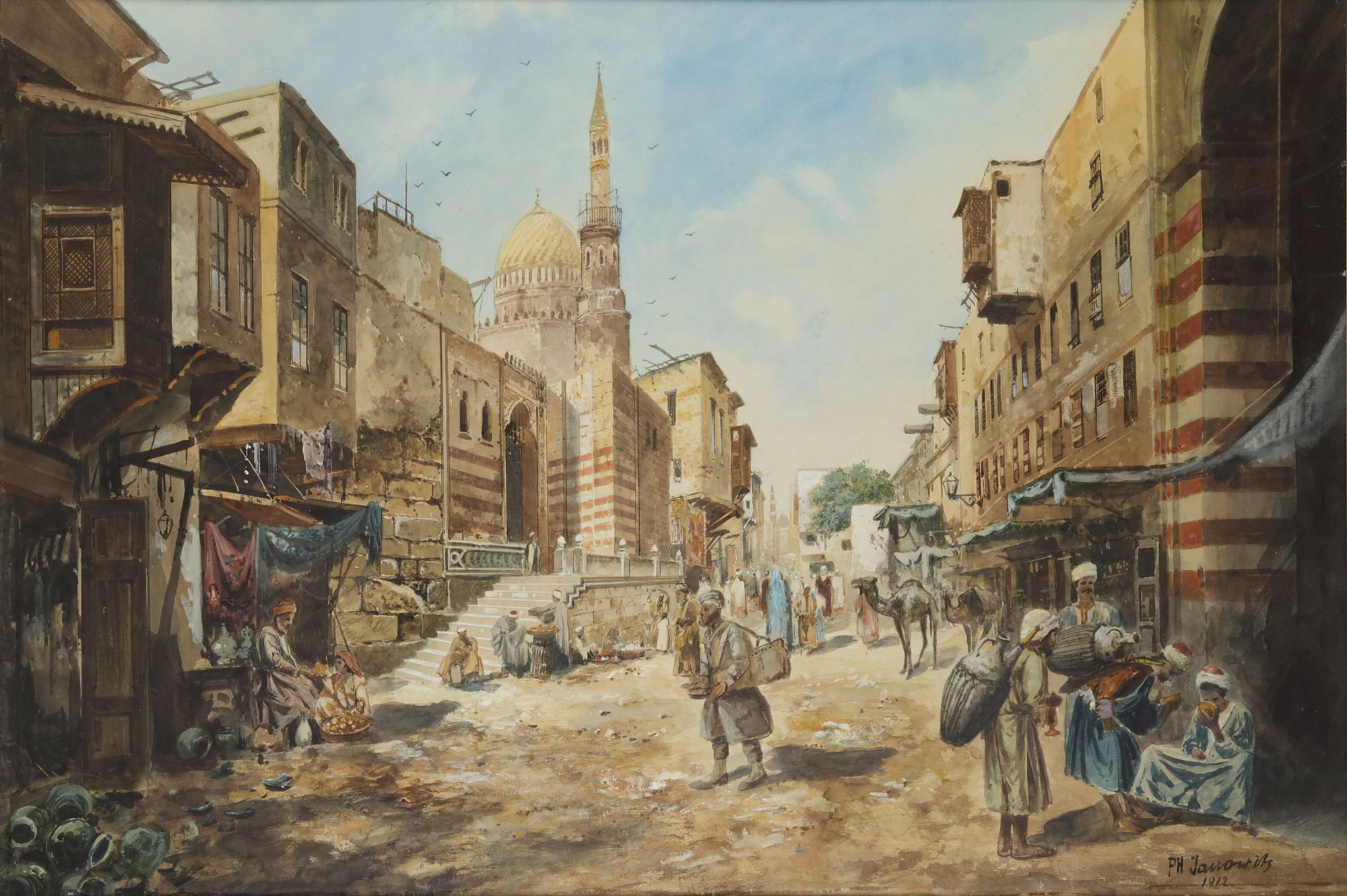 P.H. JANOWITZ. Germany Egypt, a busy street in Cairo. Signed 1912. Watercolor. 50 by 80 cm.