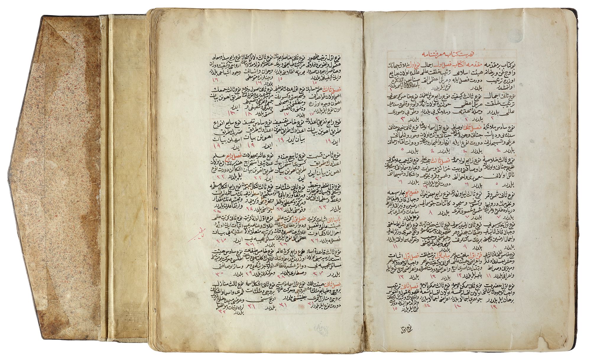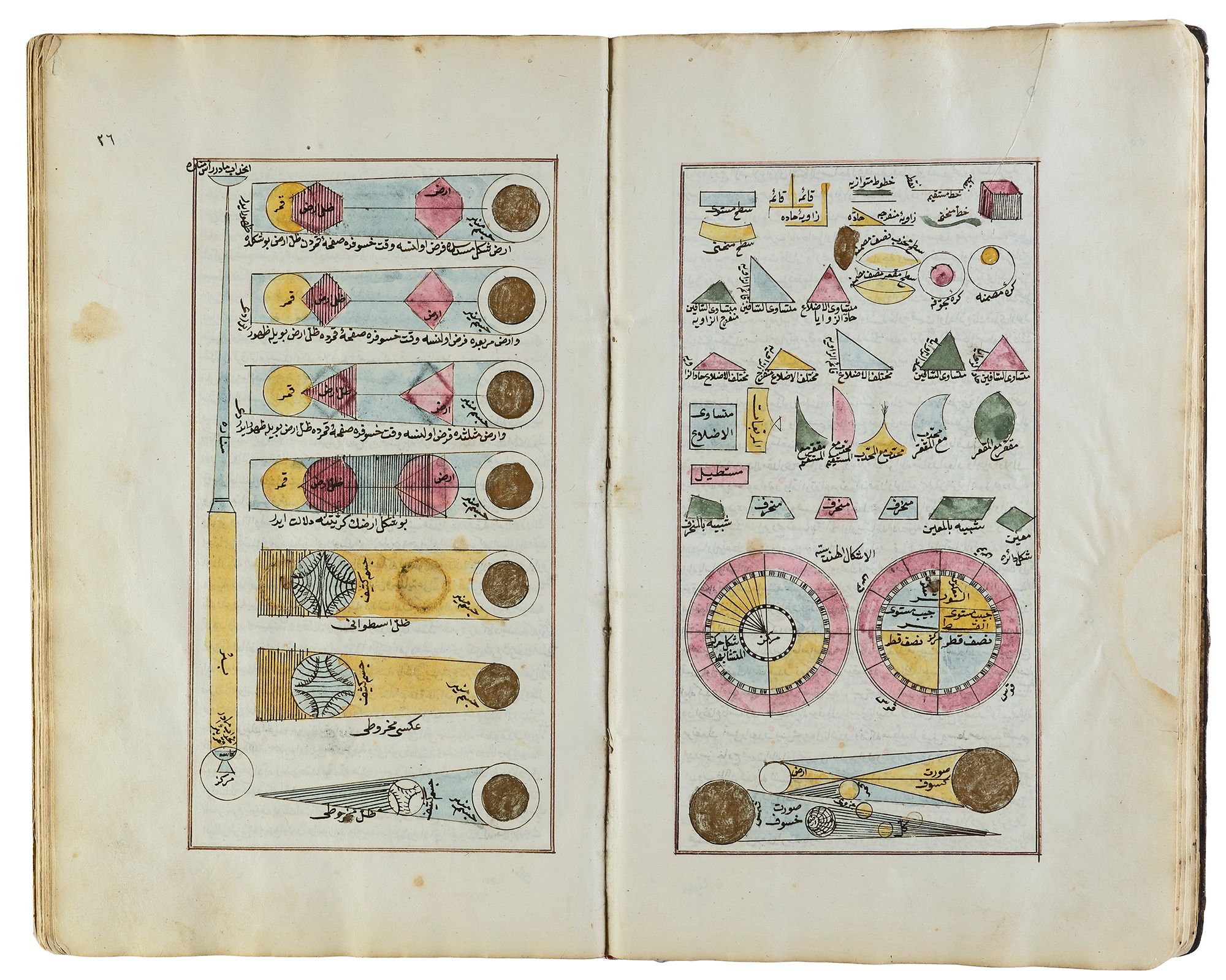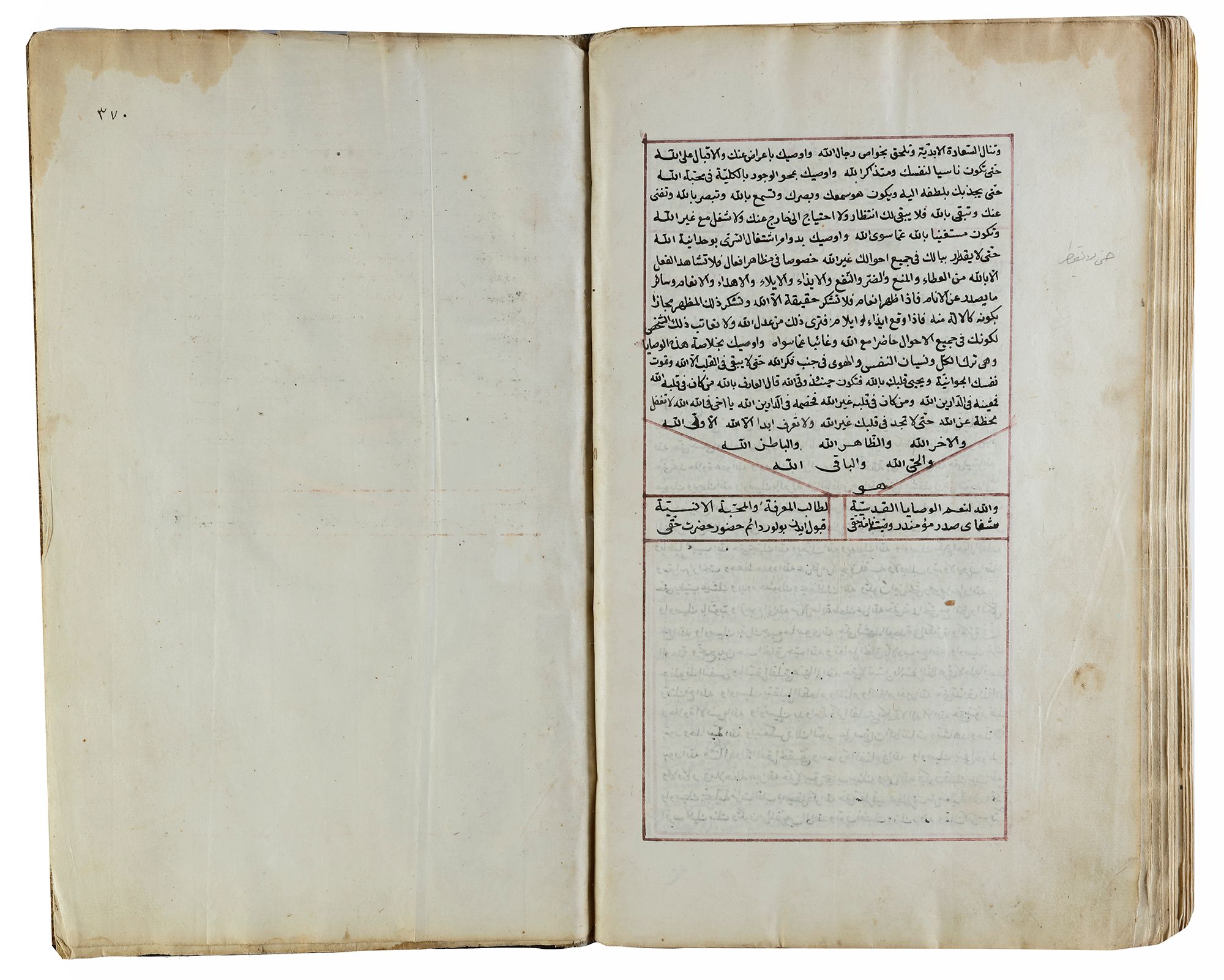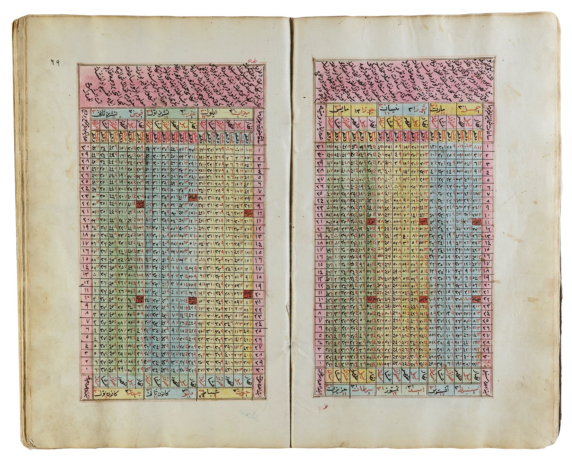 Arabic and Turkish manuscript on paper, 369 leaves plus 3 fly-leaves, written in black naskh script. Catchwords and titles in red, the opening page with gold and polychrome decoration. Marifetname is the second main work of Erzurumlu İbrahim Hakkı. The work includes a preface, three major chapters and an afterword, each chapter divided into subsections. The preface is entirely religious, the first part describes the existence and oneness of God, then describes simple and compound bodies, mines, plants and finally man. Then there are geometry, astronomy and calendar topics. It has shown the latitude and longitude of more than 100 provinces in the geography section. The second part includes sciences such as science, anatomy, and physiology. He also examined the human body in terms of aesthetics, and squeezed couplets together. He believed in the relationship between body structure and temperament and explained this in poetry. At the end of this chapter, there is extensive information about the soul, health, and death. The third part with a religious, divine and philosophical content. The last section about method of teaching, the attitude of the student to his master, respect and love towards parents, qualifications to be sought in marriage and marriage, the custom of the relationship between husband and wife, duties towards children, the way of meeting and talking with relatives, servants, neighbors, friends, public and scholars, and its customs are included. 30 by 19 cm.