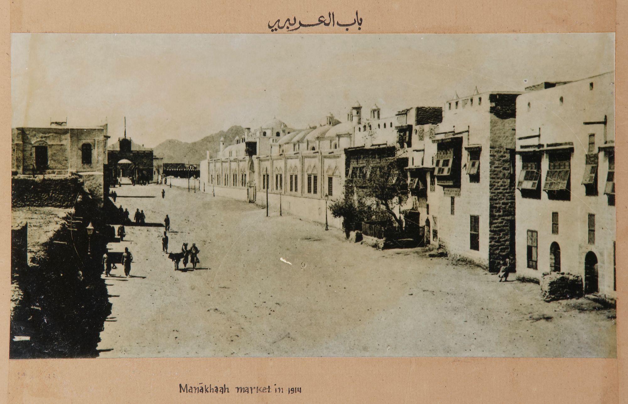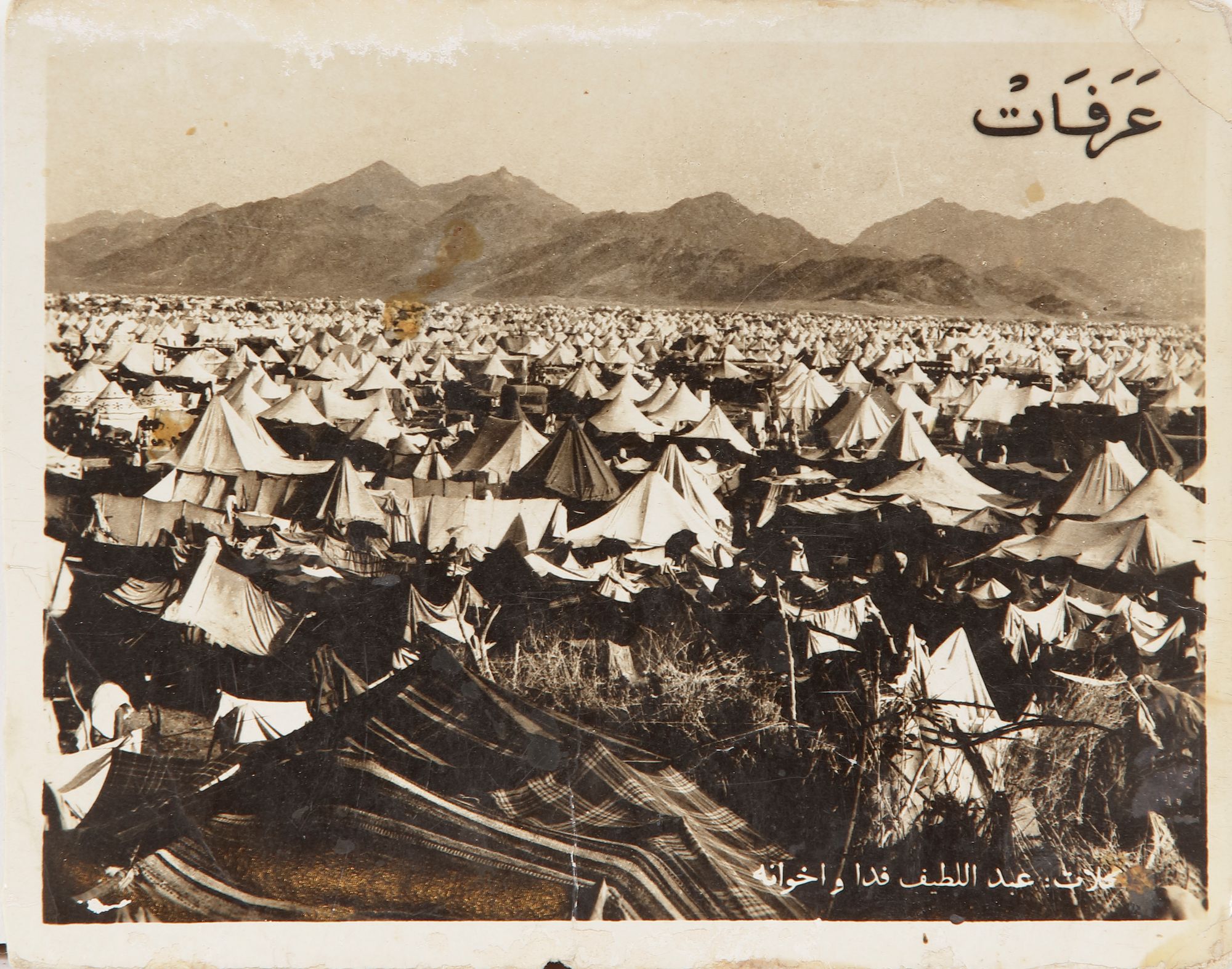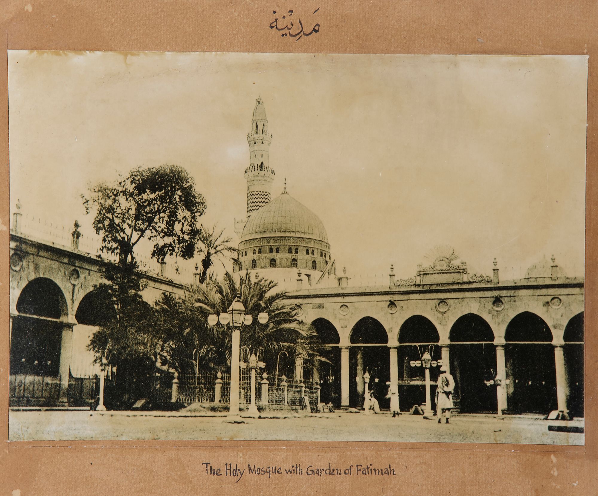 These four photos show the Garden of Fatimah in the Prophet Mohammed Mosque, Al-Arabia Gate (One of Madina gates) with its market. Also, the Ottoman railway station building.Finely, a side of the pilgrims' tents at Arafat.