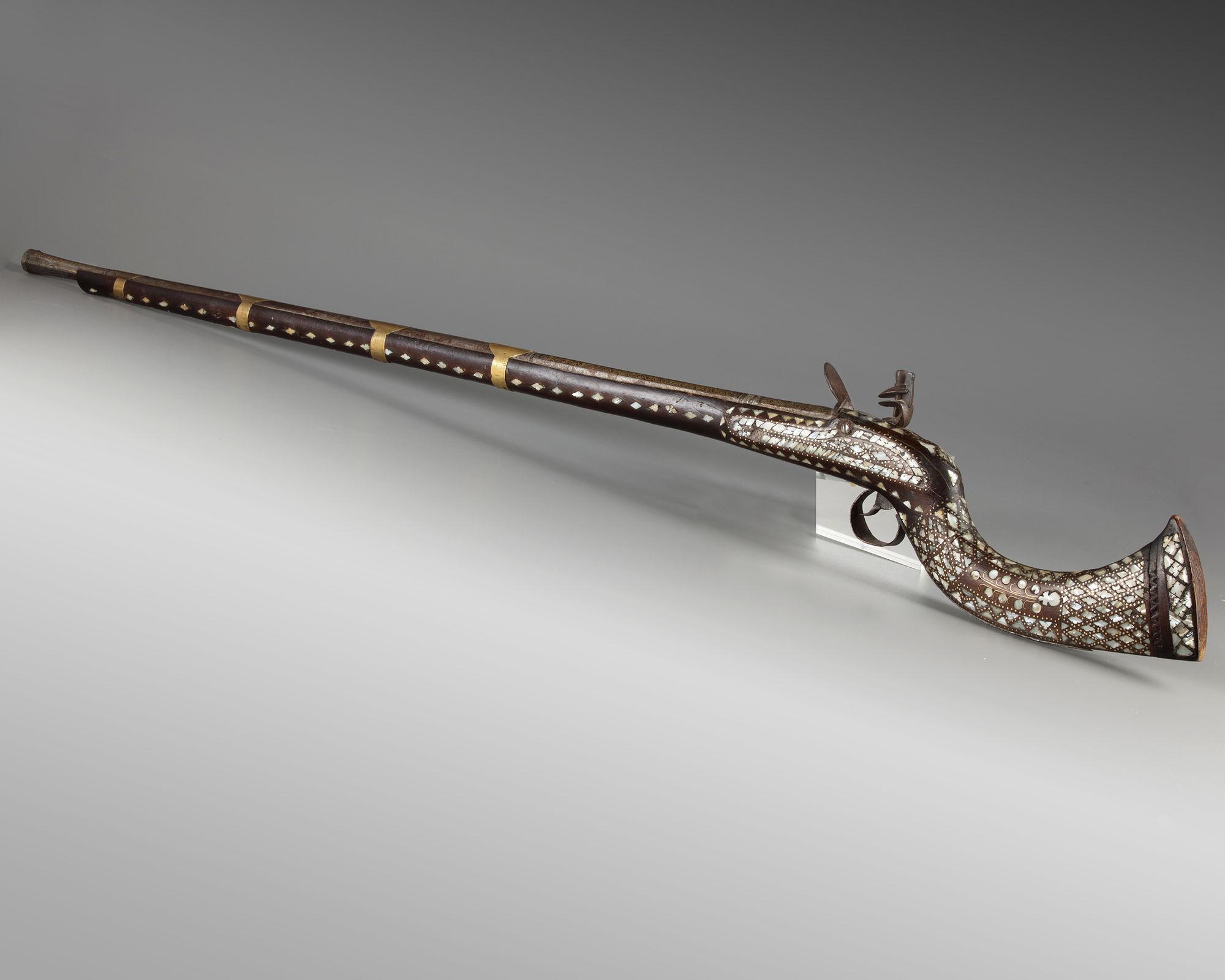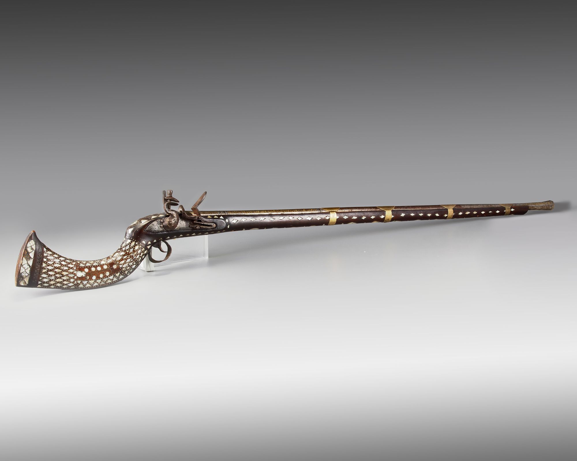 An Islamic Ottoman mother-of-pearl inlaid Miquelet gun