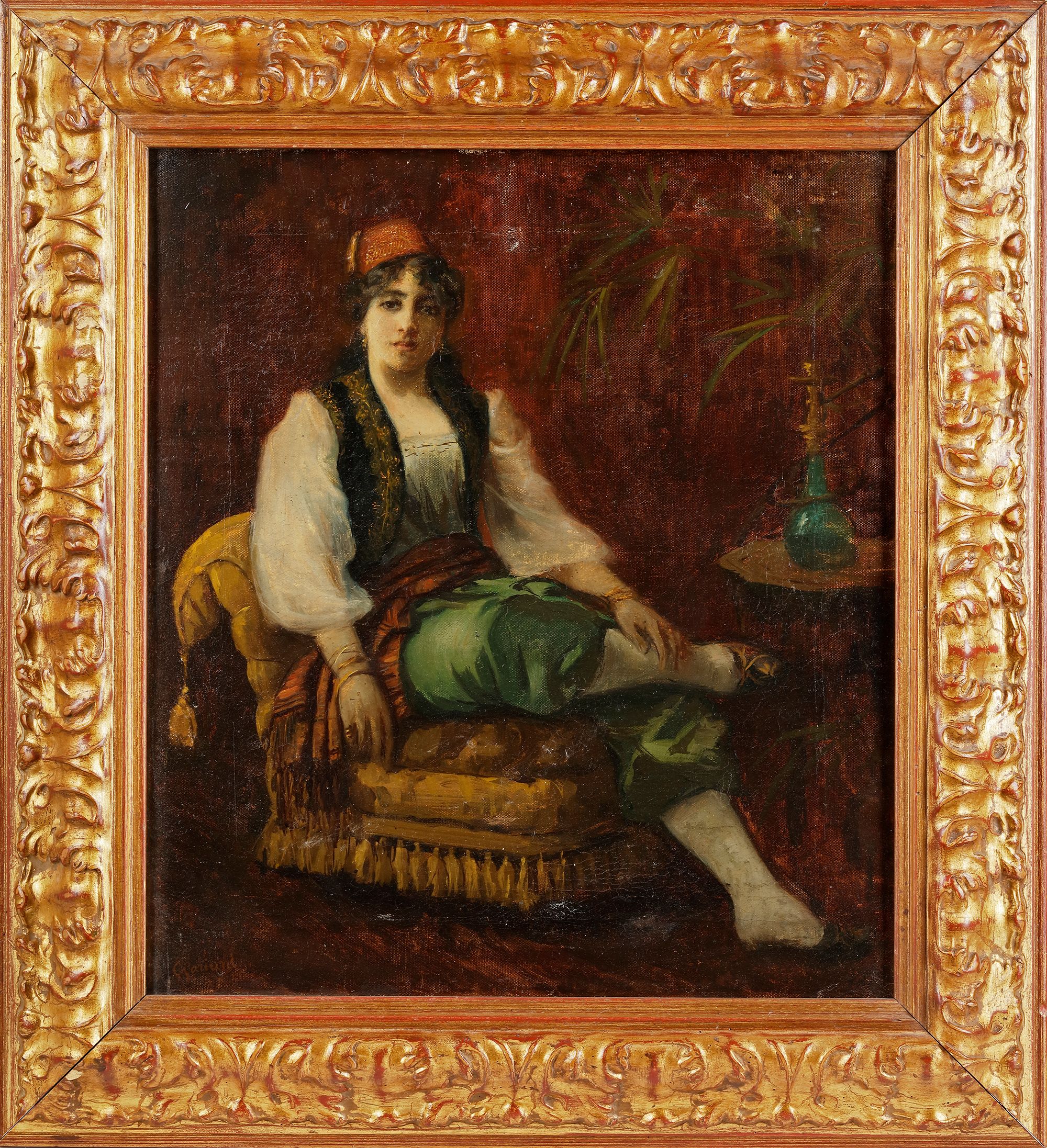 Oil on canvas, gilt wooden frame 42 by 48 cm.