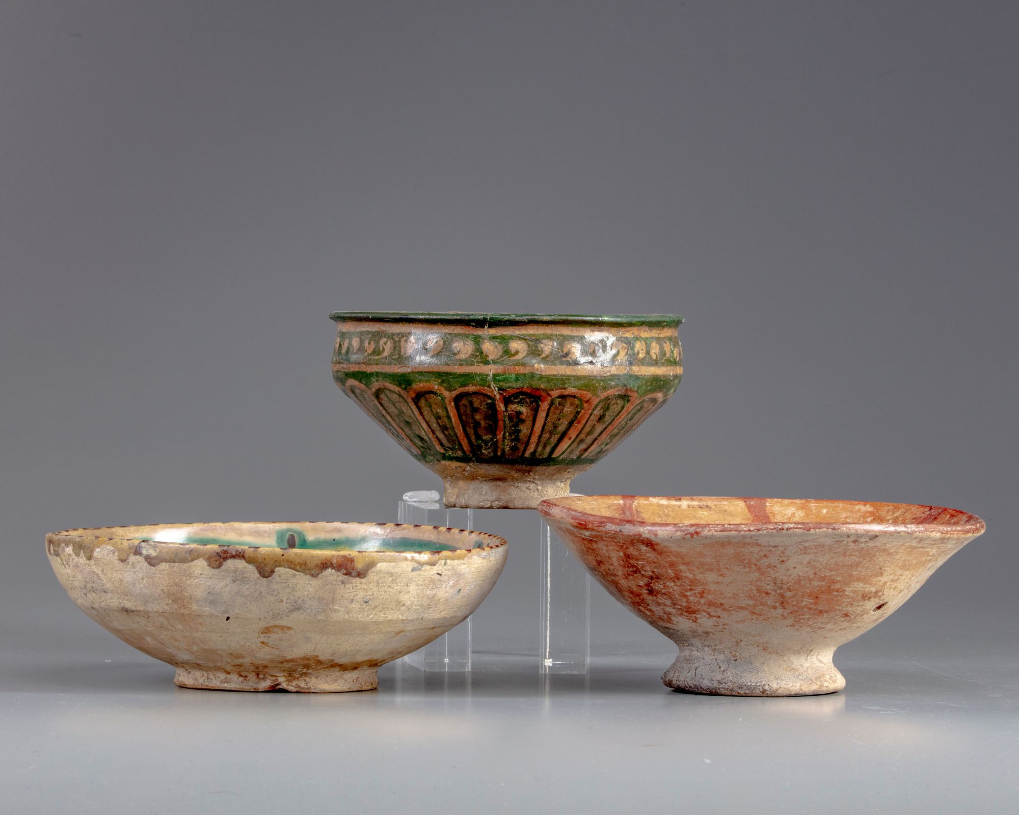 Two Nishapur bowls with a small foot and flaring sides, decorated in black with foliage D: 18,22cm. H : 7.5 , 9 cm.