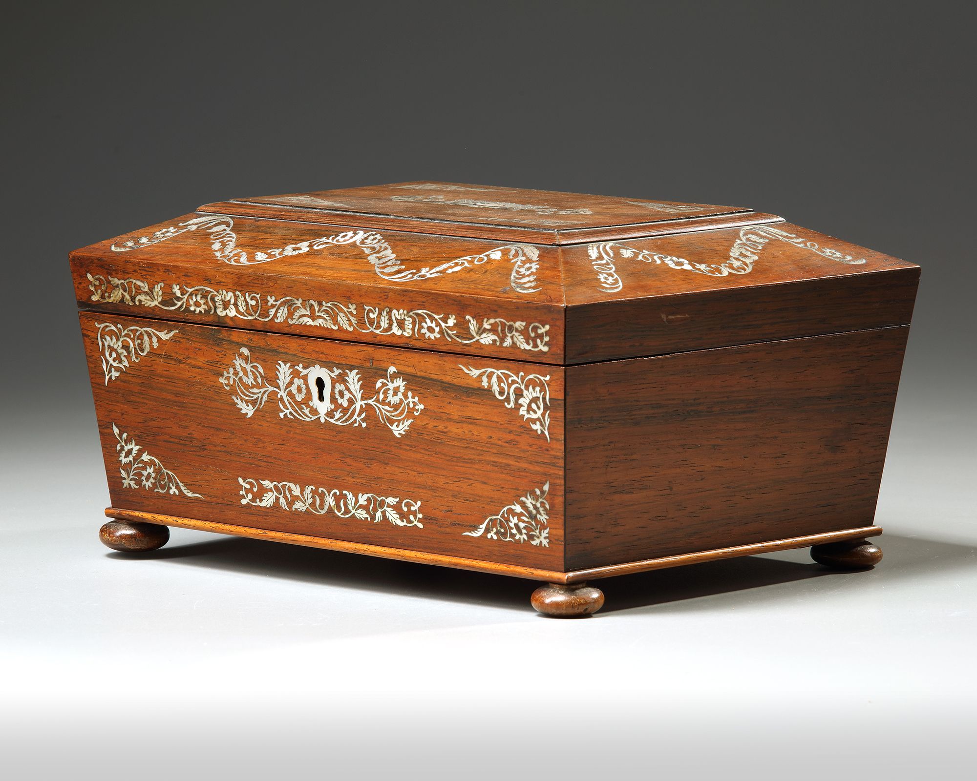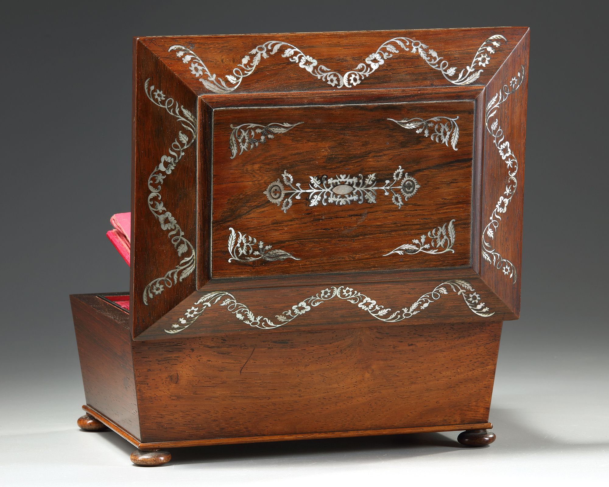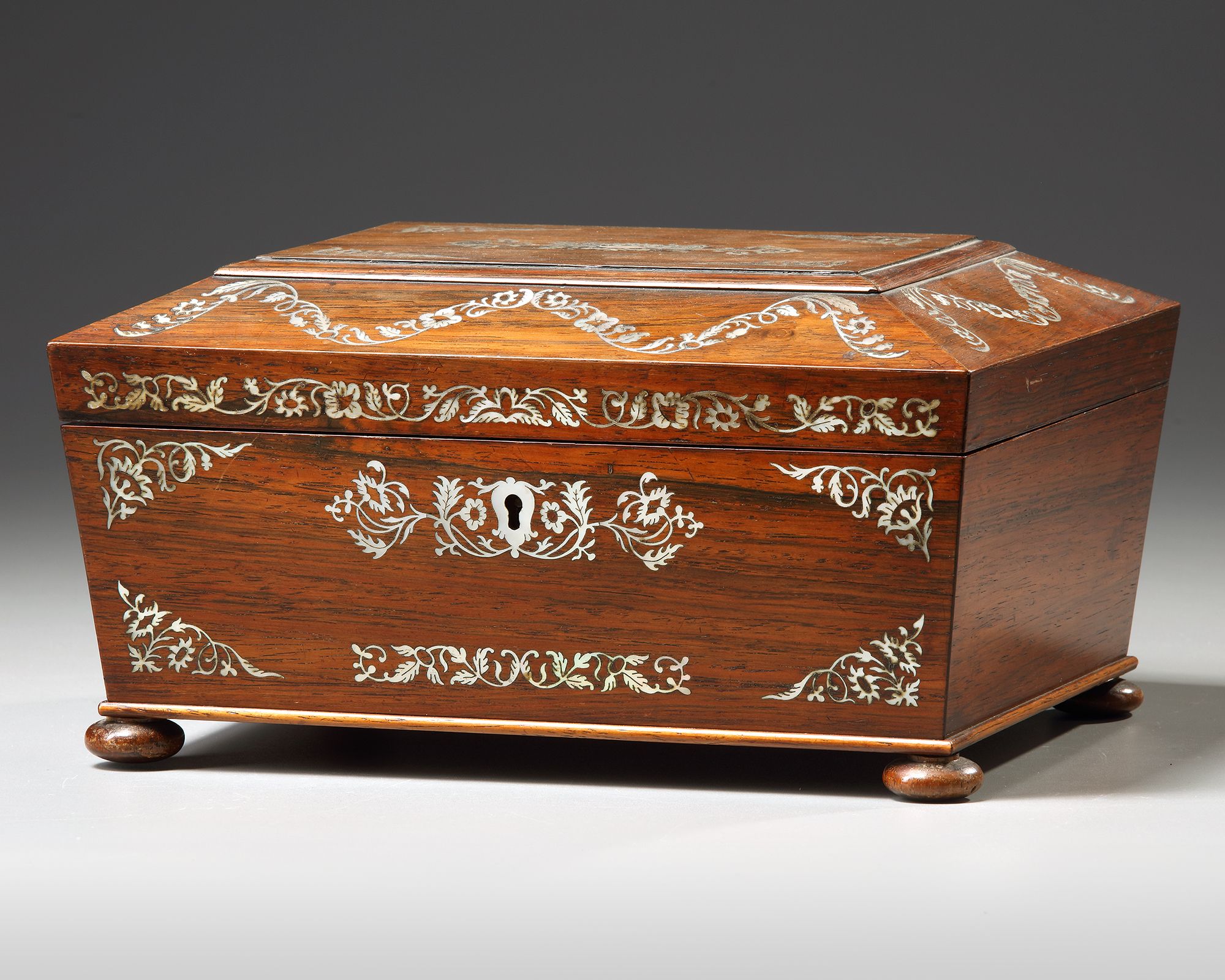 Decorated with mother-of-pearl inlaid floral motifs. 15 x 30 x 22.5 cm