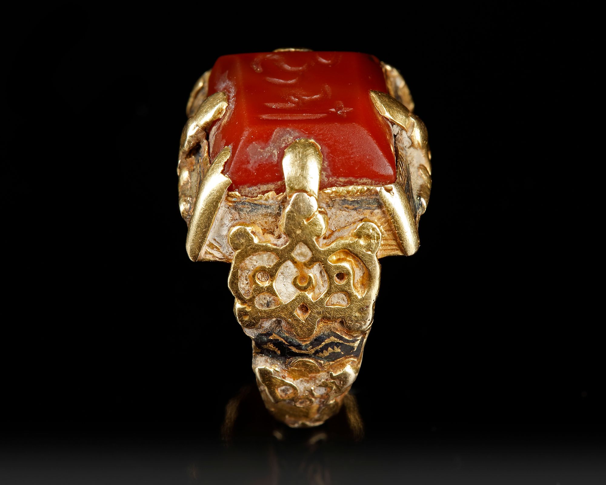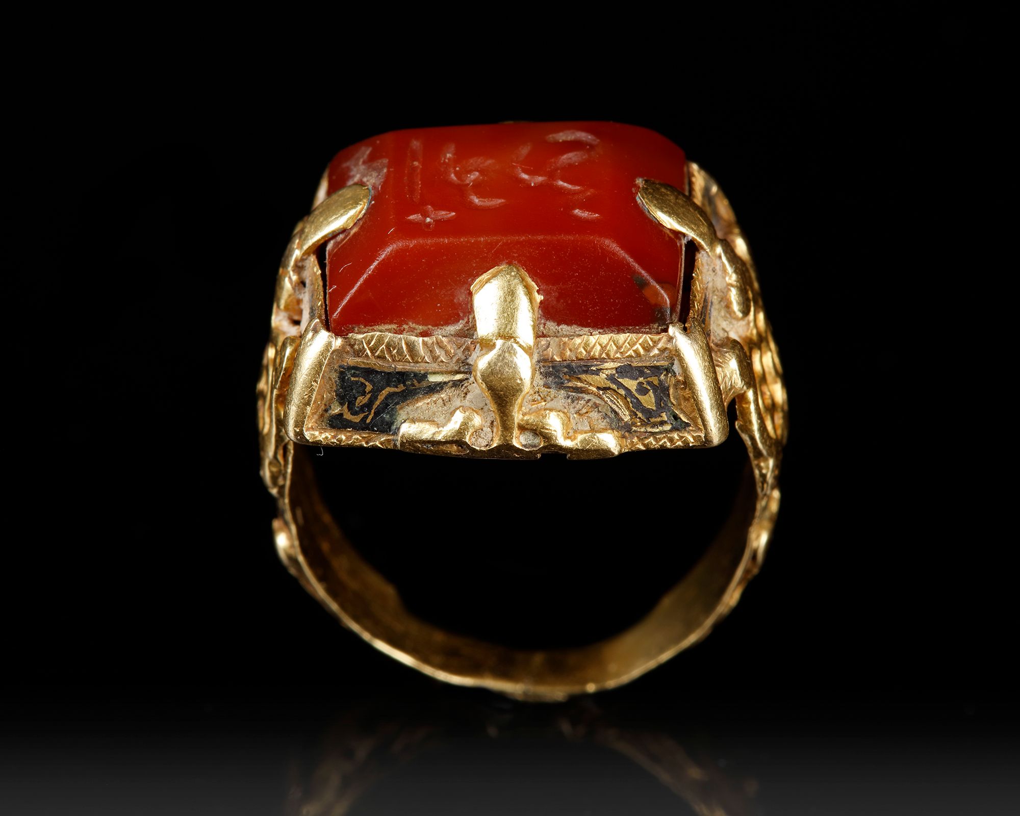 Lot 165A SELJUK GOLD RING WITH ENGRAVED RED AGATE SEAL, ANATOLIA OR CENTRAL ASIA, 12TH-13TH CENTURY