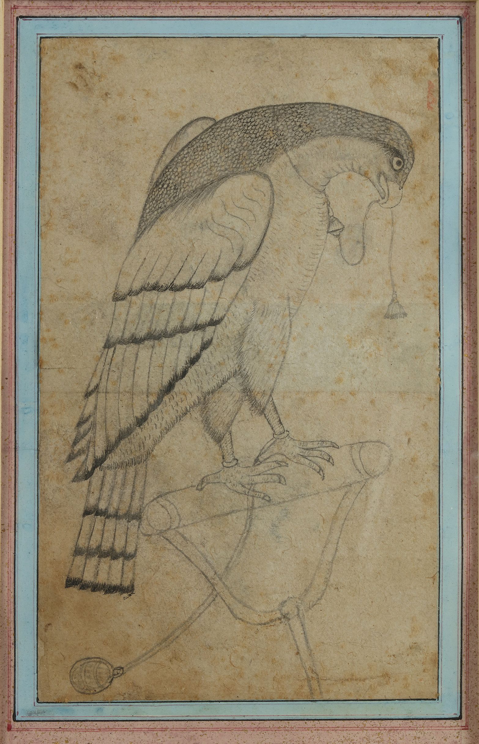 PERSIAN MINIATURE A hunting hawk on a perch Pen in ink.