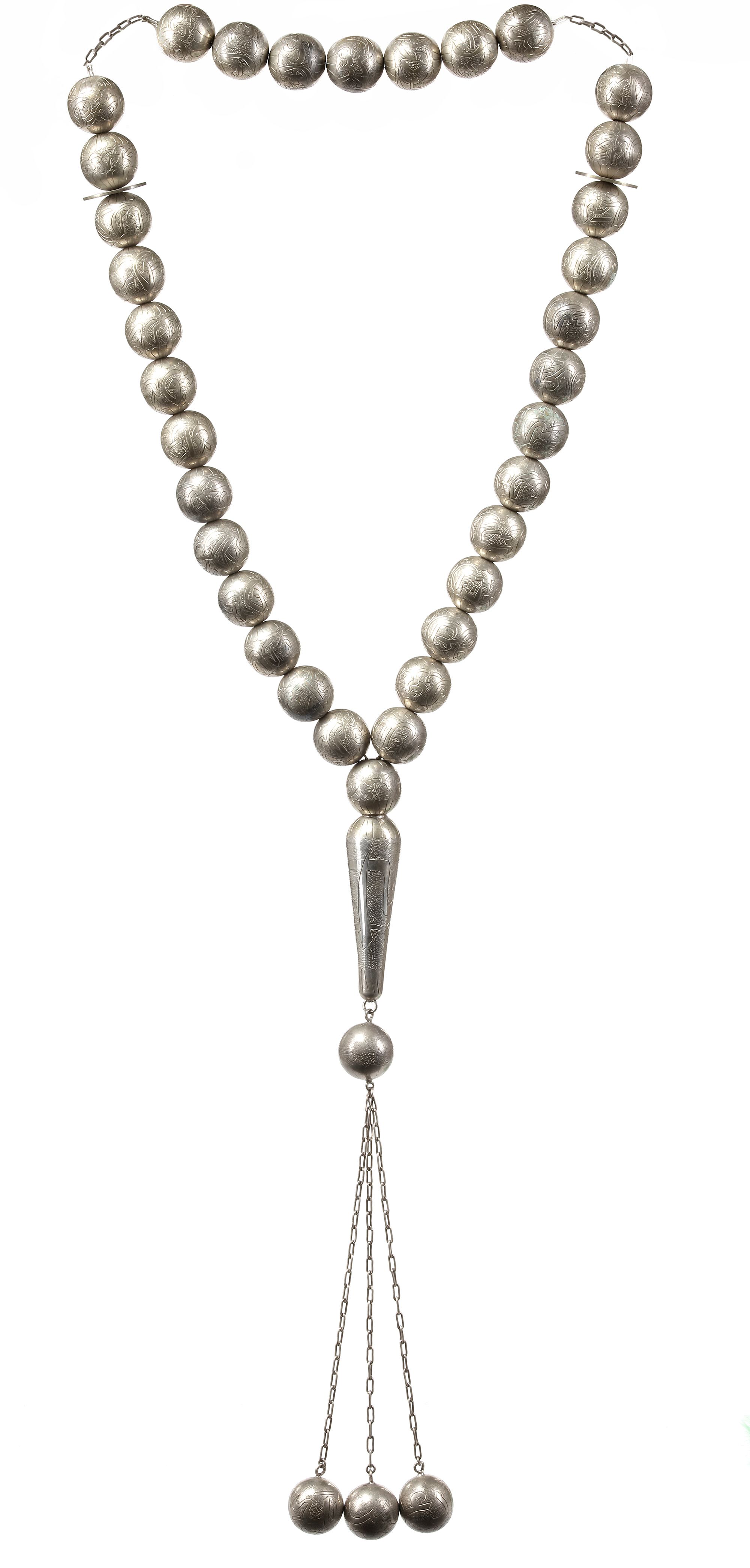LARGE OTTOMAN SILVER PRAYER BEADS, LATE 19TH CENTURY