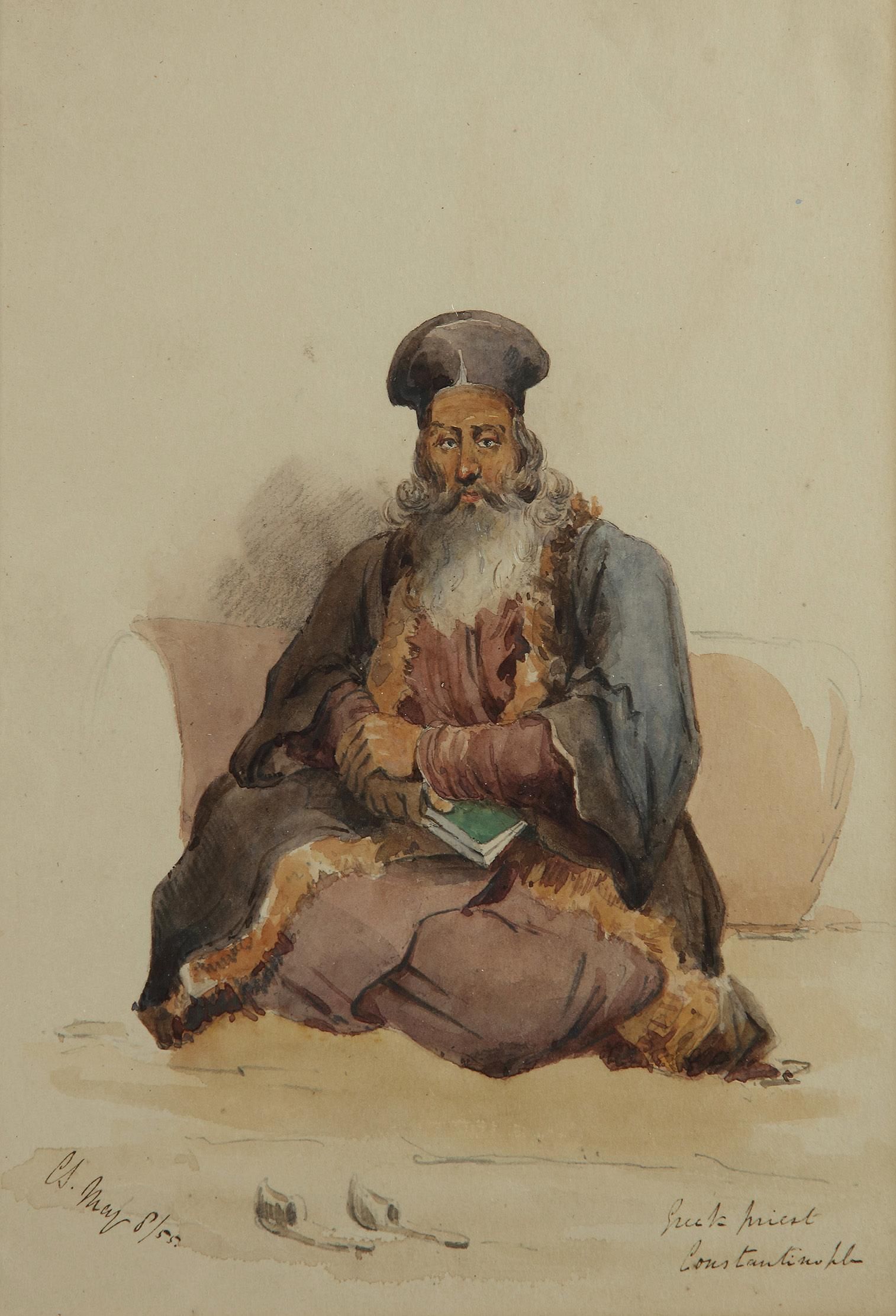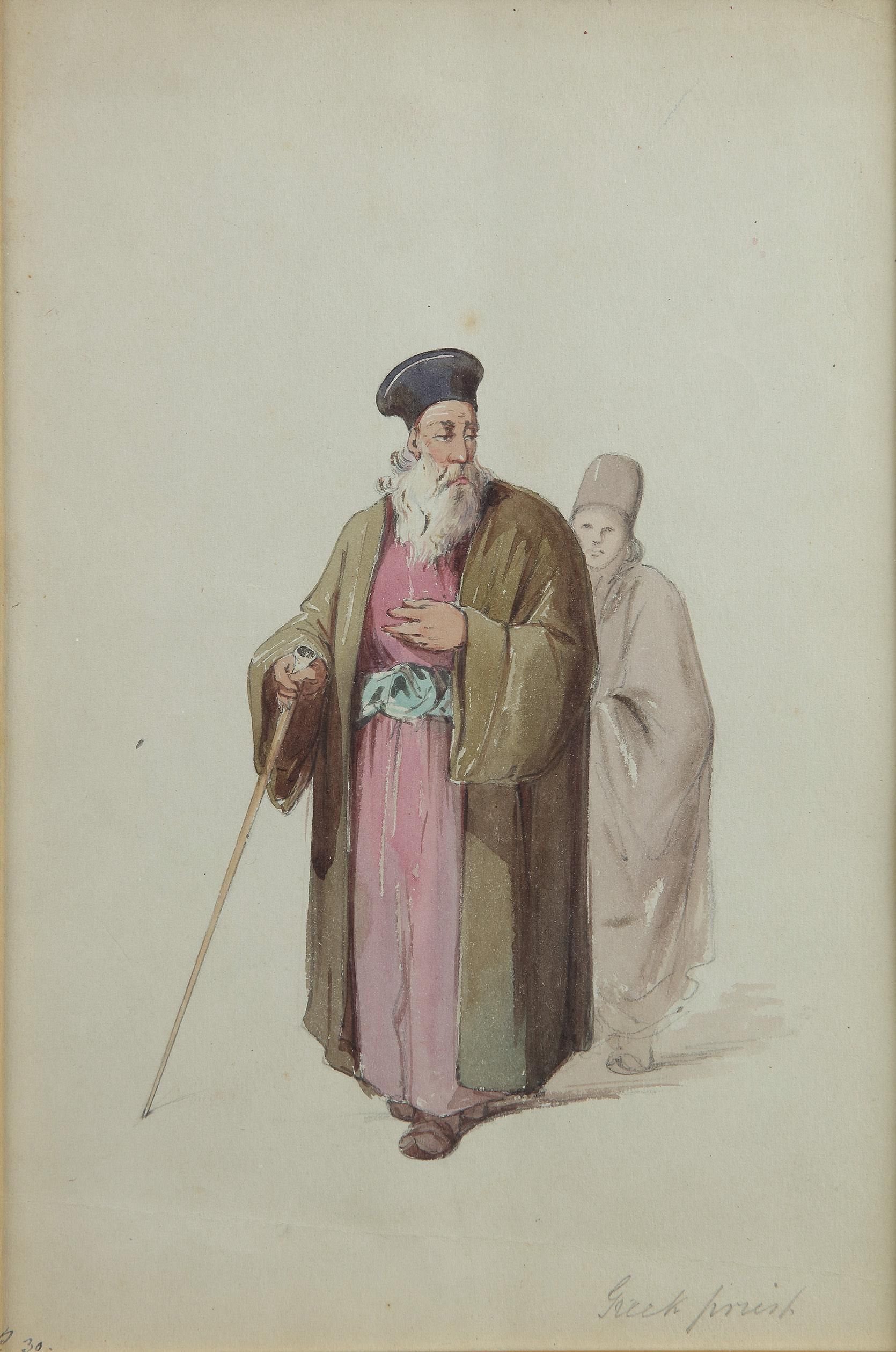 ORIENTALIST SCHOOL, COUNT AMADEO PREZIOSI (MALTESE 1816-1882) Greek Priests from Constantinople Watercolour ( 2x)