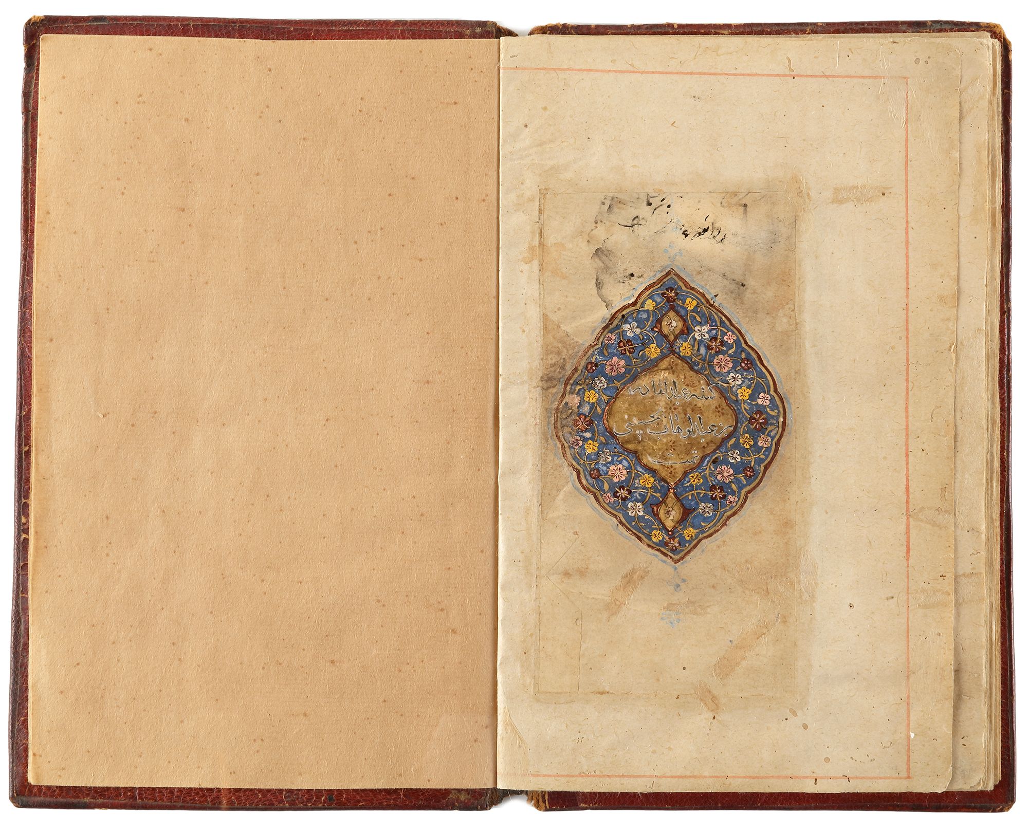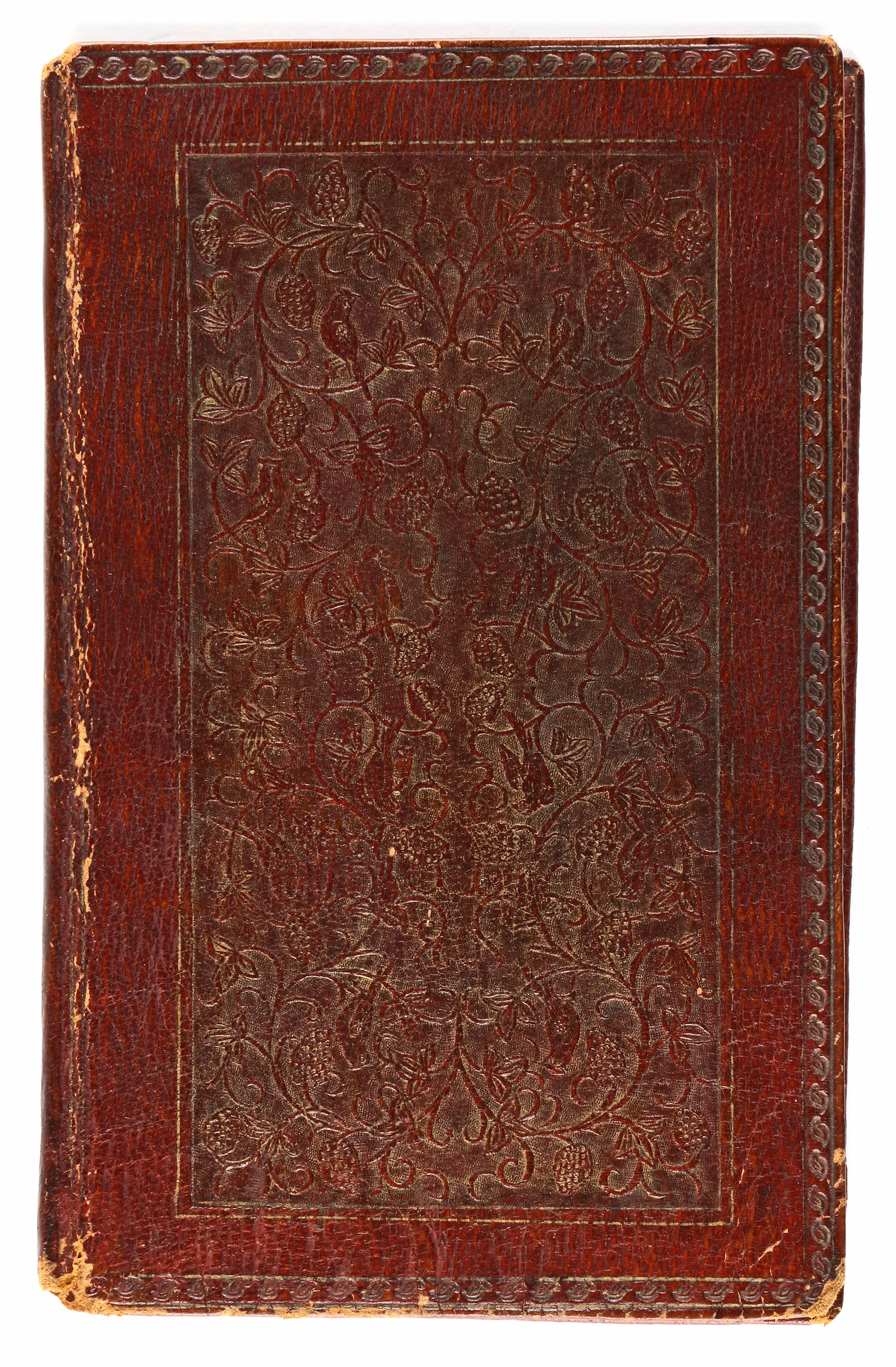Gold verse roundel markers outlined in black, ruled in gold borders, the outer margin with gilt floral scrolls, with a later morocco leather binding.