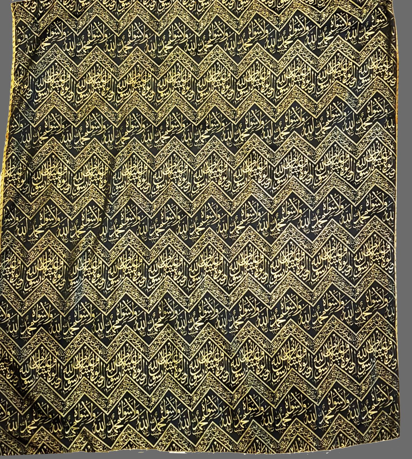 A gilt kabaa kiswa black textile, with Quotations of the Quran and parsing of the prophet.