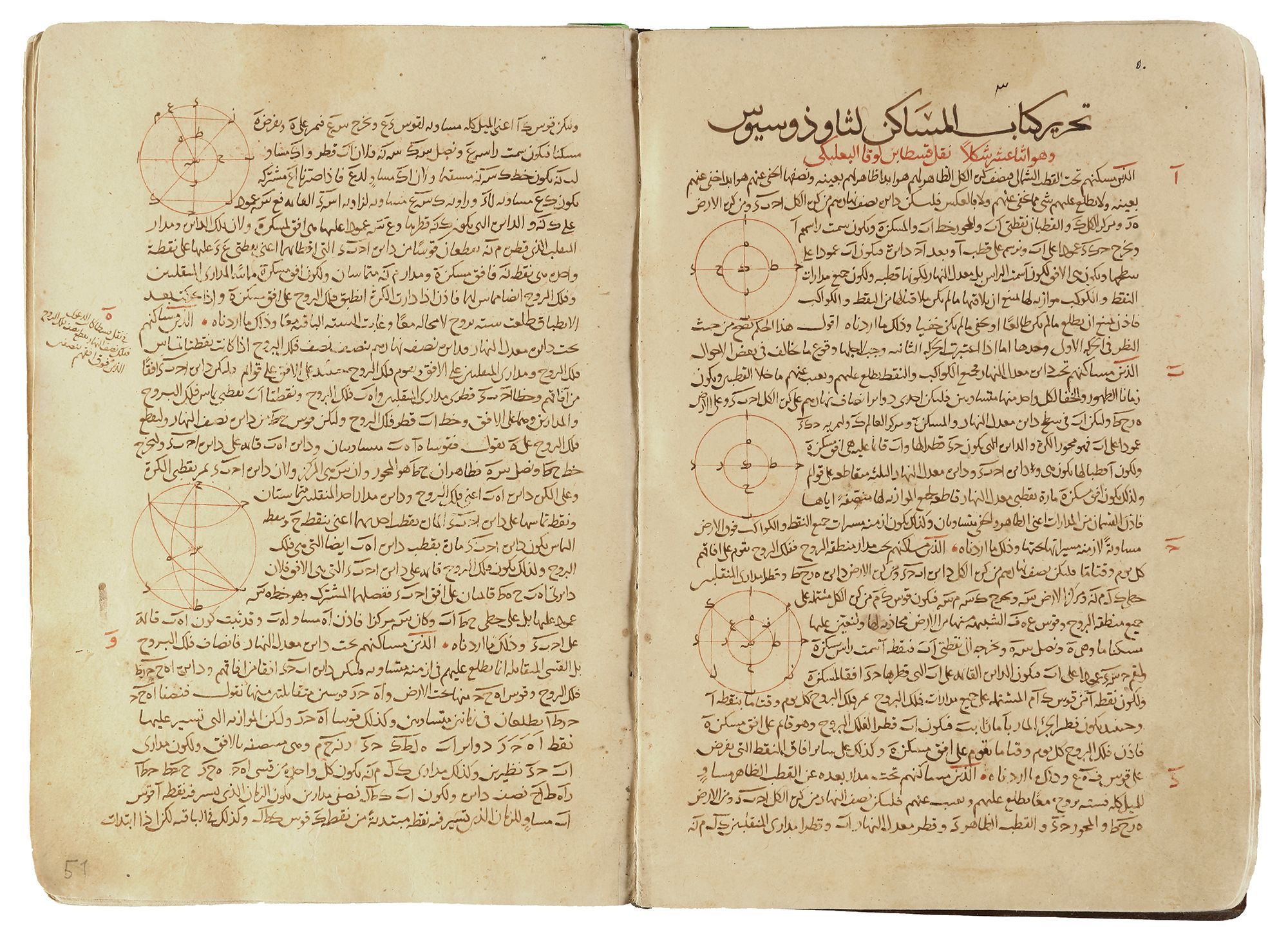 A golden age of Islamic science Nasir Al-Din Tusi and quote Al-Din Shirazi. This manuscript bears witness to the academic lives of the celebrated Ilkhanid astronomer, Nasir al-Din Tusi and his most renowned pupil, Qutb al-Din Shirazi, two of Islam’s principal scholars, who made major contributions to medieval mathematics, astronomy, and philosophy. Written in Seljuk Anatolia in 1279 AD, only five years after Tusi’s death and during Shirazi’s lifetime, it is a fascinating and rare document which gives a particularly striking illustration of how scientific knowledge was passed down from one generation of scholars to another. It comprises five treaties by Tusi, including a previously unrecorded risala as well las his seminal commentary on Ptolemy’s Almagest, Tahir al-majisti. These five treatises were copied by Shirazi from Tusi’s own autograph copies, and Shirazi’s manuscript was then copied in Anatolia by one of his students to produce the present work. Copious notes in the margins show how highly regarded this copy was among later scholars.