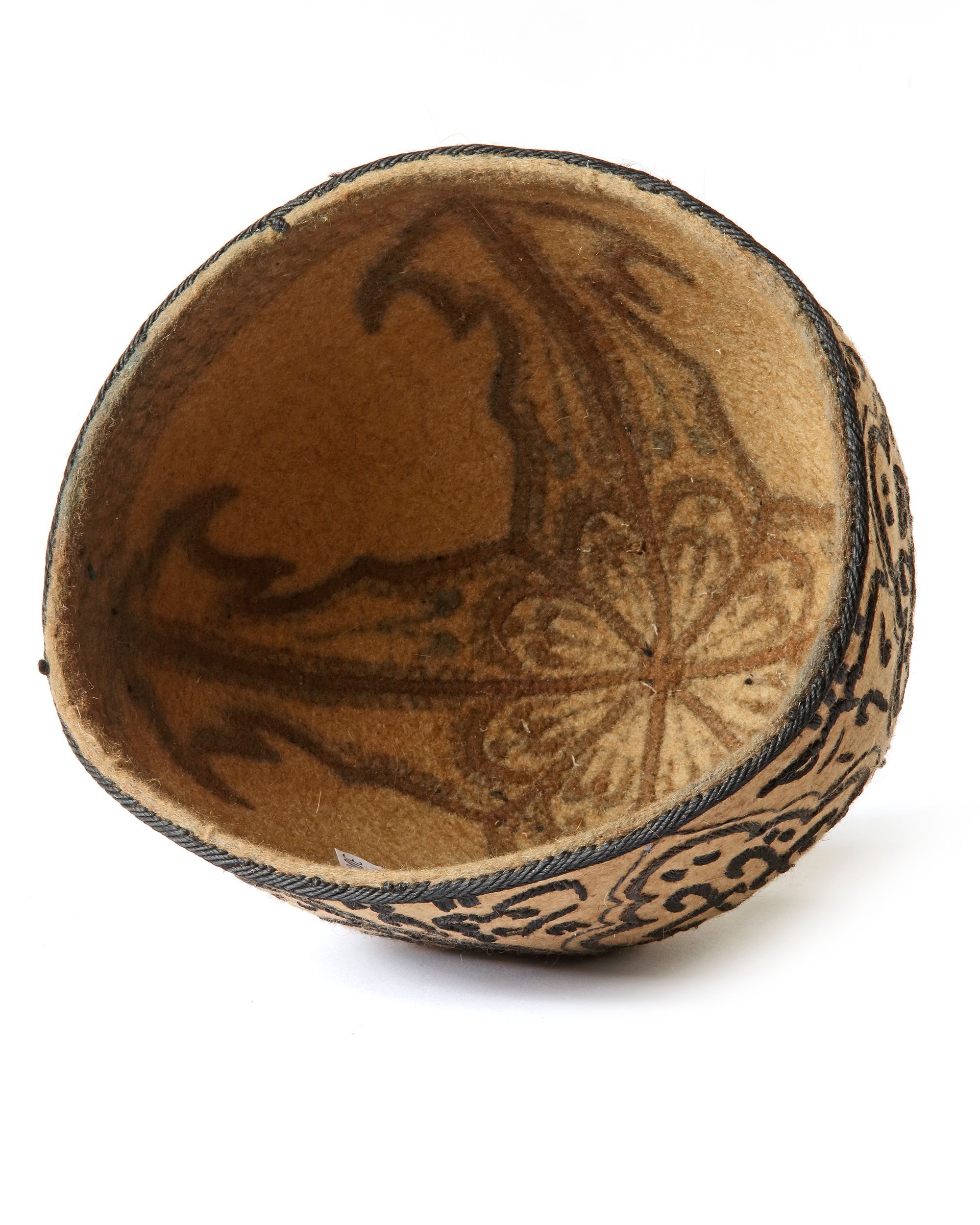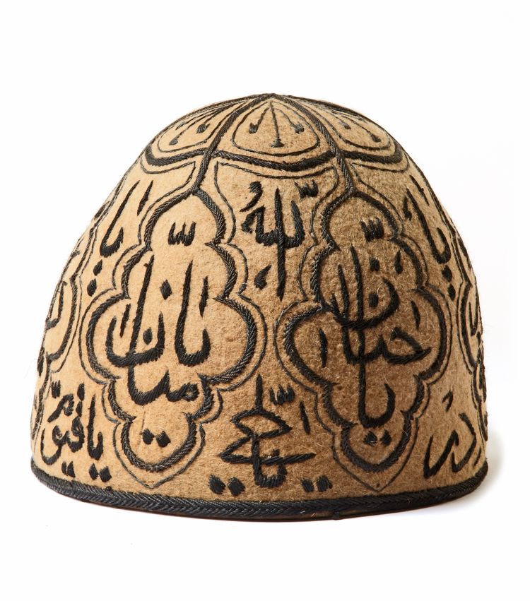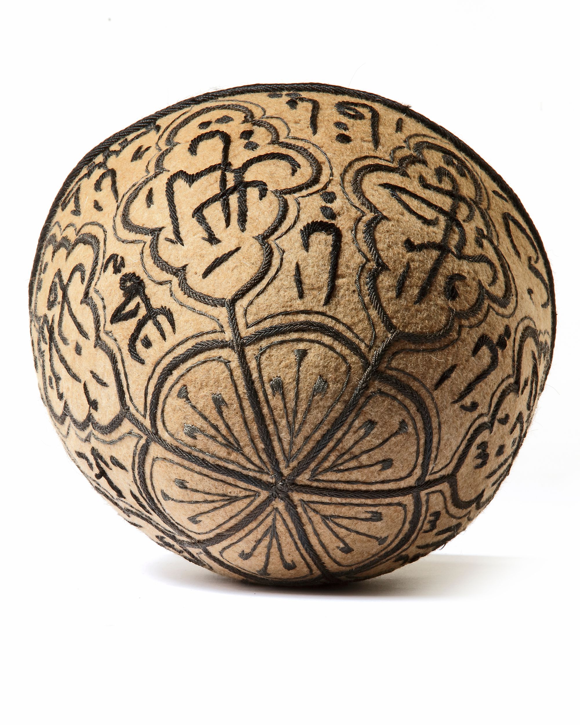 Embroidered in black wool with geometric and foliate patterns and Sufi inscriptions within cartouches. The inscriptions are praising 'Allah'with his different names.