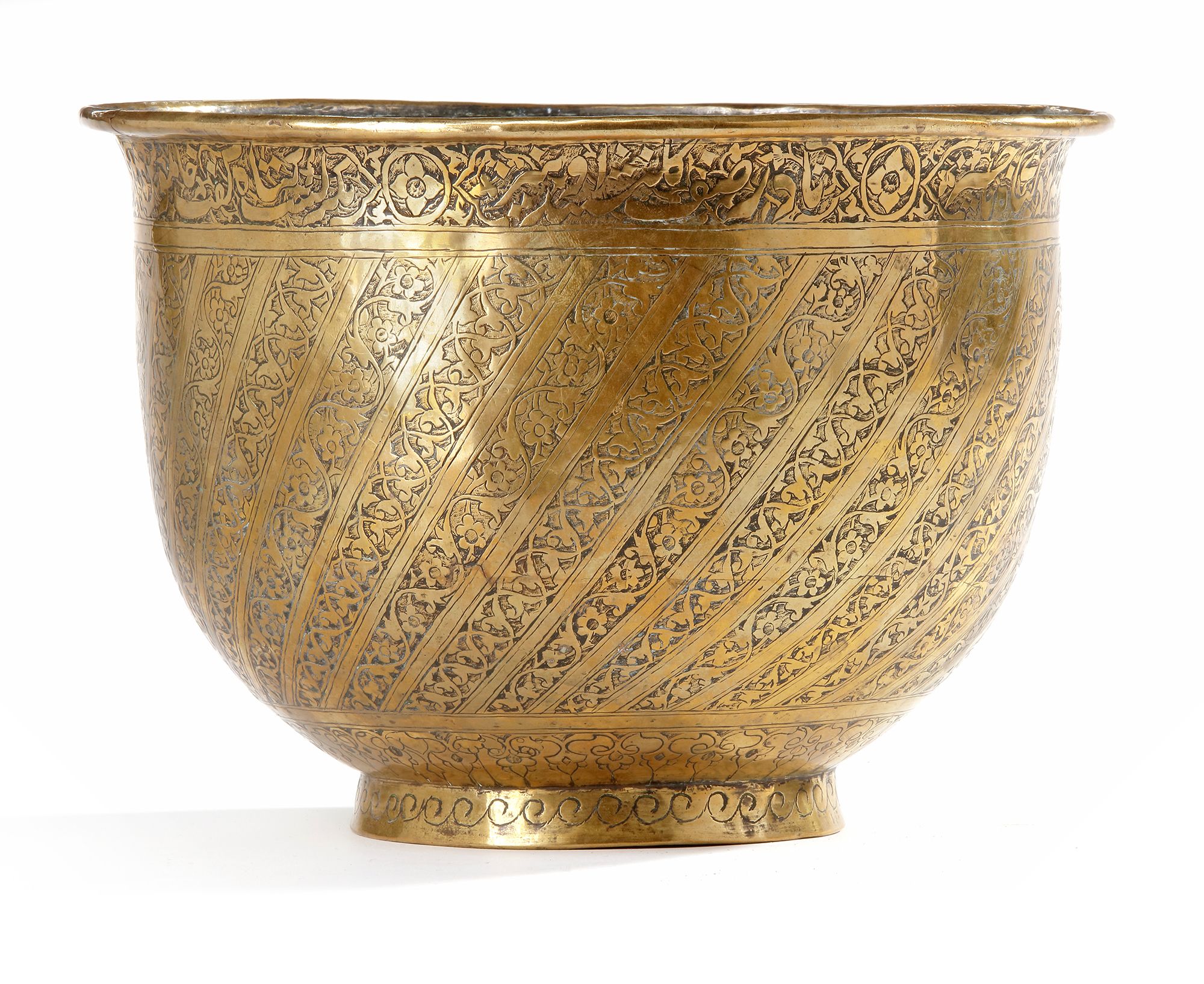 Of deep U-shape applied to the exterior with a band of calligraphy. 16.5 cm high, 23.5 cm diameter.