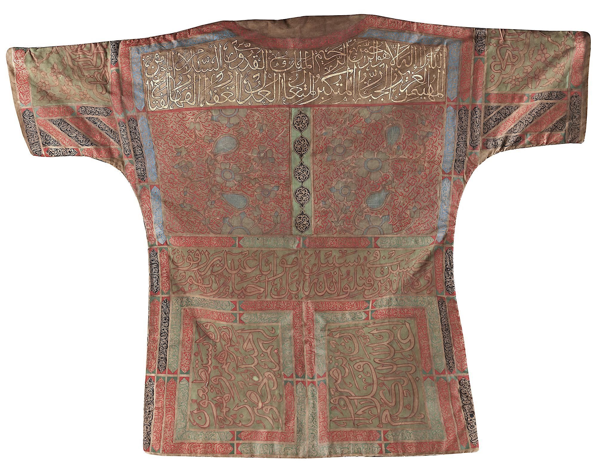 A talisman shirt is an object that has protective powers. Designed and decorated with astrological signs, magic squares, abjad numerals, religious narratives, representations of the prophets in a variety of media, and Qur’anic inscriptions. 90 x 20 cm. Provenance : Private Dutch family.
