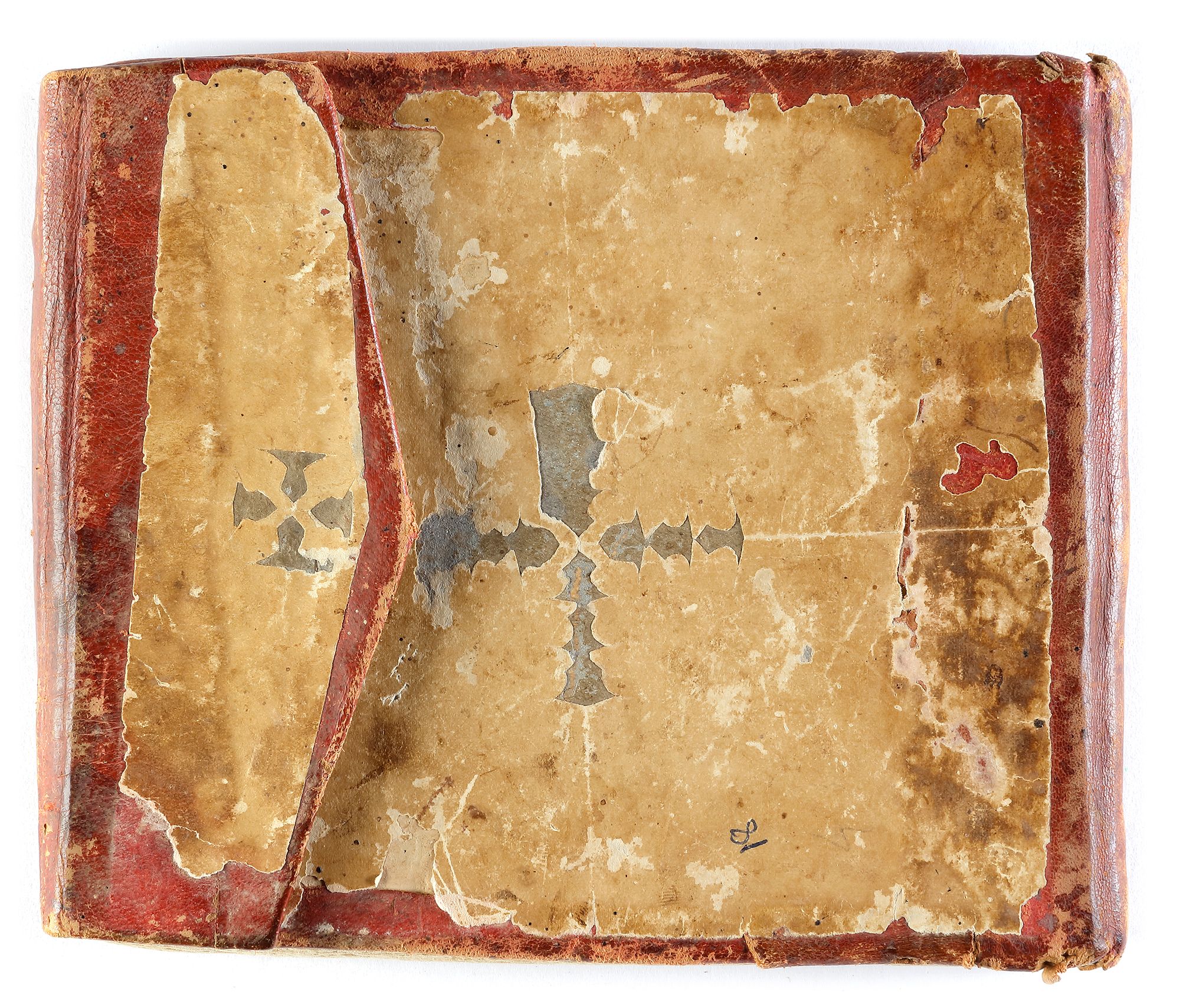 Leather morocco bing with flap, 15.5 by 18 cm.