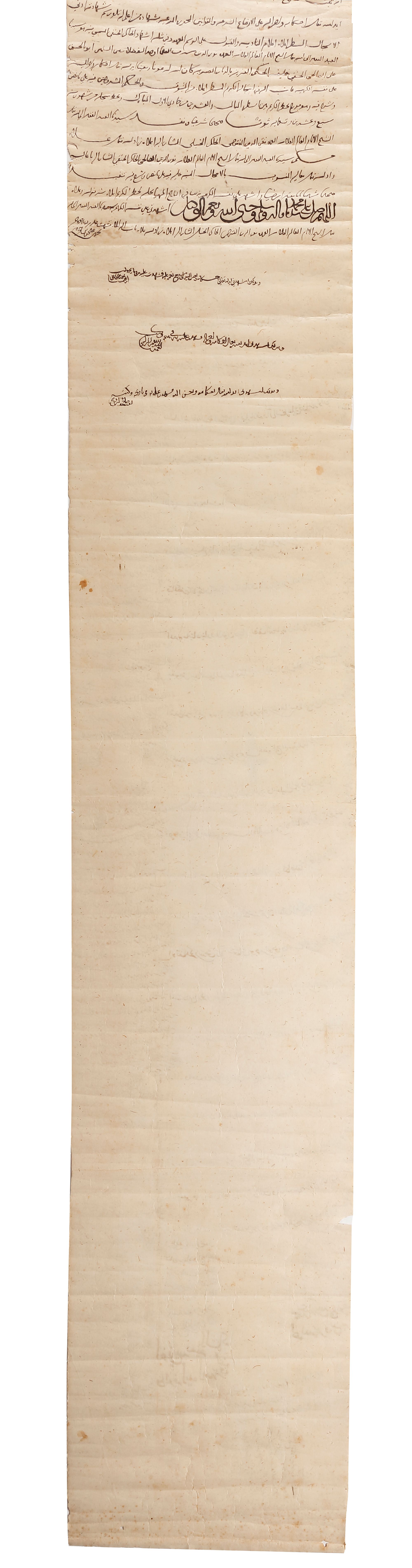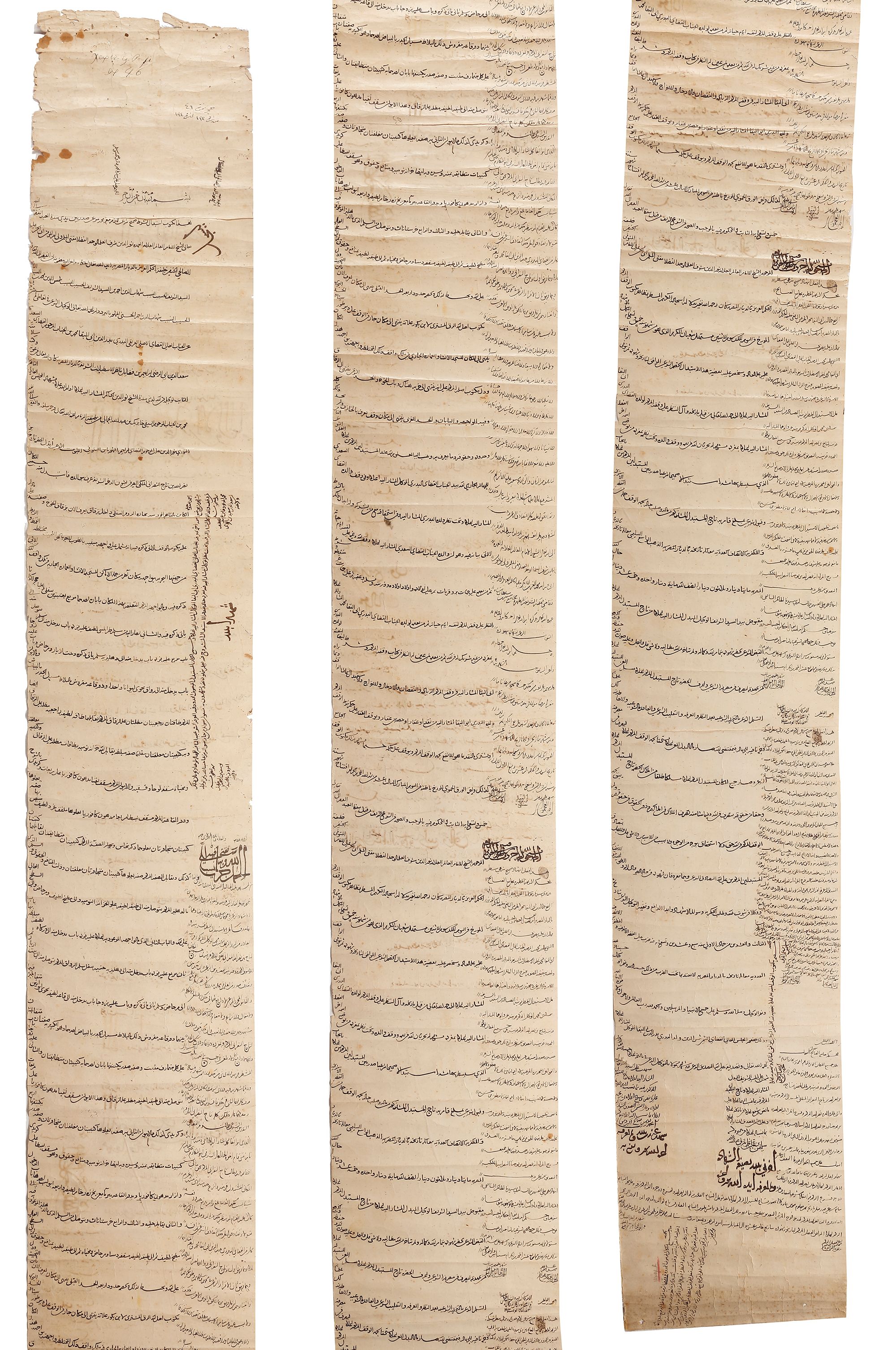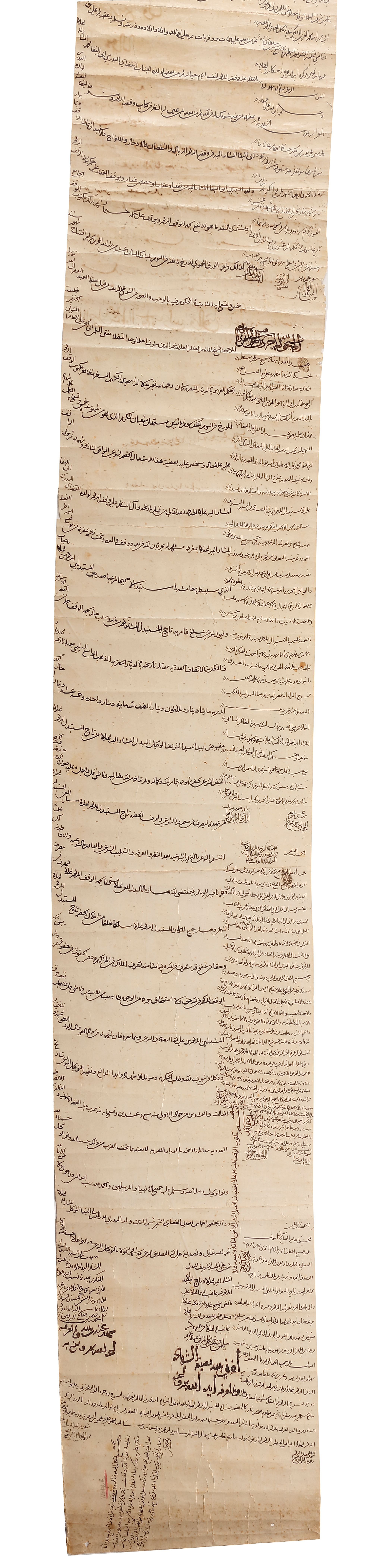 A RARE SCROLL, LATE MAMLUK CHRISTIAN DEED ENDOWMENT (WAQFIYA), BY THE JUDGE NOUR AL-DIN ABI AL-HASSAN ALI MUHAMMAD AL-SALHI, DATED 23rd JUMADA-I 927 AH/ 5th MAY 1521 AD