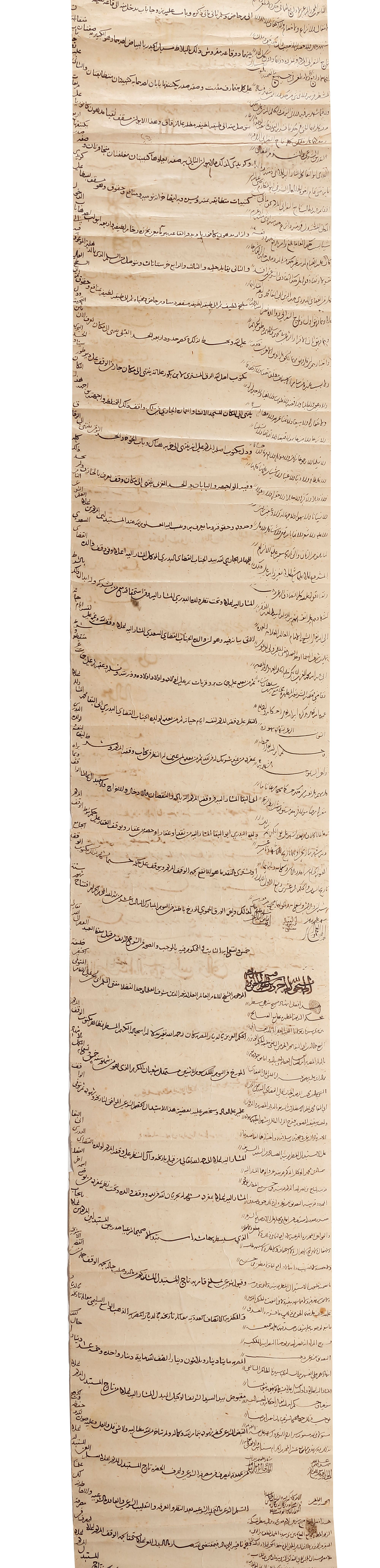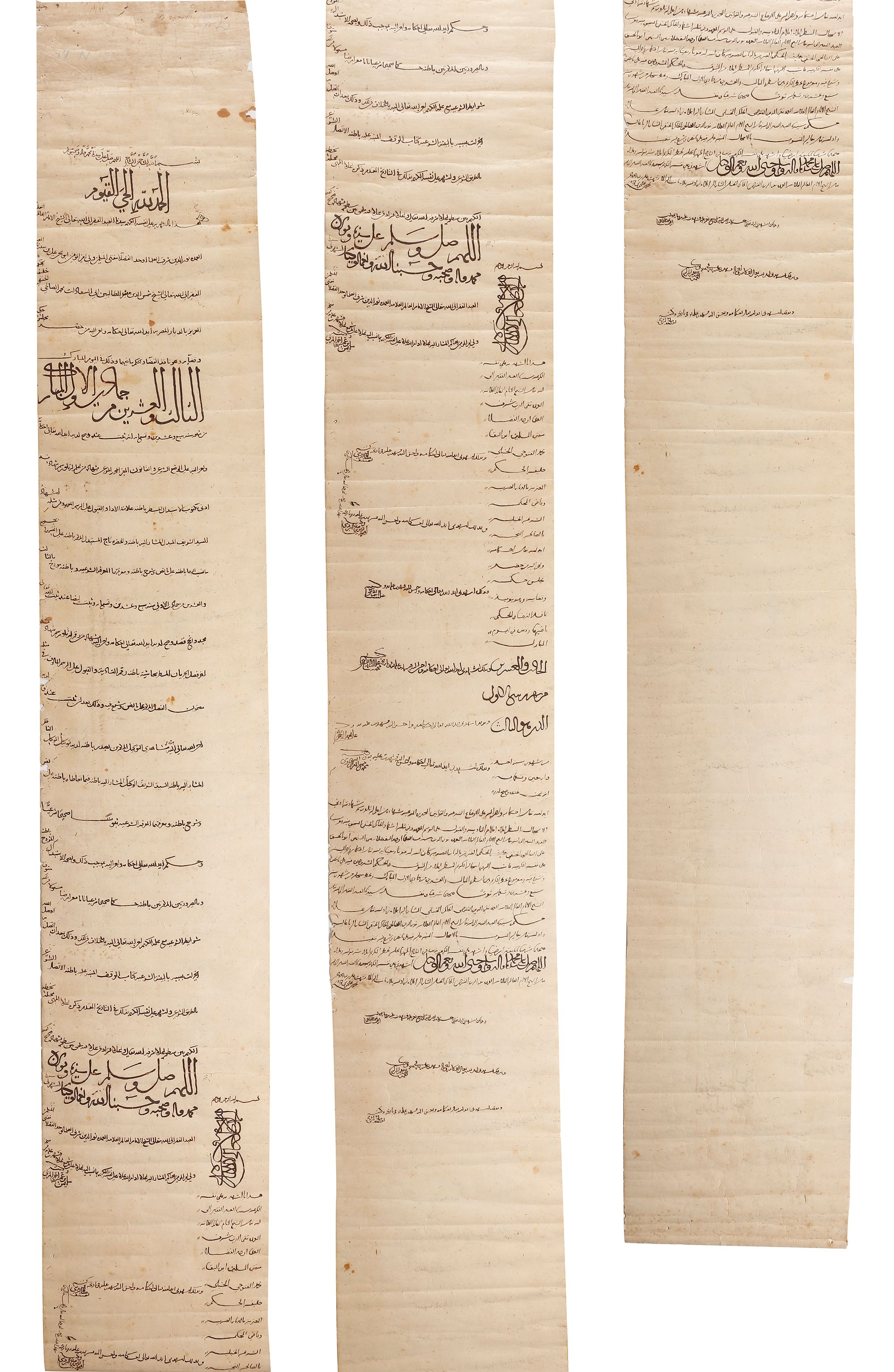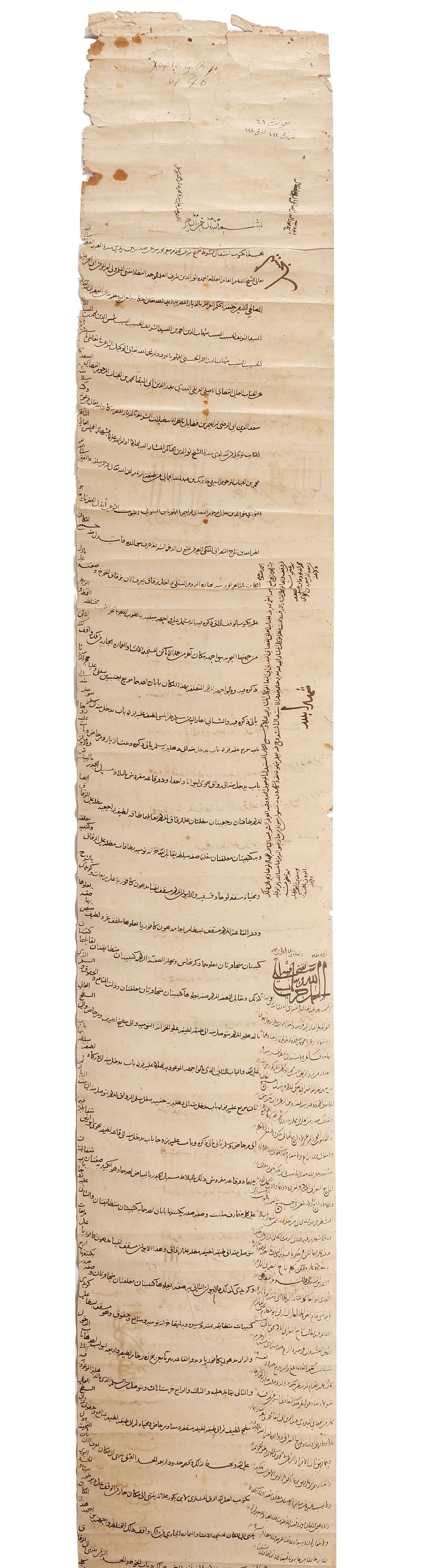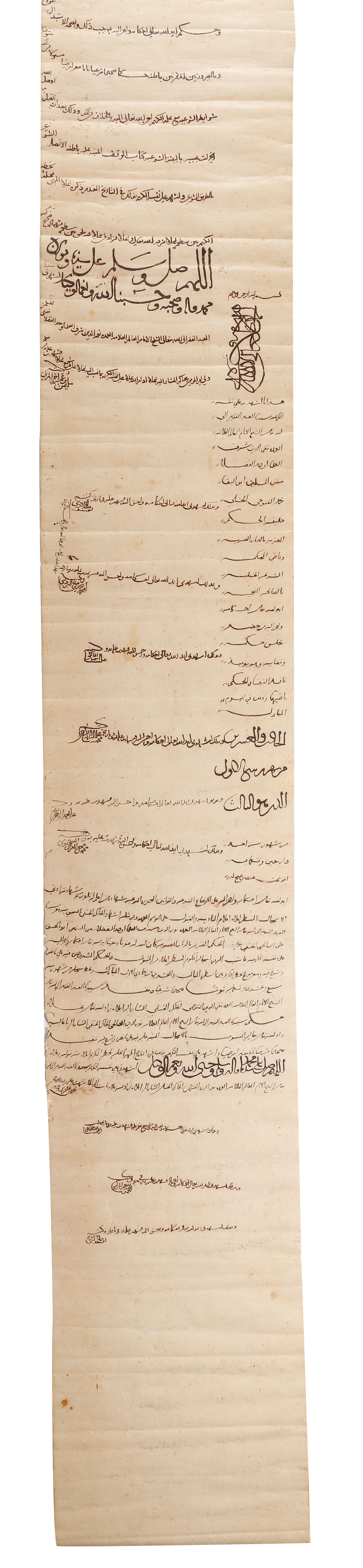 A RARE SCROLL, LATE MAMLUK CHRISTIAN DEED ENDOWMENT (WAQFIYA), BY THE JUDGE NOUR AL-DIN ABI AL-HASSAN ALI MUHAMMAD AL-SALHI, DATED 23rd JUMADA-I 927 AH/ 5th MAY 1521 AD