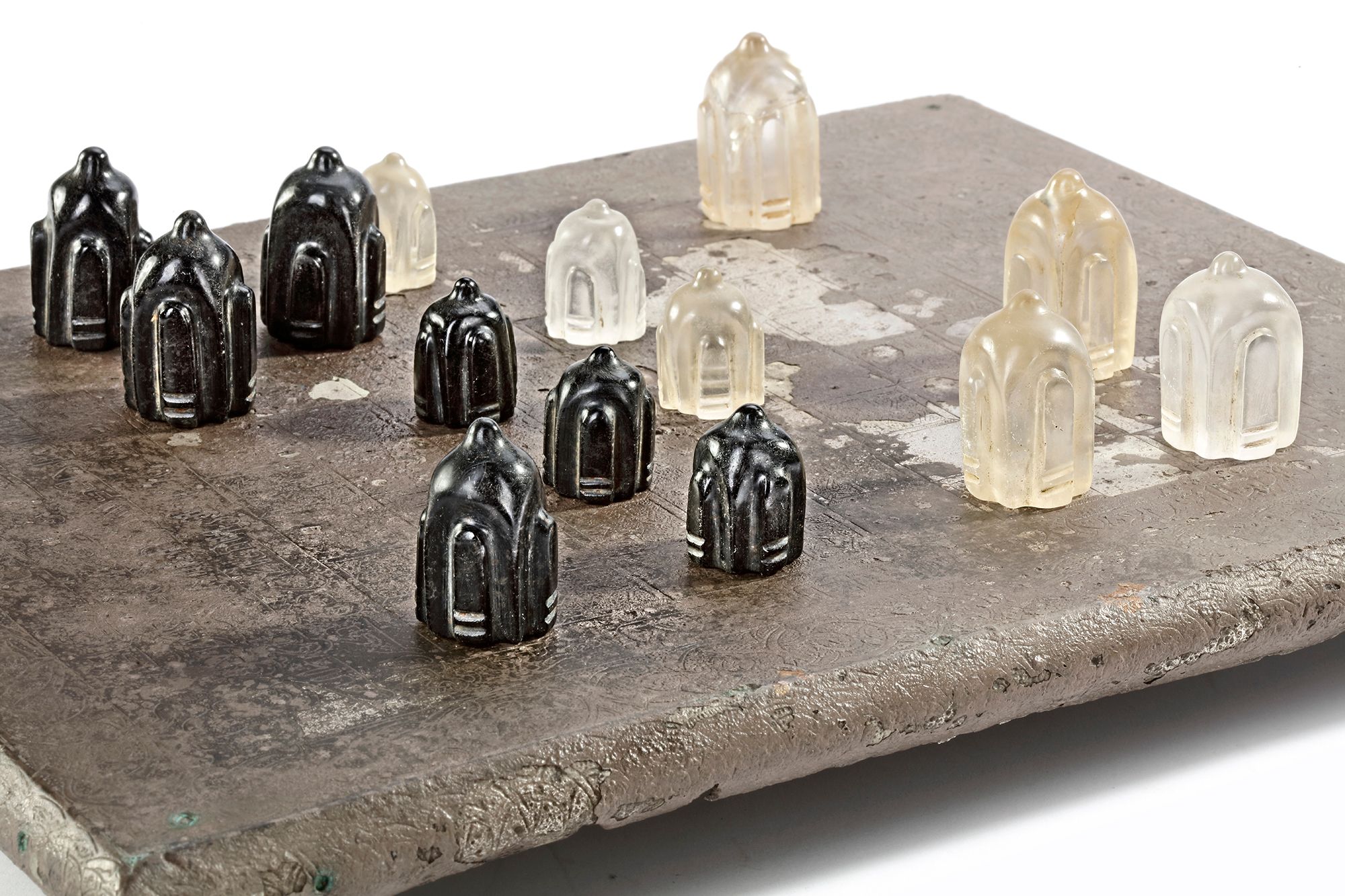 The poem on the chess board translate as follows: “O that the stars would draw near me that I should form from them a necklace in praise of you; for words are inadequate.”