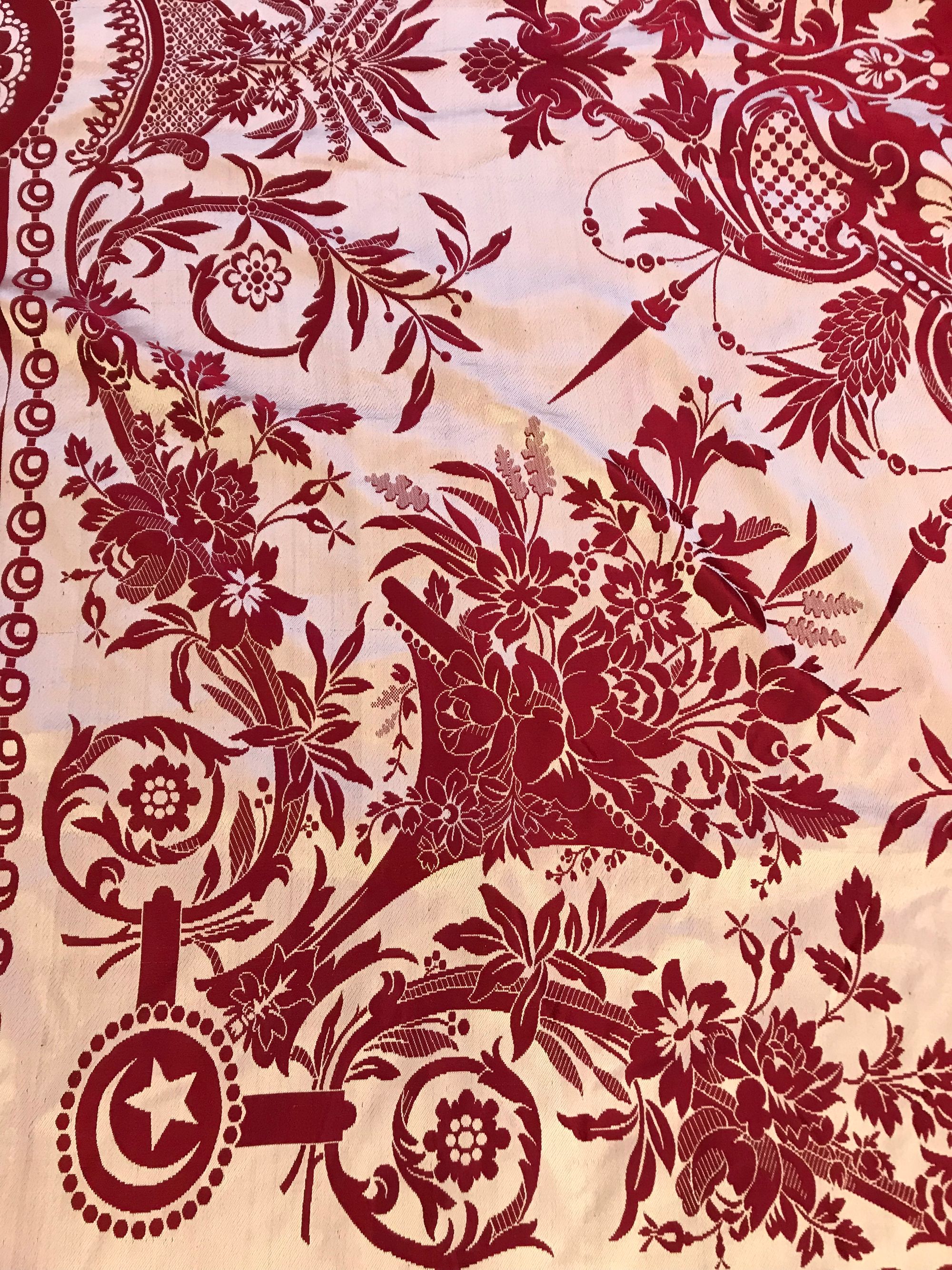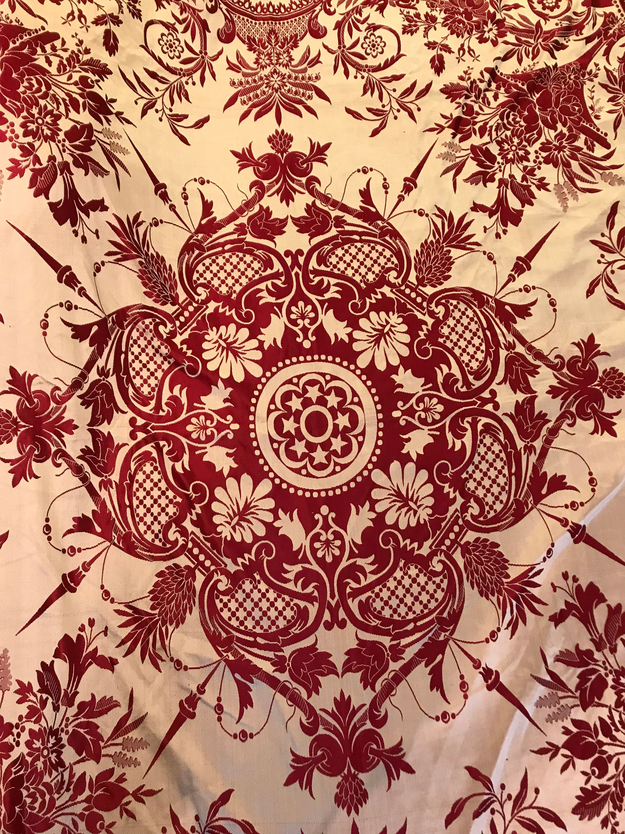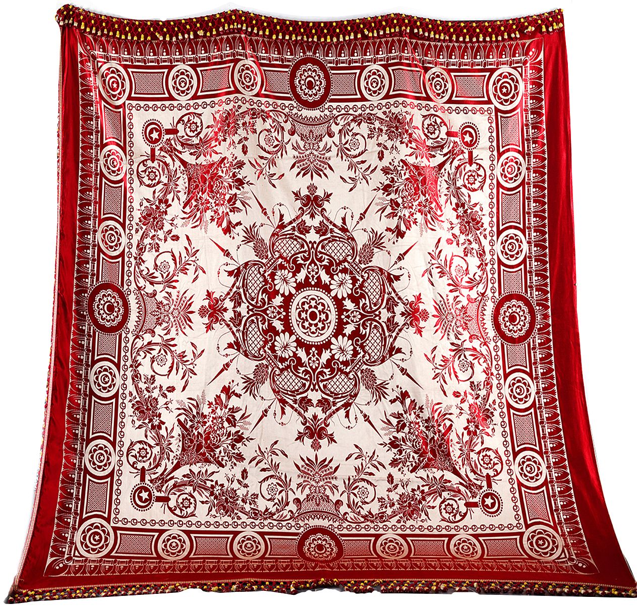 A hanging panel decorated with flowers and foliage. 245 by 270 cm.