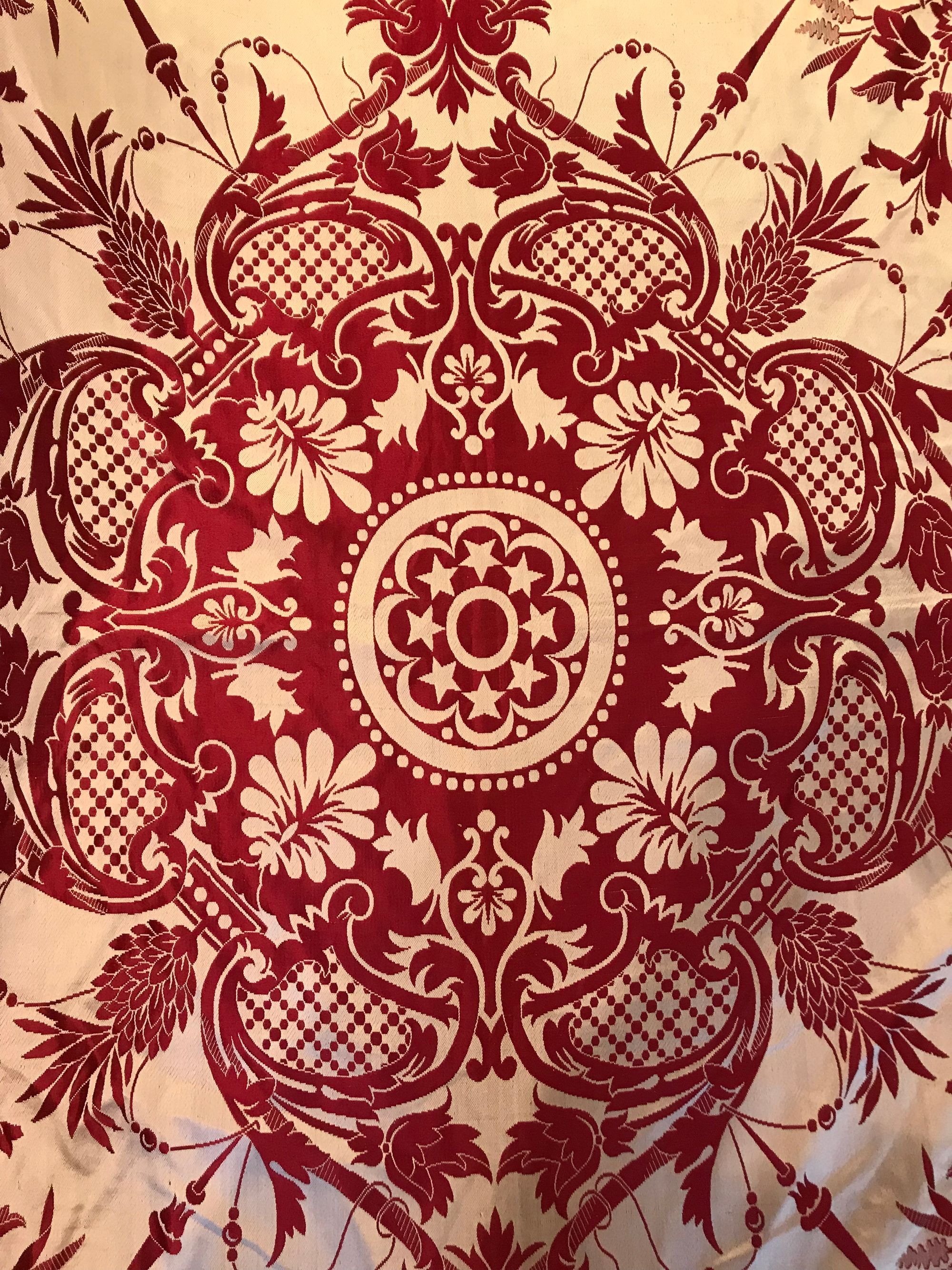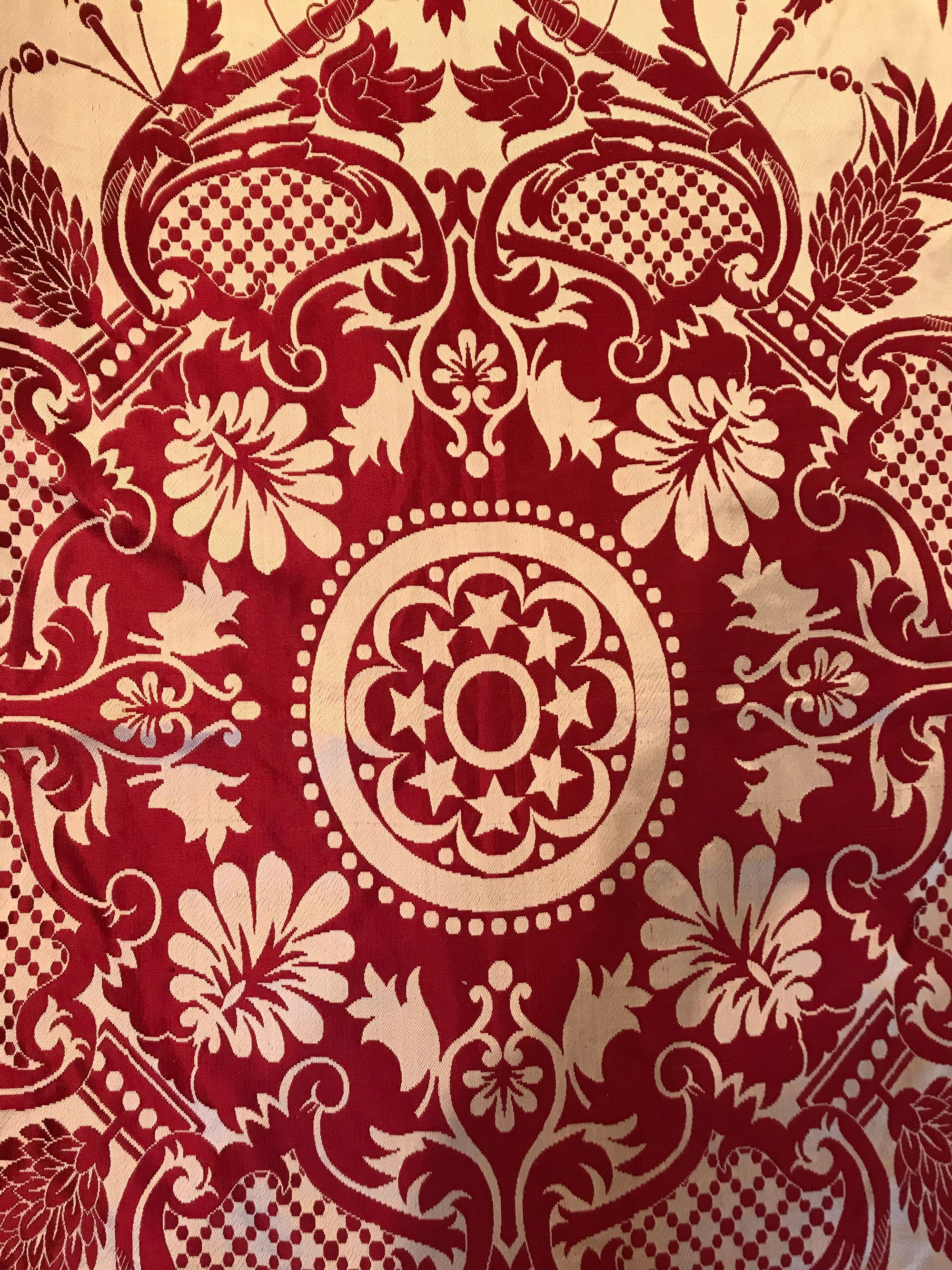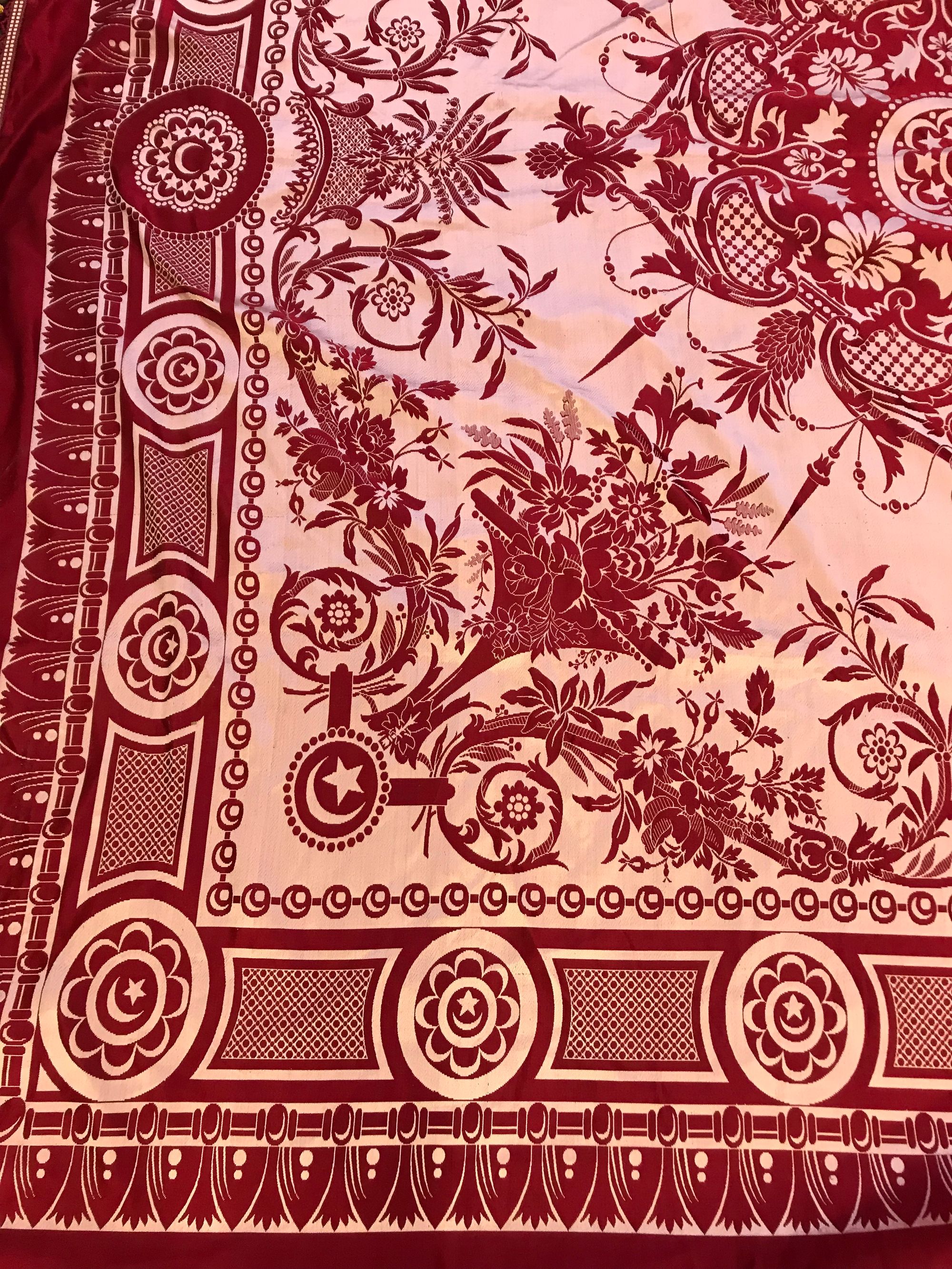 A hanging panel decorated with flowers and foliage. 245 by 270 cm.
