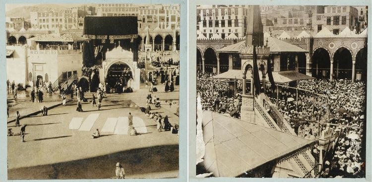 One old picture of the Kabaa with zamzam well, another picture of the Shafi‘i maqam and a part of the Hanfi one around the Kabaa. Each 20 by 20 cm.