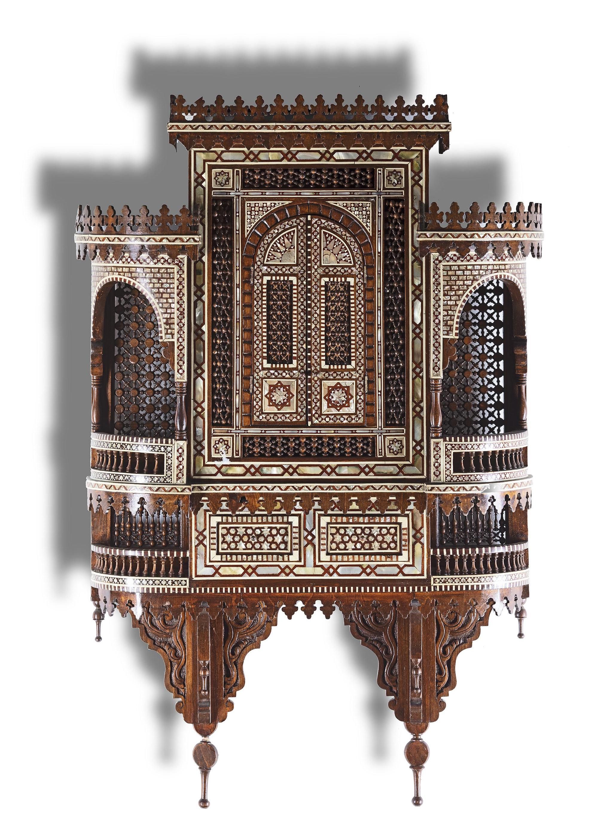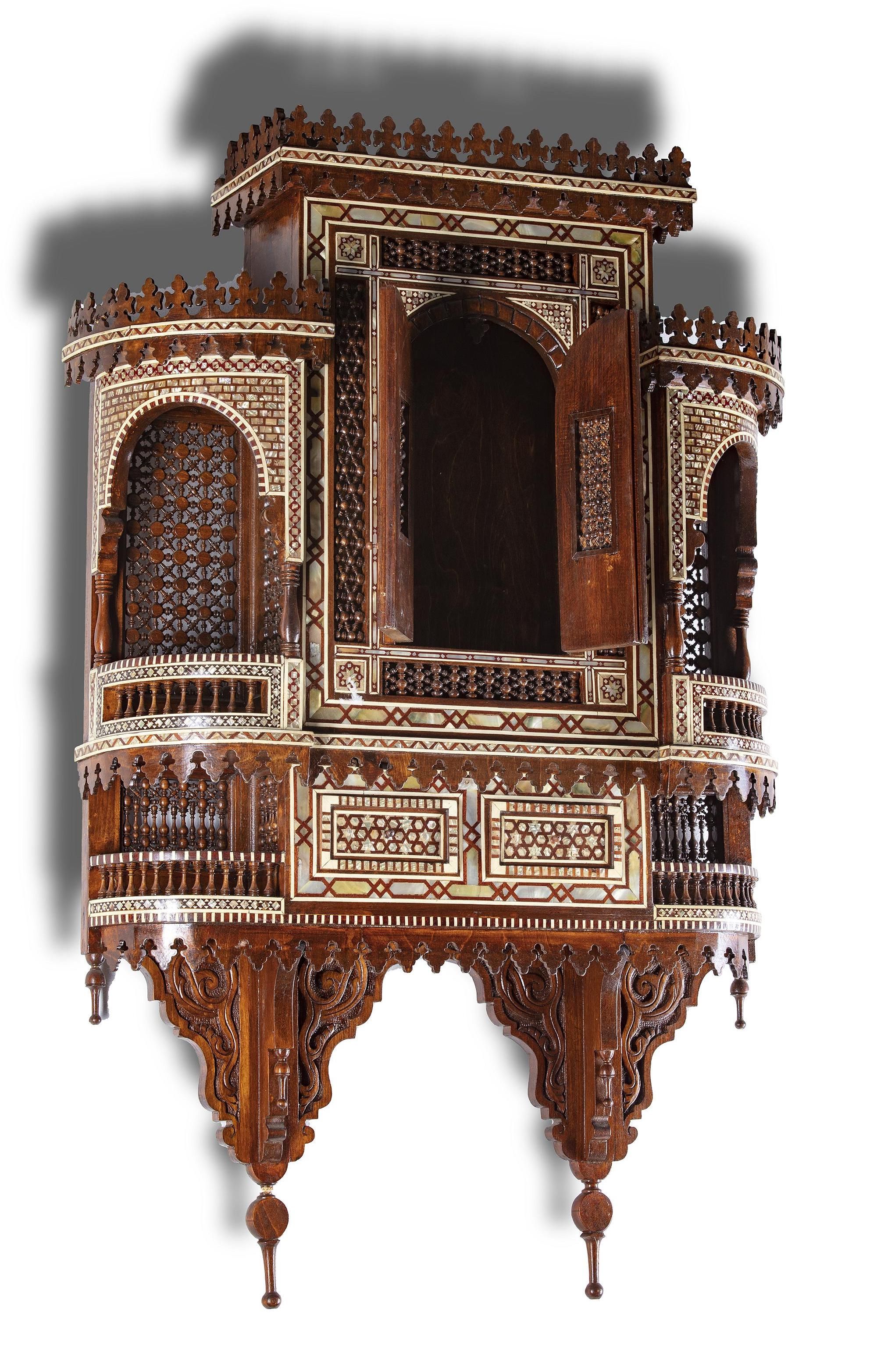 AN EGYPTIAN MOTHER-OF-PEARL INLAID WOOD ARCHITECTURAL WALL BRACKET, LATE 19TH CENTURY AN EGYPTIAN MOTHER-OF-PEARL INLAID WOOD ARCHITECTURAL WALL BRACKET, LATE 19TH CENTURY AN EGYPTIAN MOTHER-OF-PEARL INLAID WOOD ARCHITECTURAL WALL BRACKET, LATE 19TH CENTURY