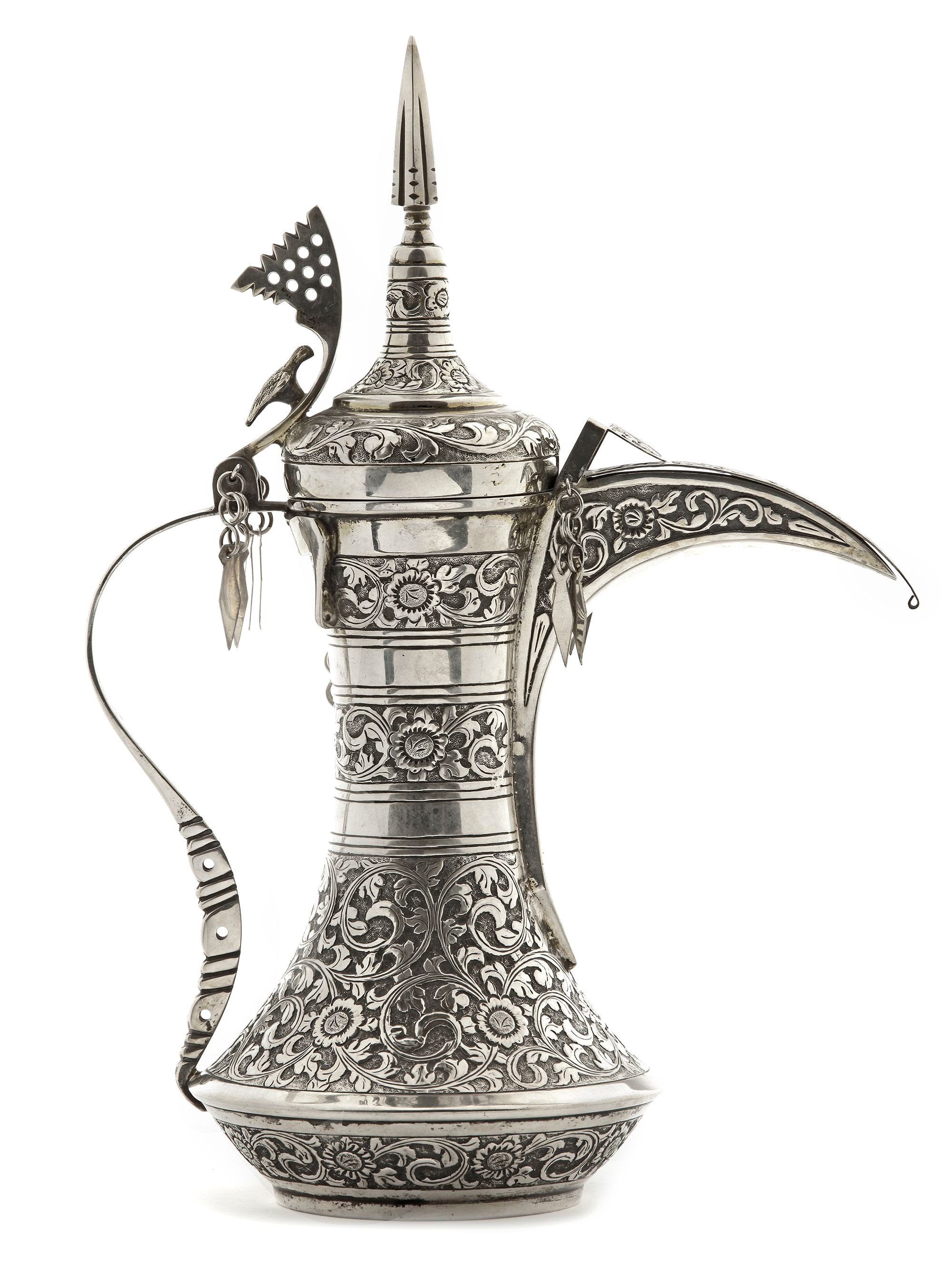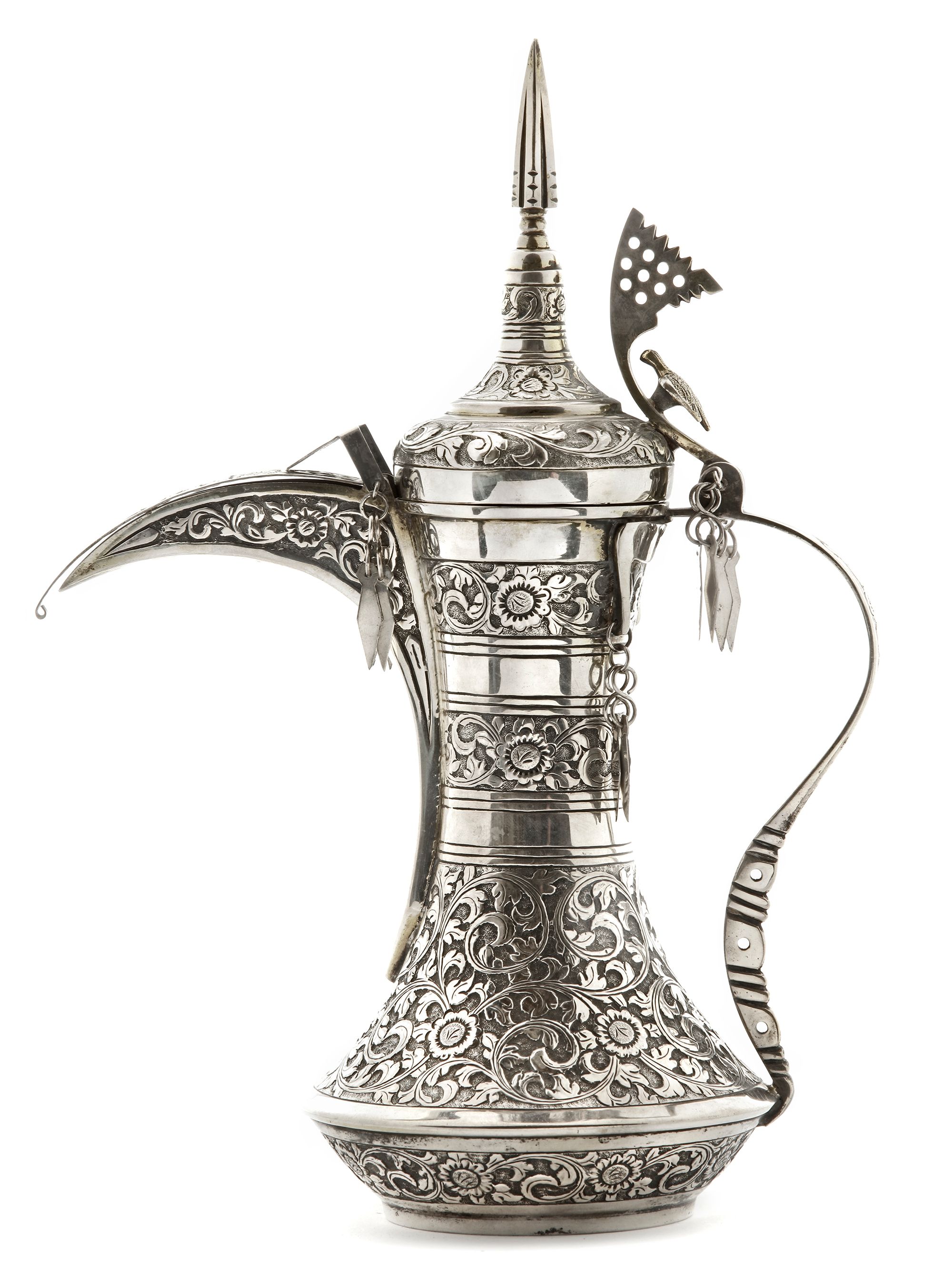 A SILVER COFFEE POT OR DALLAH OMAN NIZWA, CIRCA 1940-1950