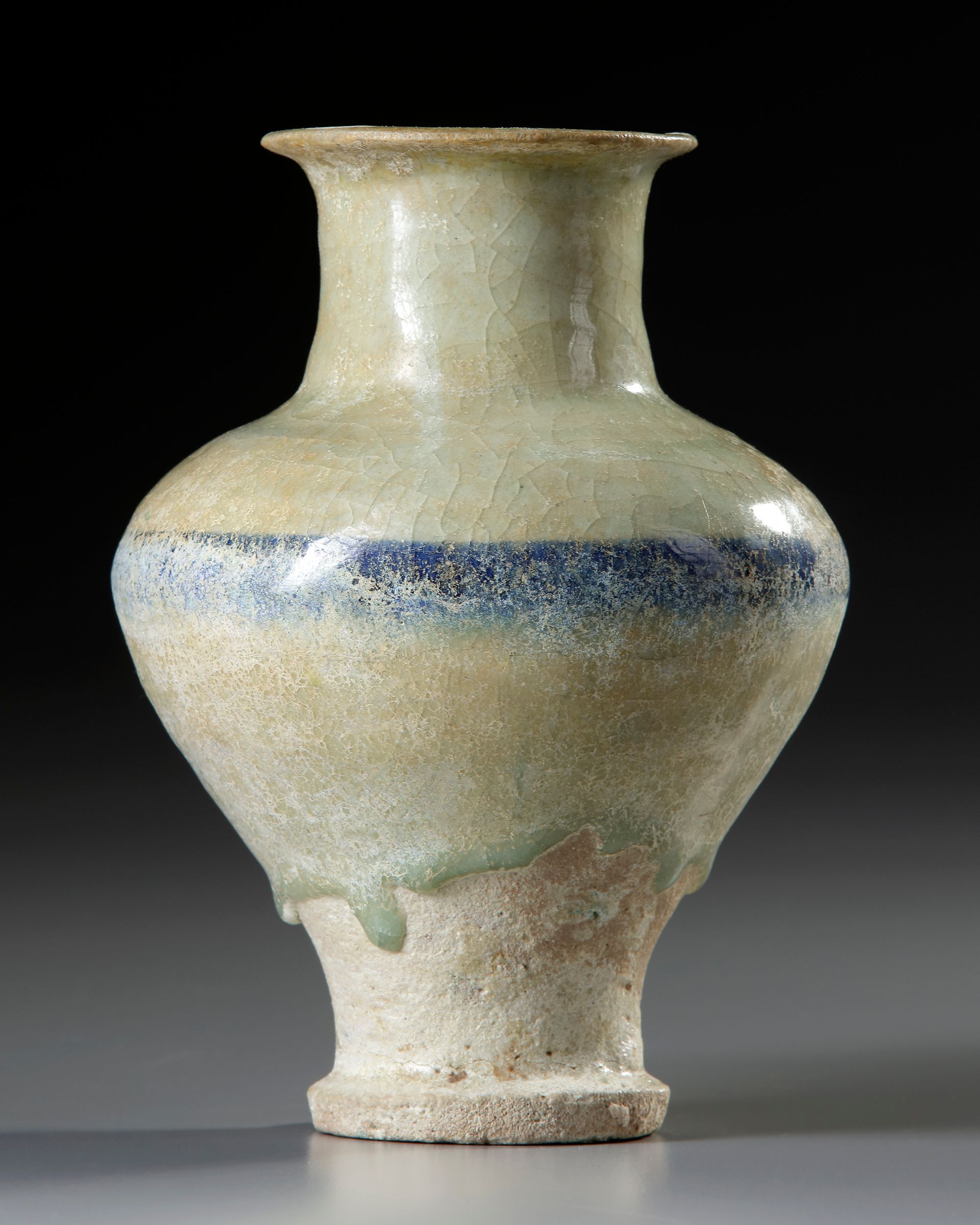 A RAQQA BLUE AND WHITE POTTERY JAR, SYRIA, 13TH CENTURY