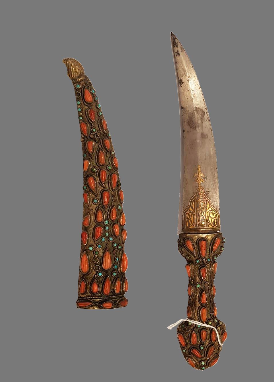 An ottoman Khanjar with scabbard inlaid with coral and turquoise,