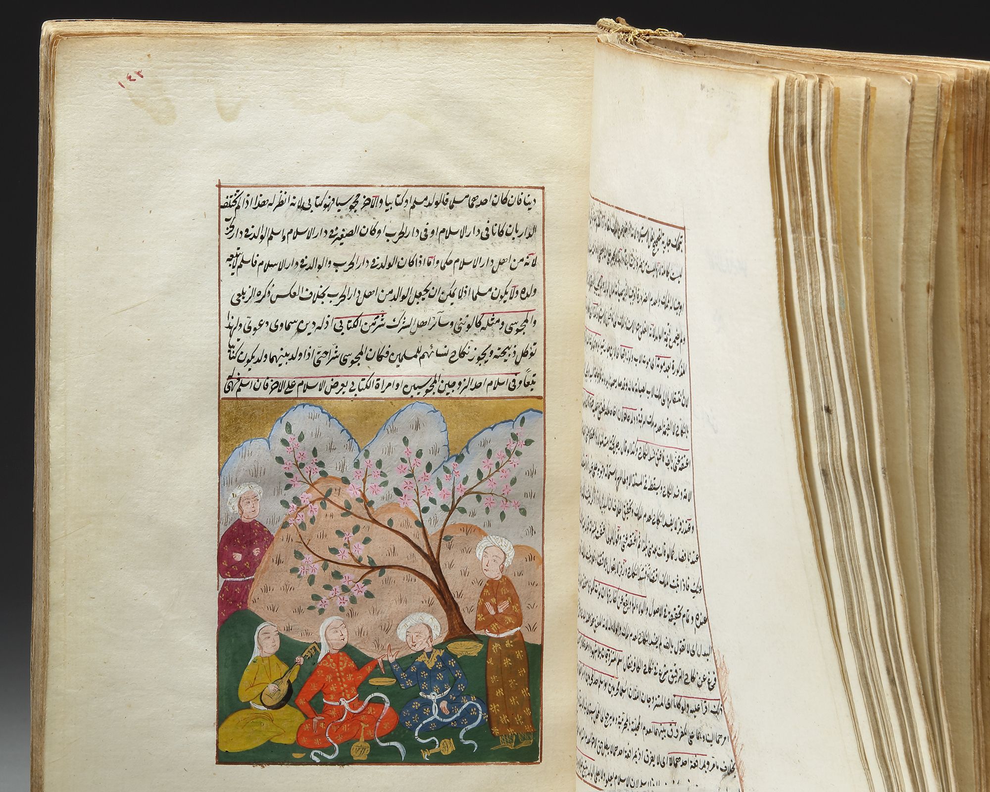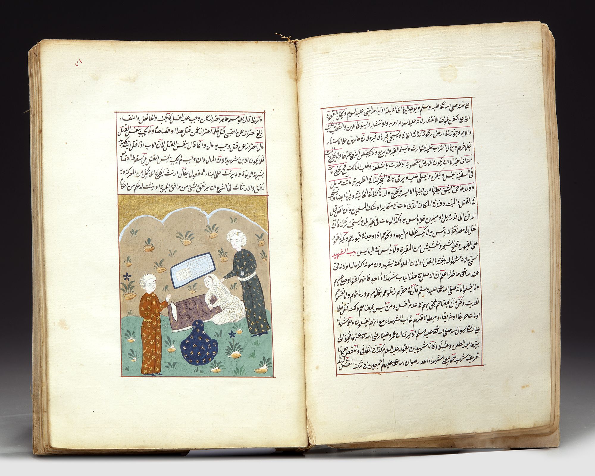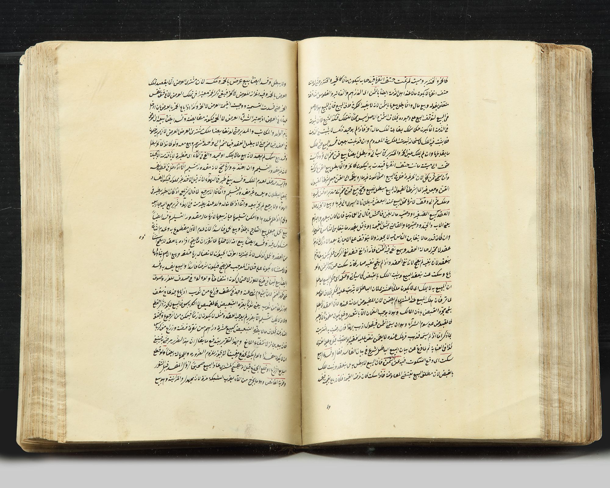 Muhammad bin Framers Mulla Khusrow Hanafi, 885 AH/1480 AD. Copied by Muhammad Amin, Istanbul,1253 AH/1832 AD. About Hanafi Fiqh: human understanding of the divine Islamic law as revealed in the Quran. An Arabic manuscript on paper, with 410 pages and 25 lines to a page. Written in clear naskh script in black ink with headings, keywords and annotations in red ink with five miniatures. Numerous neatly written marginal notes and insertions in different hands. Hardcover. 22 by 14.5 cm.