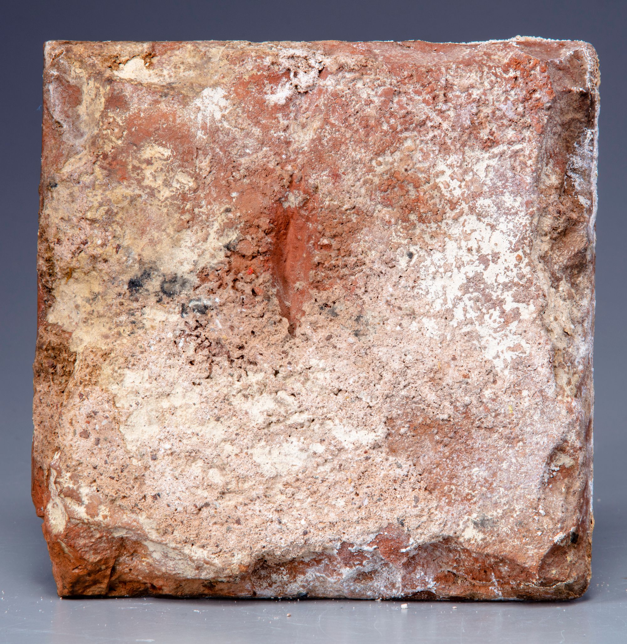 An Islamic Persian pottery tile, decorated on a cobalt blue ground with white, black and blue , Arabic calligraphy.