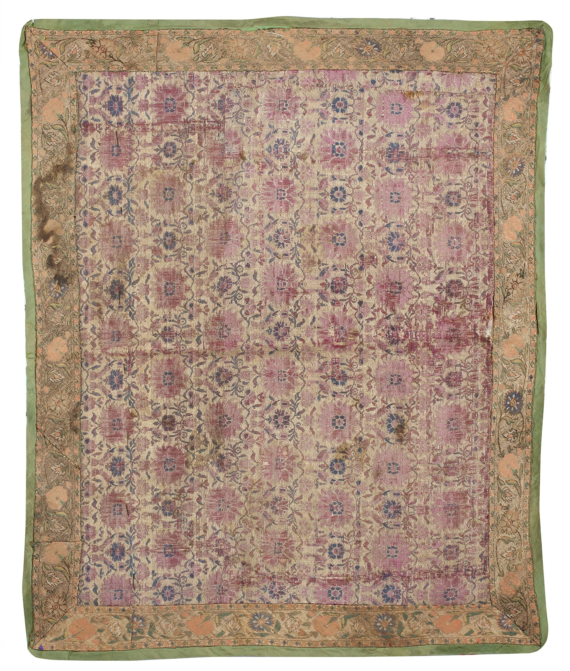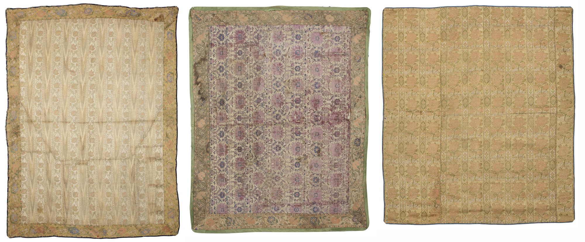 Each of square or rectangular shape, on silk ground woven with metal or silk threads depicting a repeat design of floral motifs.