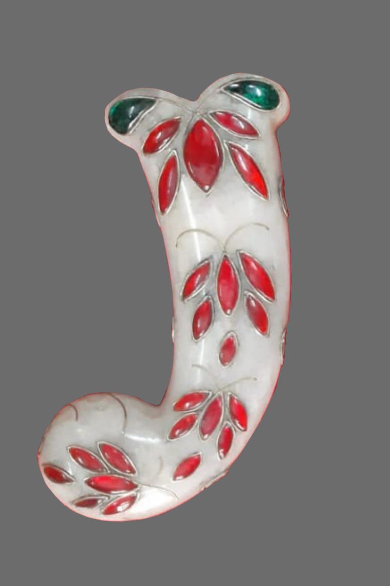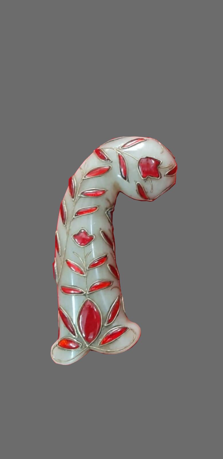 A Mughal gem-set dagger hilt with a bird head shaped pommel, set with rubies gemstones and gold-inlay in an elegant design of floral stems.