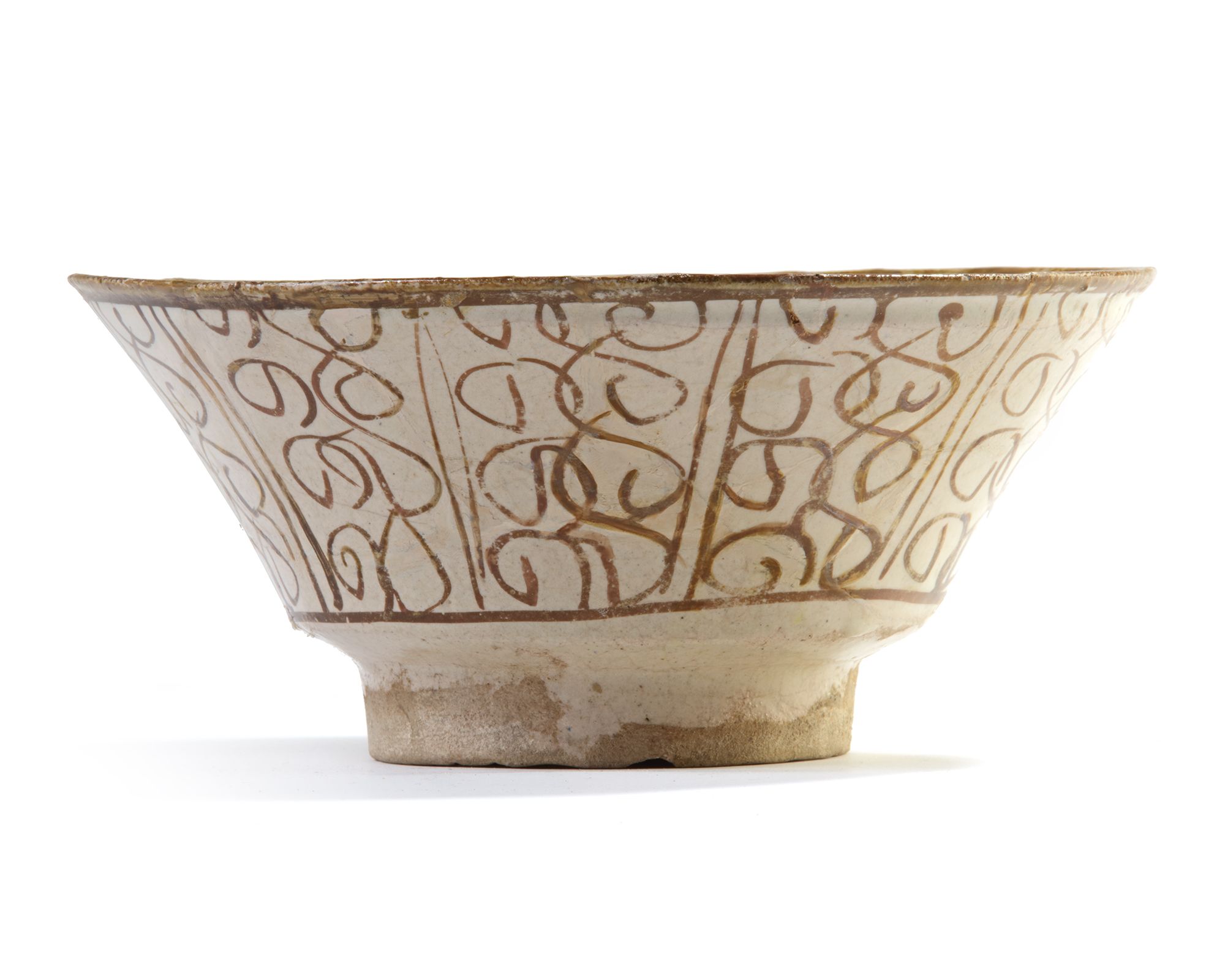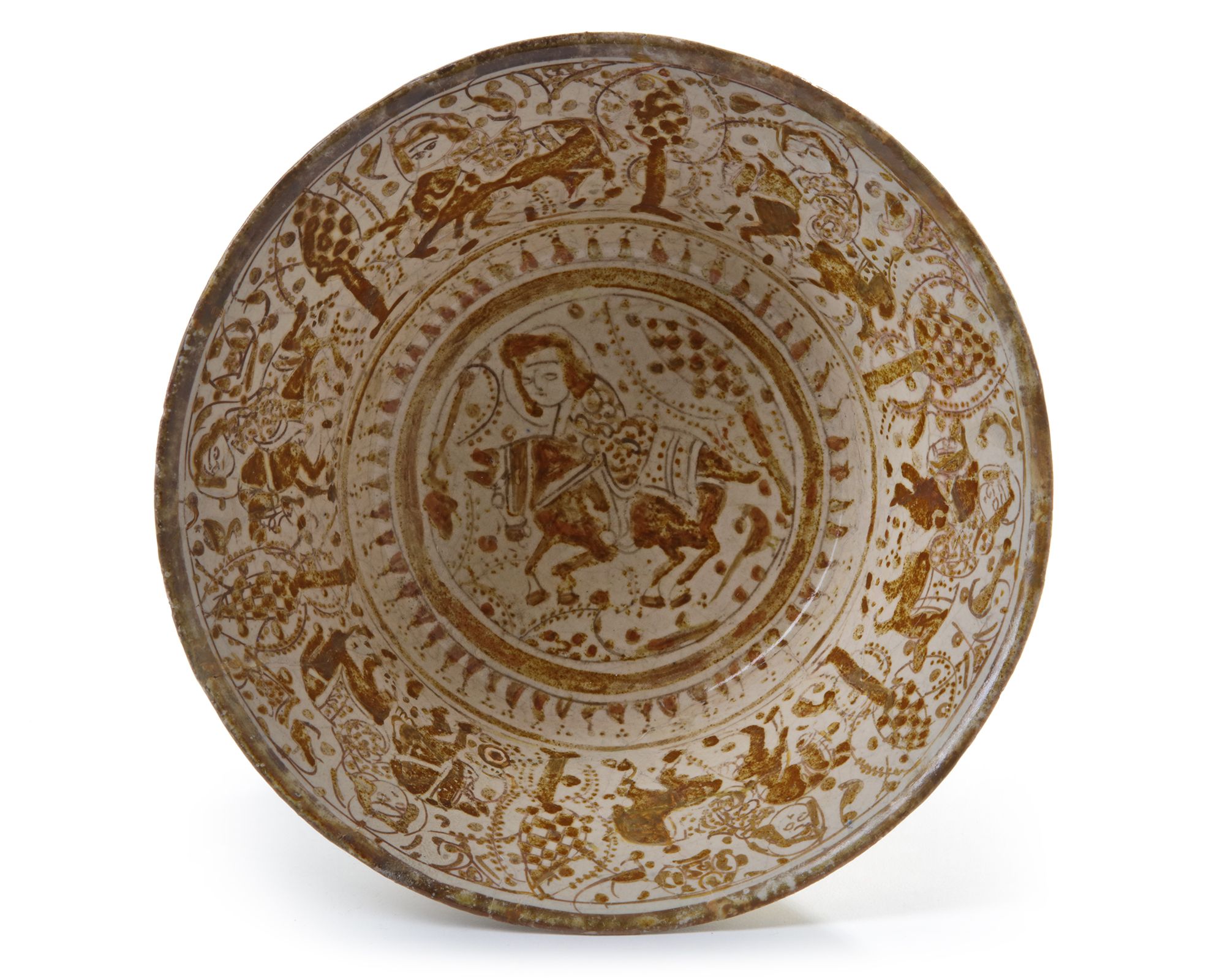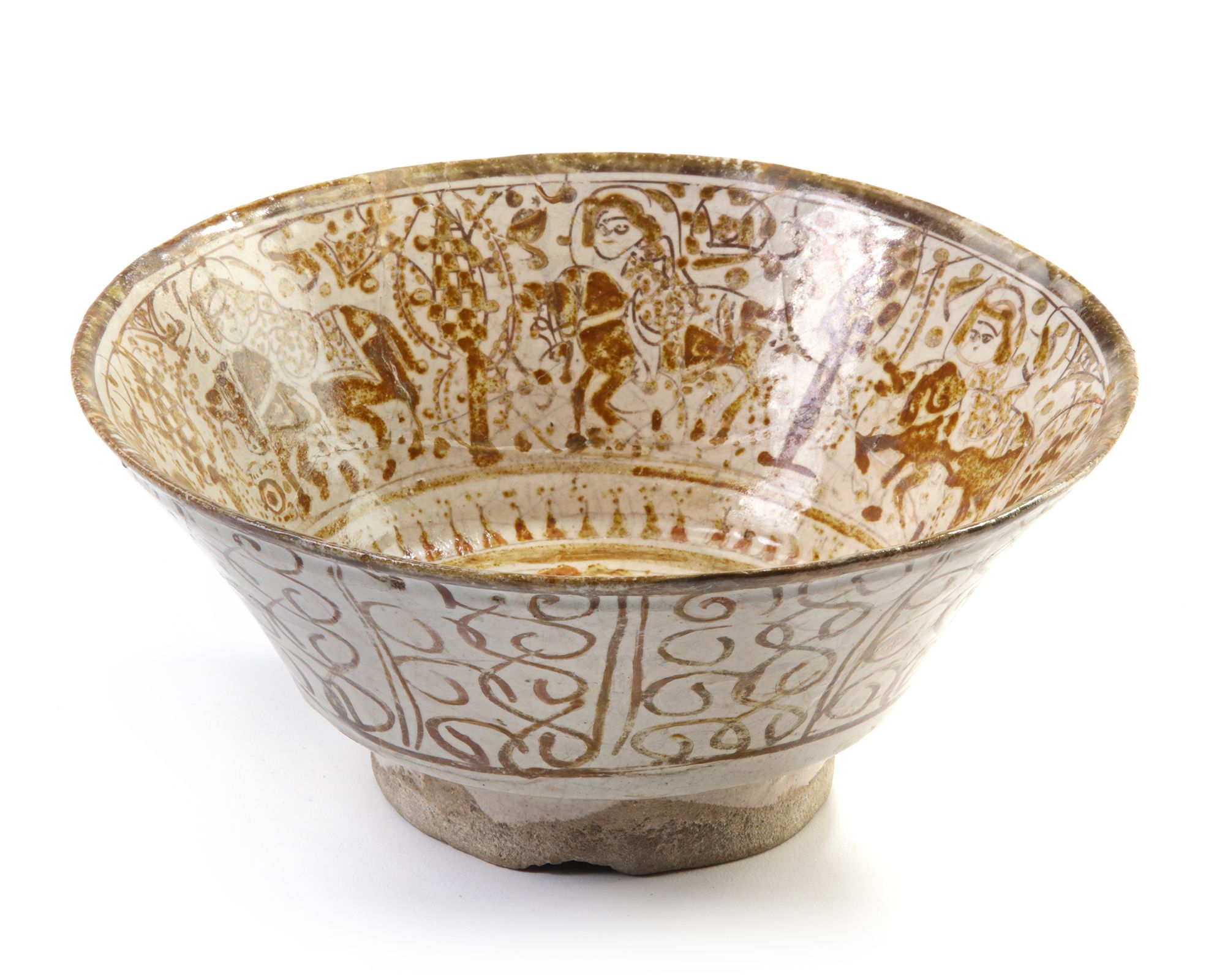 Of conical shape and decorated with horseman. 21 cm. diam.