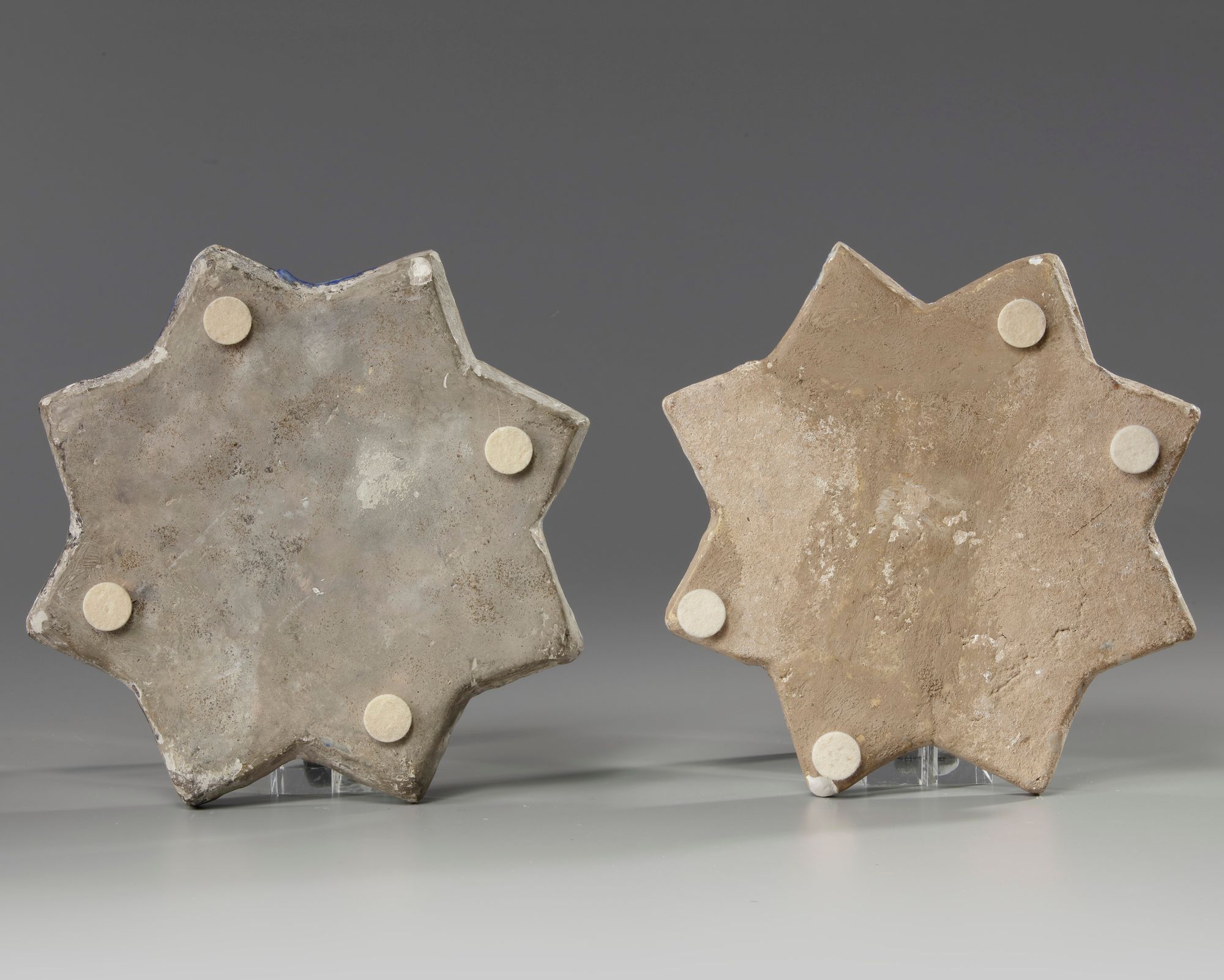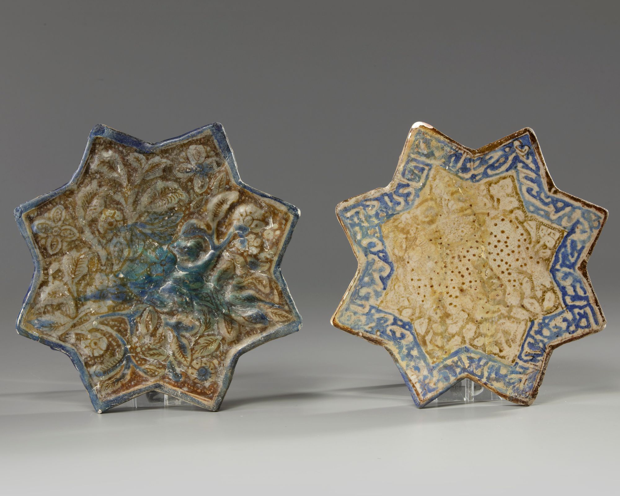 Two Kashan lustre pottery tiles, eight-pointed stellar form.