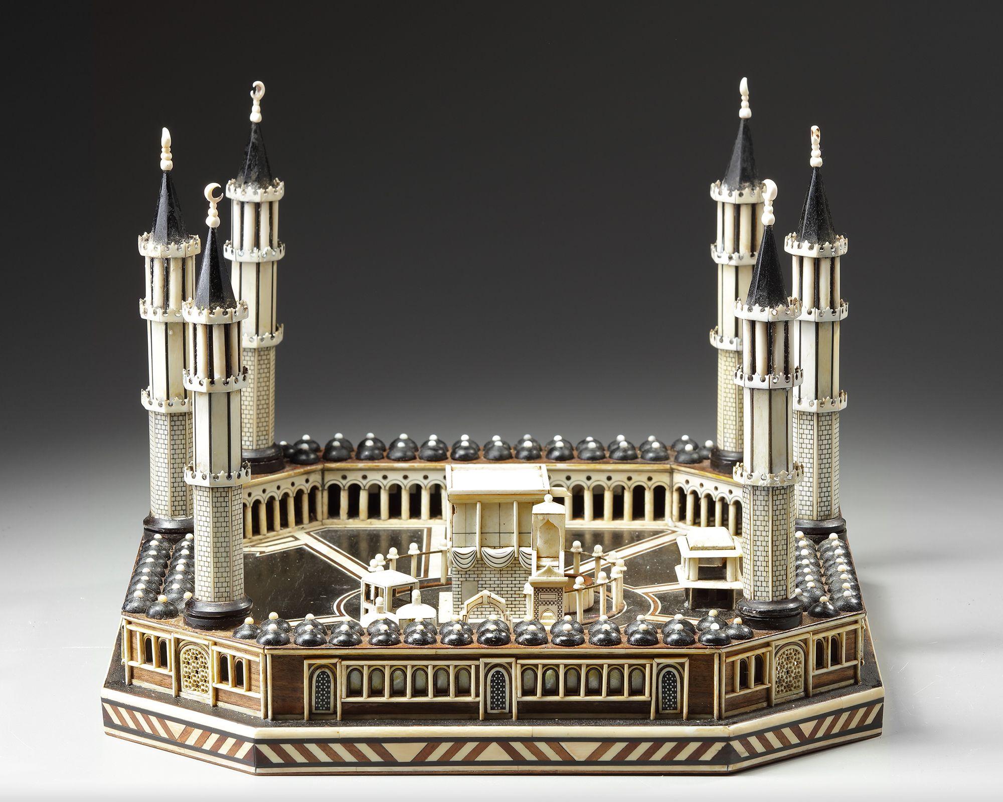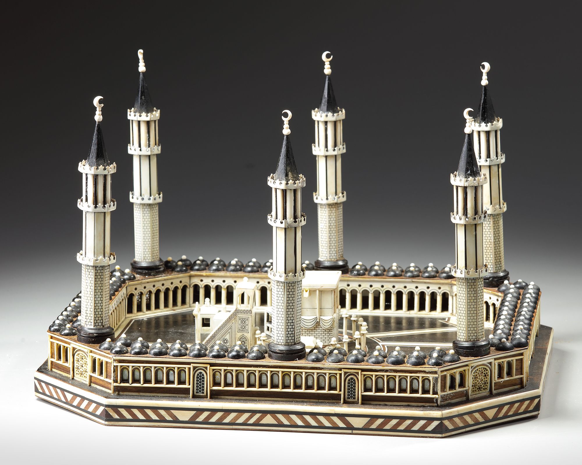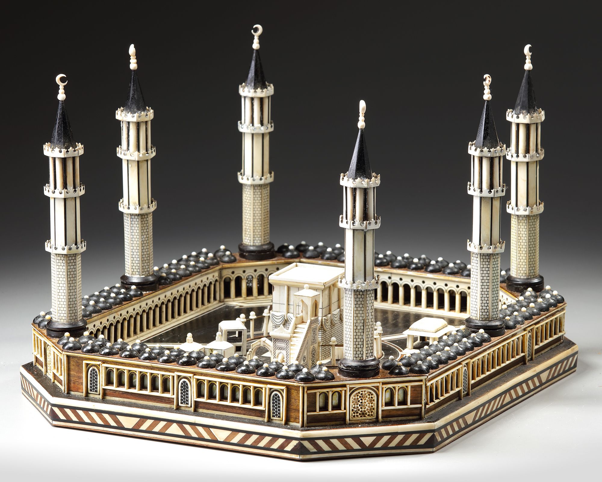 Carved of ebony with ivory inlay. Great Mosque of Mecca, Arabic al-Masjid al-Ḥarām, also called Holy Mosque or Haram Mosque, mosque in Mecca, Saudi Arabia, built to enclose the Kaaba, the holiest shrine in Islam. As one of the destinations of the hajj and ʿumrah pilgrimages, it receives millions of worshippers each year. This item may require Export or CITES licences in order to the European Union. It is the buyer's responsibility to ensure that lots have the relevant licences before shipping.