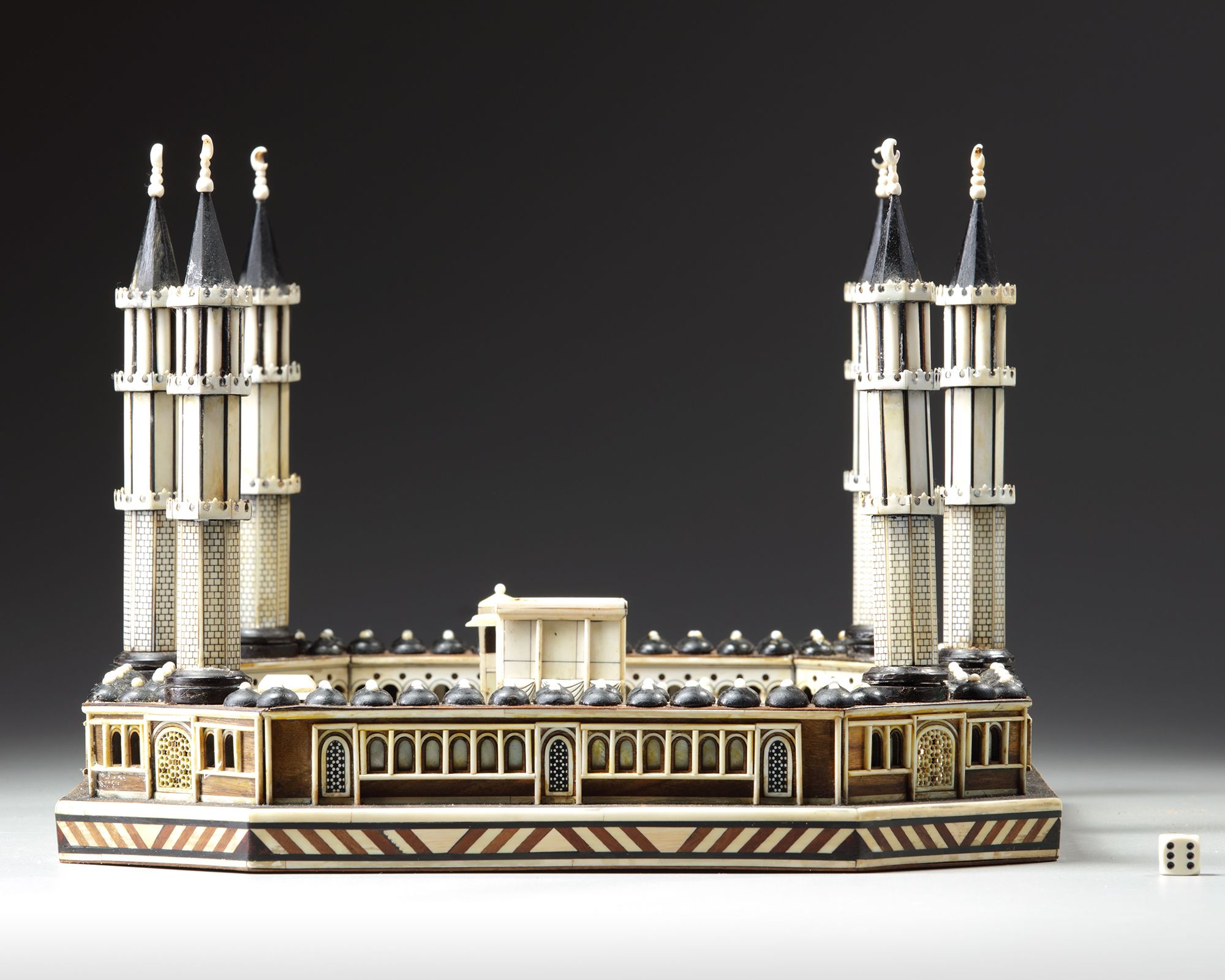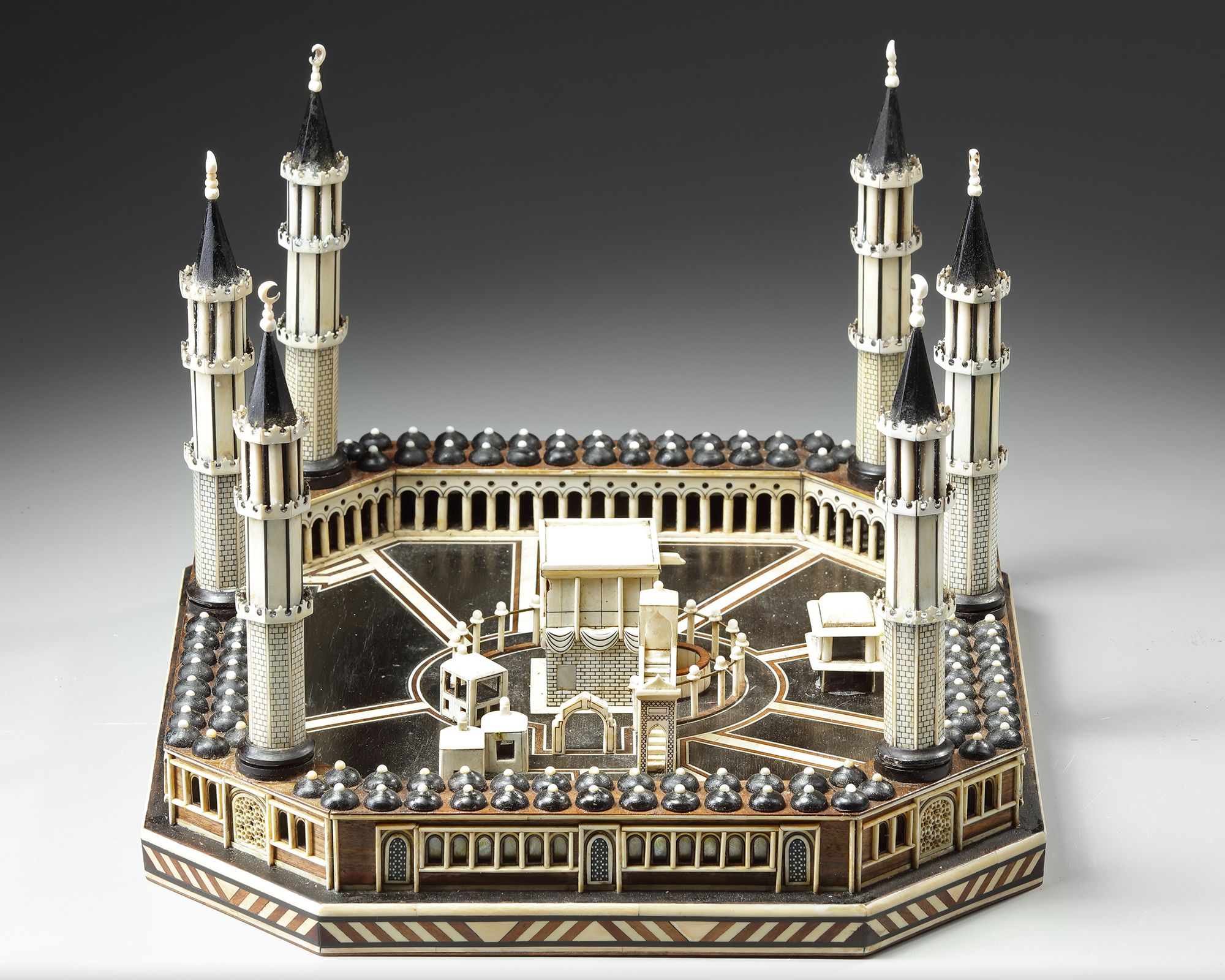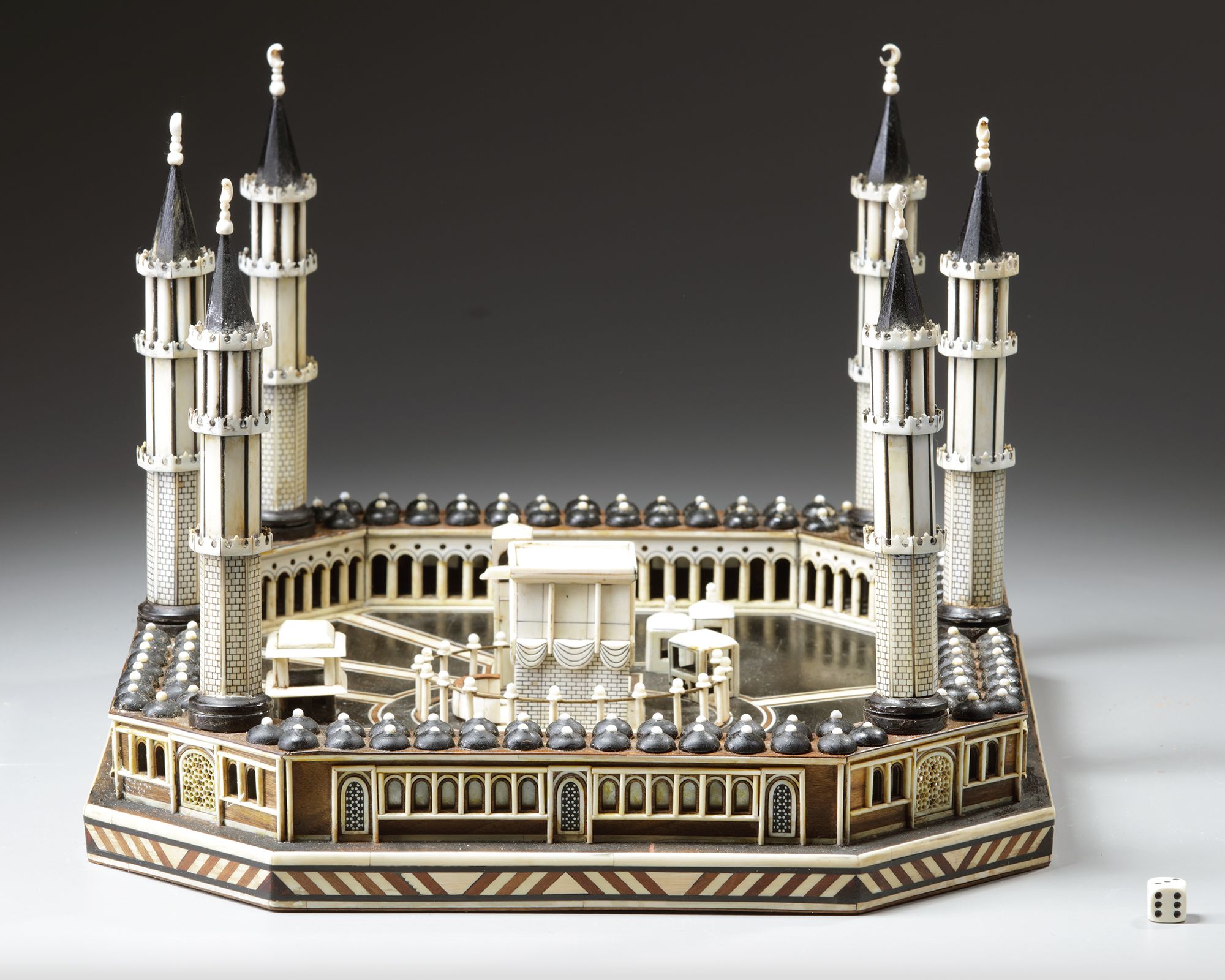 Carved of ebony with ivory inlay. Great Mosque of Mecca, Arabic al-Masjid al-Ḥarām, also called Holy Mosque or Haram Mosque, mosque in Mecca, Saudi Arabia, built to enclose the Kaaba, the holiest shrine in Islam. As one of the destinations of the hajj and ʿumrah pilgrimages, it receives millions of worshippers each year. This item may require Export or CITES licences in order to the European Union. It is the buyer's responsibility to ensure that lots have the relevant licences before shipping.