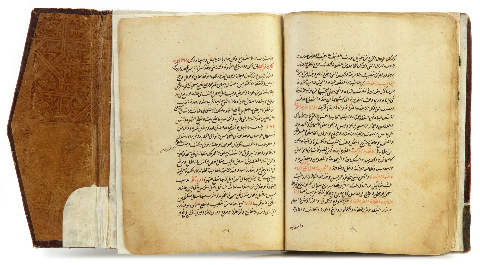 Arabic manuscript on paper of 19 leaves with 18 lines to each page, in naskh script with black and red ink. 1. A short thesis on Medicine, Arabic, 8 pages (page 6-14) 2. Risalah fi tarkib adwiyah al-bah (A thesis on Pharmaceutical compounding of sexual medicines), 24 pages (page 14-38). 3. Annotations on medicine, Persian, 5 pages (page 1-5). 18 by 14 cm.