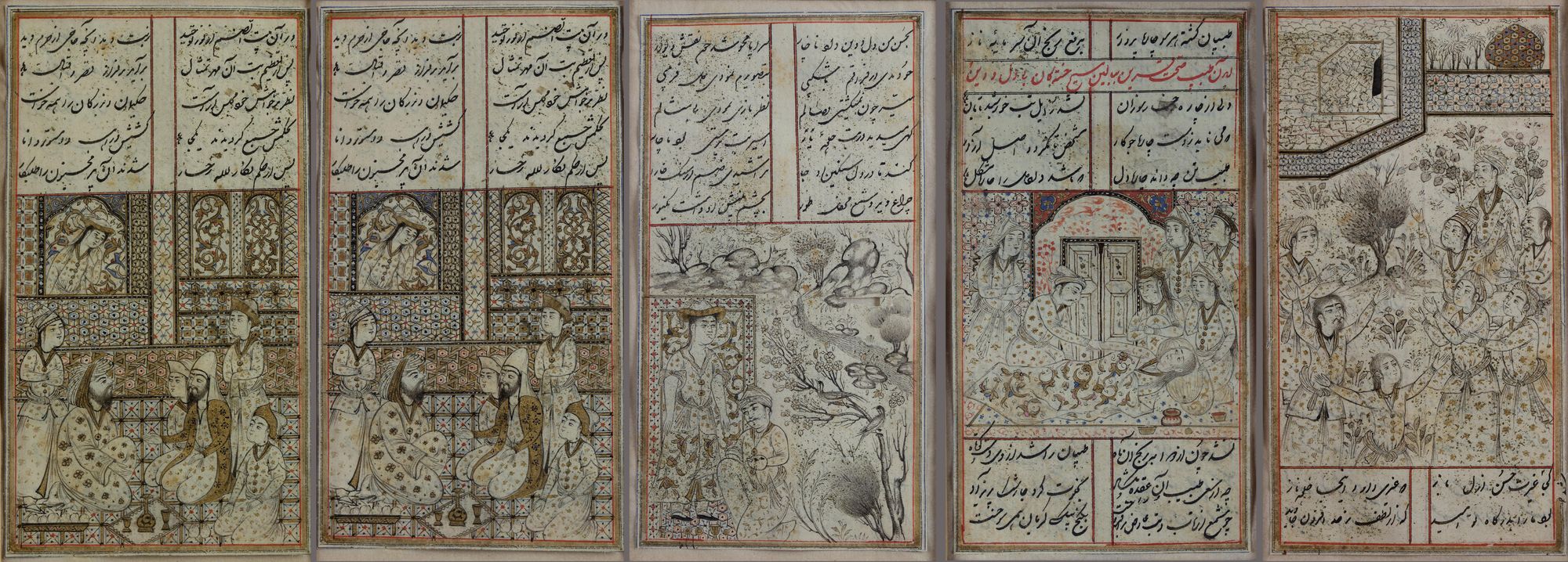 A series of five miniatures depicting: