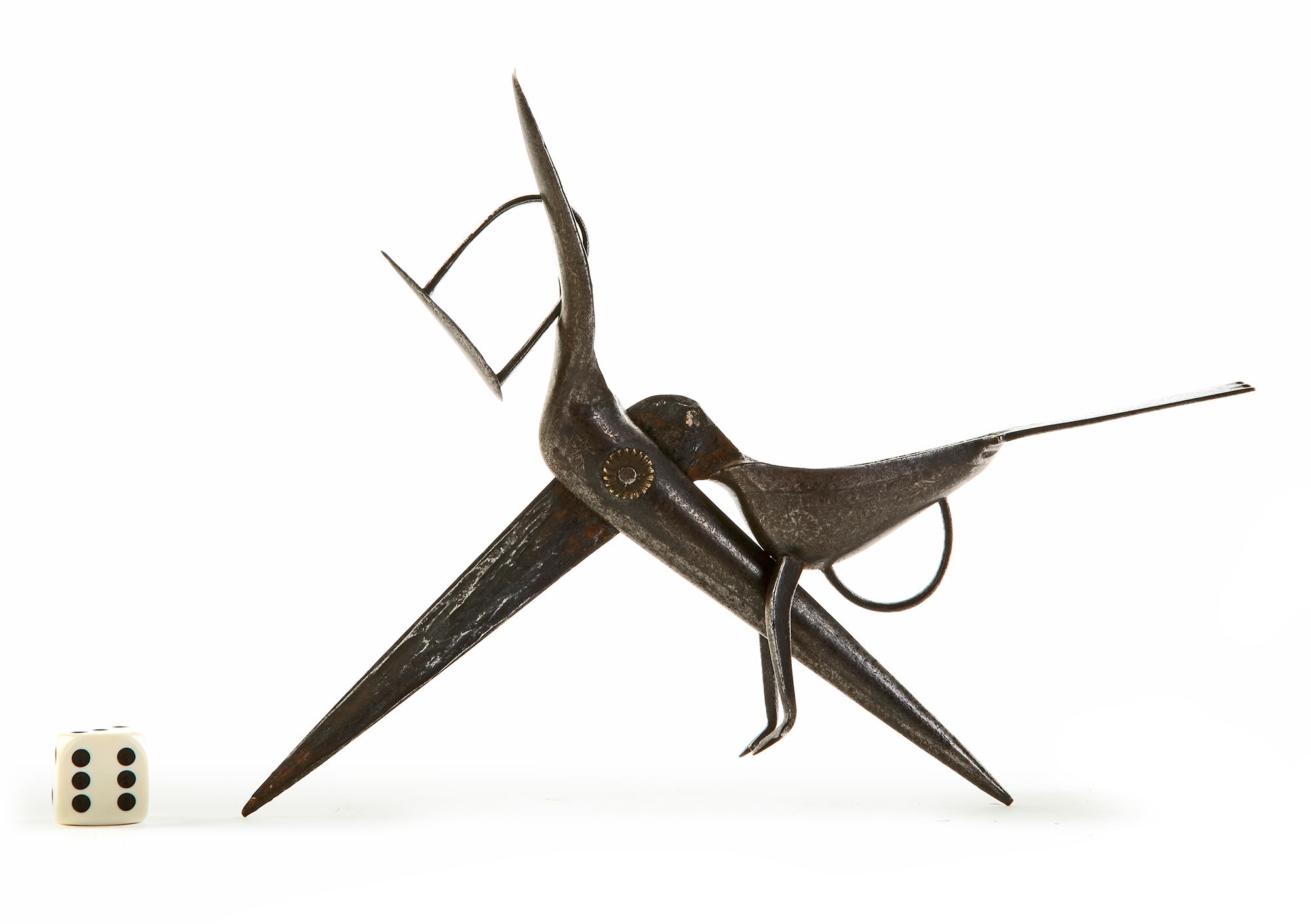 The blades in the form of the beak with thumb loop below the belly, the tail with triangular cut out. 19 cm.