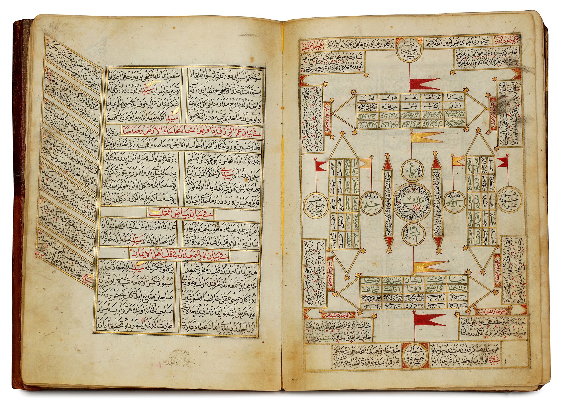 Two other illuminated pages in colors and gold. An exceptionally illustrated schema.