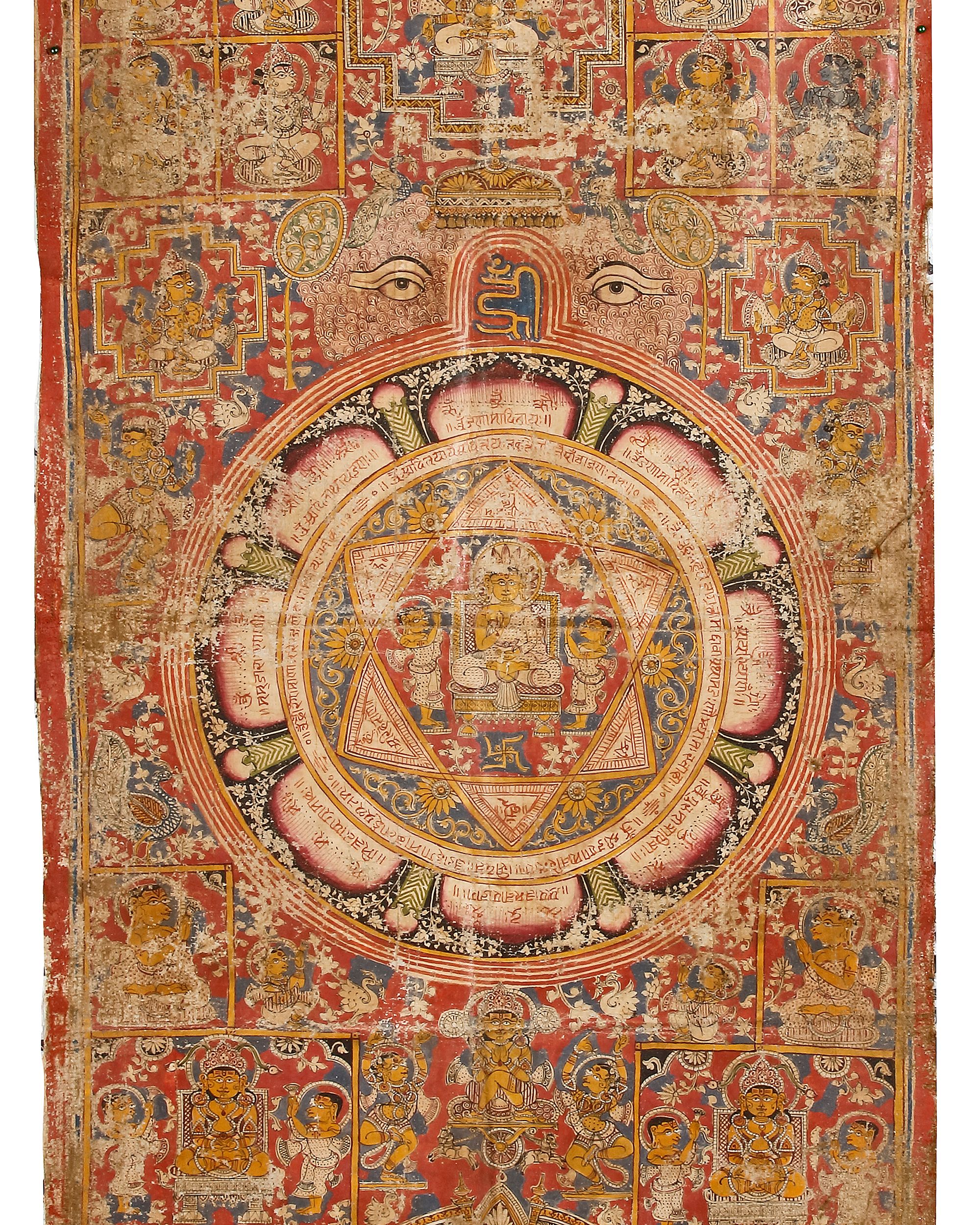 This Vastrapata is a rare jain painting. It is of an early style that relates to the famed Kalpasutra manuscripts, embodying the birth of Northwest India's miniature paintings. It is also a type of scarcely published and demands the work of future scholars able to plunge into the quagmire of Jain Tantric practice and unlock the paintings hidden codes and secrets.